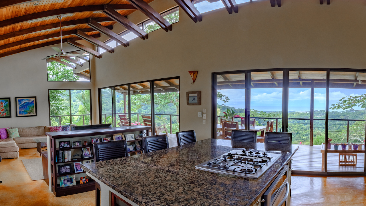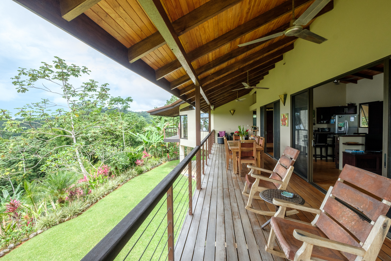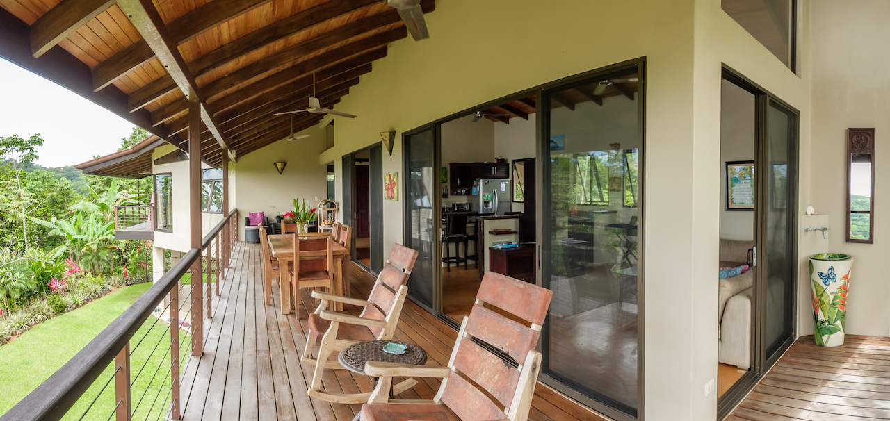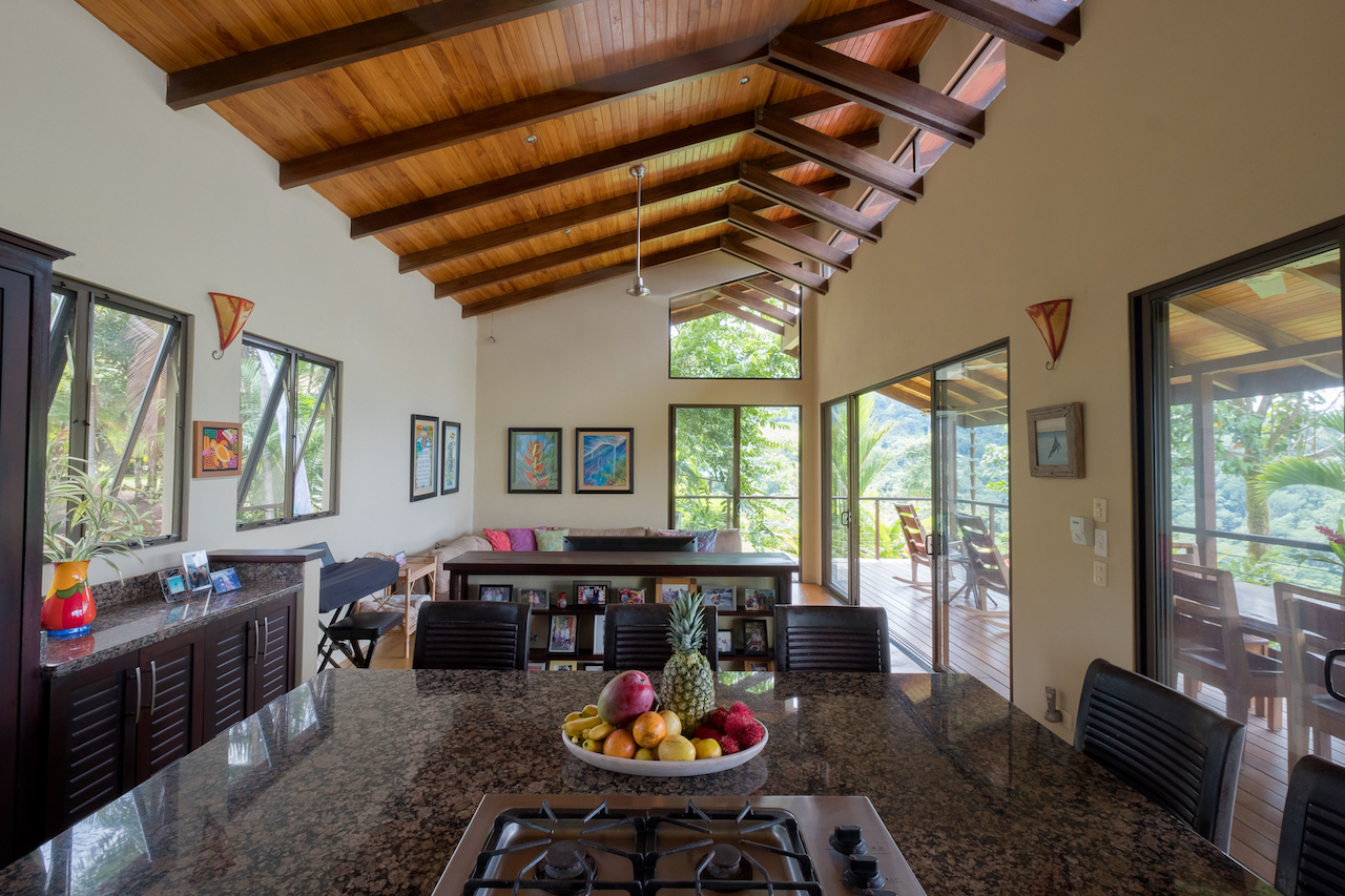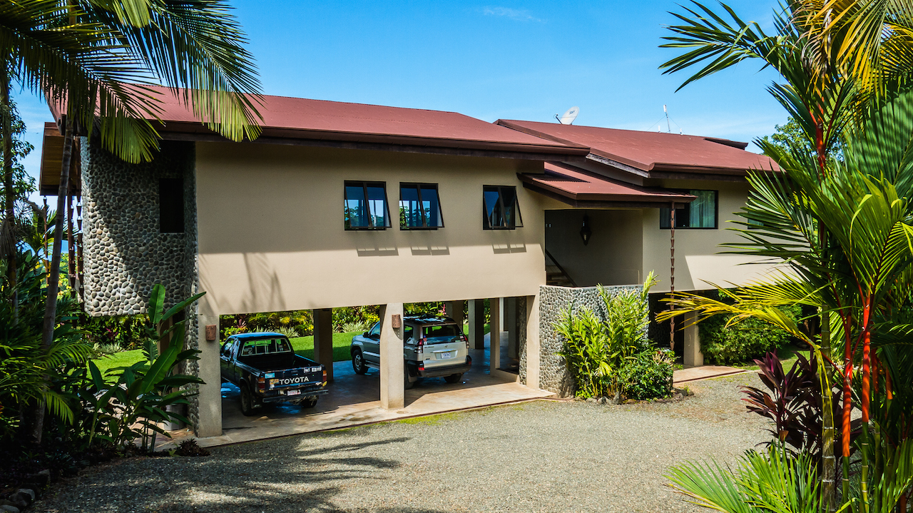 Tranquil and private are two words that described these two story and one story hacienda style residences set in a lush tropical landscape oasis in the southern region of Costa Rica. Cool breezes gust through these homes all day and night offering the perfect temperatures year around. The property consists of two homes, a two-story 4 bedroom main house, with the ultimate in jungle warmth, charm & impeccable craftsmanship. The main house offers a large outside deck area with amazing views sweeping over the valleys to the ocean. The gourmet kitchen has a large island for cooking and entertaining, beautiful cabinetry, and top of the line appliances. A well-appointed owner’s suite with a spa like bathroom, cozy closet, and doors that open to exotic view of the jungle. One additional home with two bedrooms sits next to the main house, viewing a cozy pool over looking the jungle, plenty areas for greenhouse & tropical plants & fruit trees help to make this one-of-the most beautiful properties in the southern Ballena Coast line of Costa Rica.