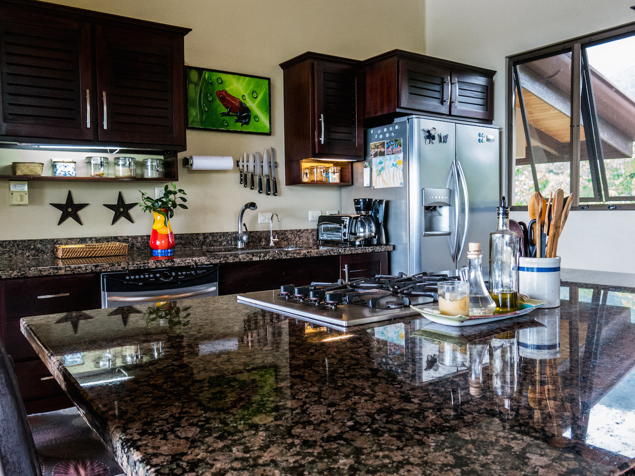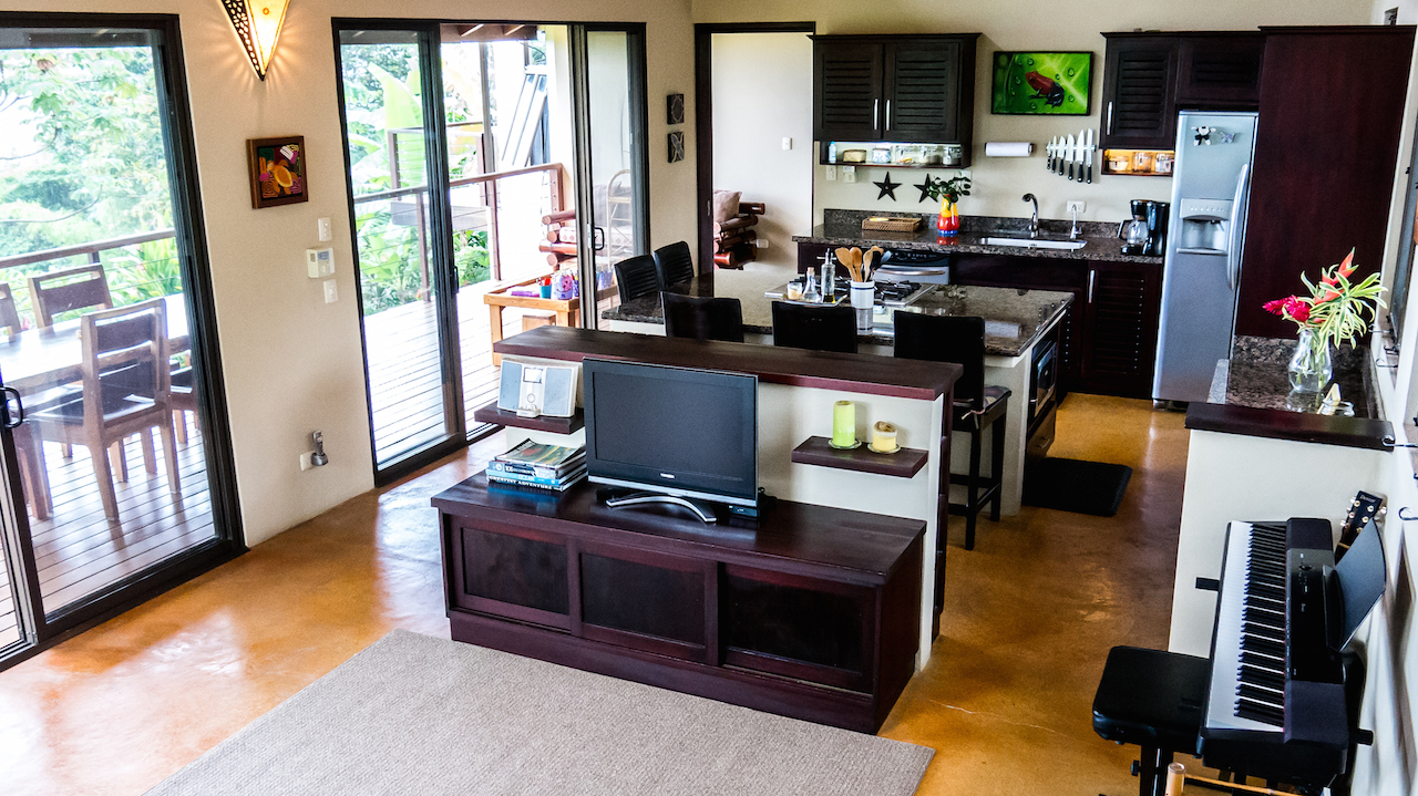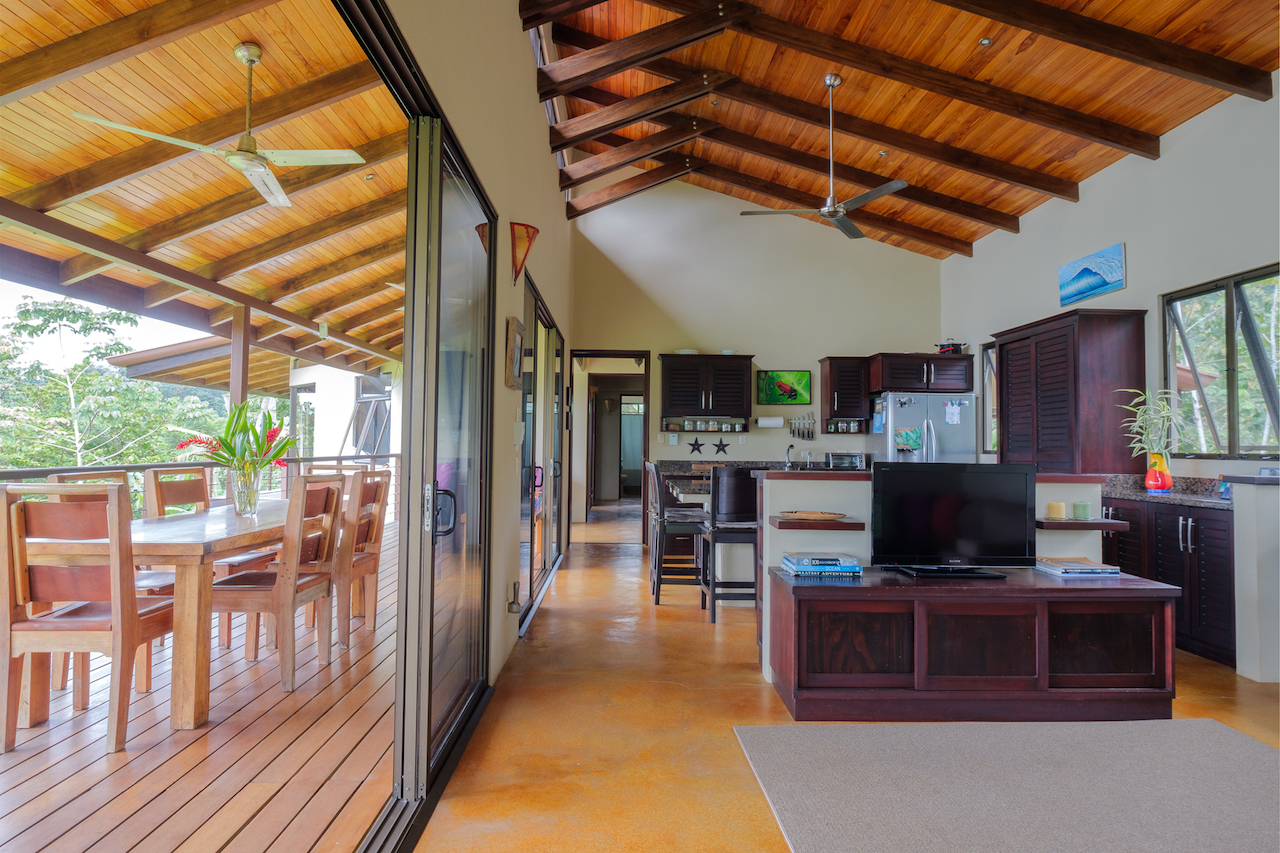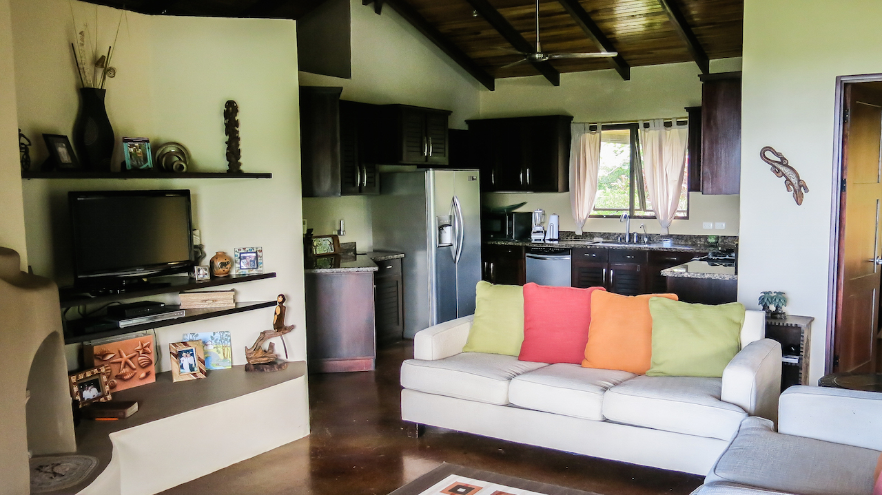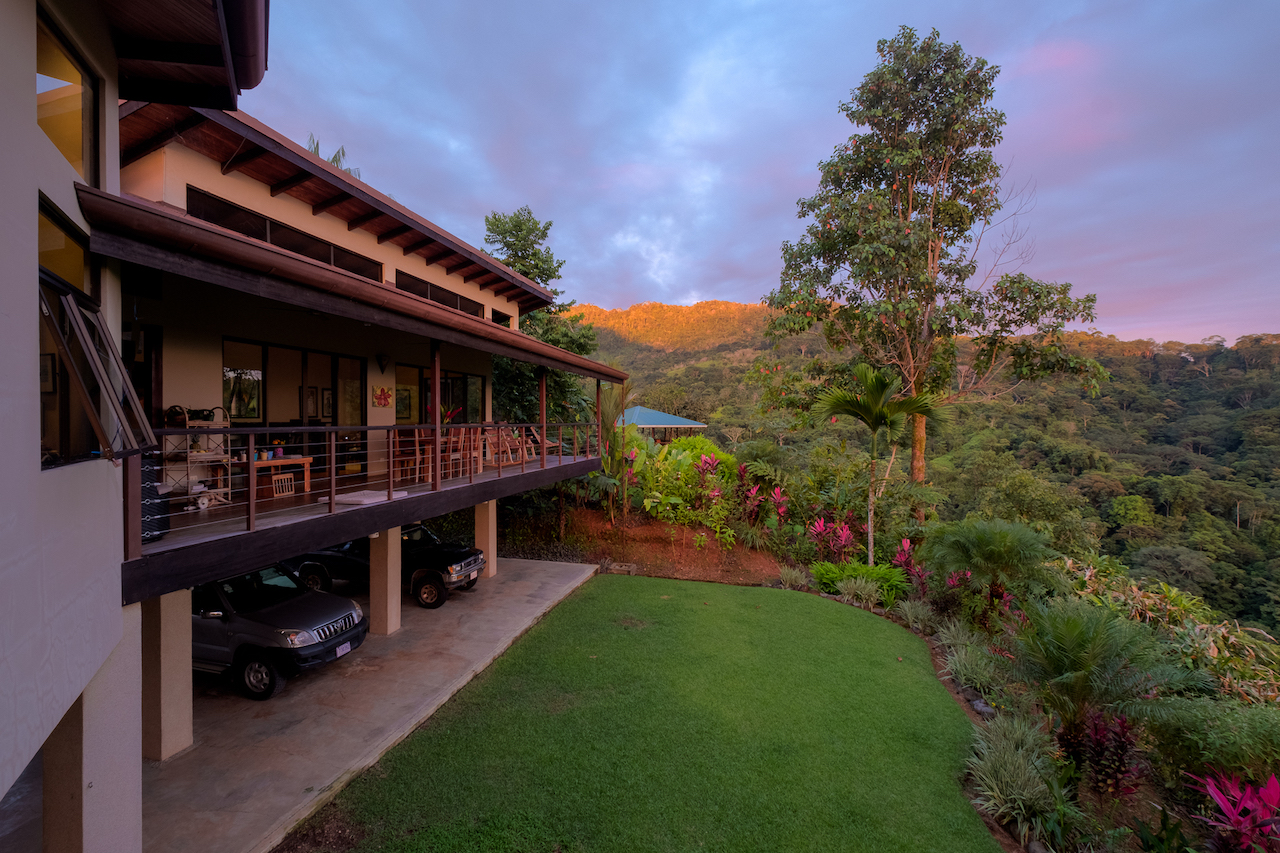Tranquil and private are two words that described these two story and one story hacienda style residences set in a lush tropical landscape oasis in the southern region of Costa Rica. Cool breezes gust through these homes all day and night offering the perfect temperatures year around. The property consists of two homes, a two-story 4 bedroom main house, with the ultimate in jungle warmth, charm & impeccable craftsmanship. The main house offers a large outside deck area with amazing views sweeping over the valleys to the ocean. The gourmet kitchen has a large island for cooking and entertaining, beautiful cabinetry, and top of the line appliances. A well-appointed owner’s suite with a spa like bathroom, cozy closet, and doors that open to exotic view of the jungle. One additional home with two bedrooms sits next to the main house, viewing a cozy pool over looking the jungle, plenty areas for greenhouse & tropical plants & fruit trees help to make this one-of-the most beautiful properties in the southern Ballena Coast line of Costa Rica.