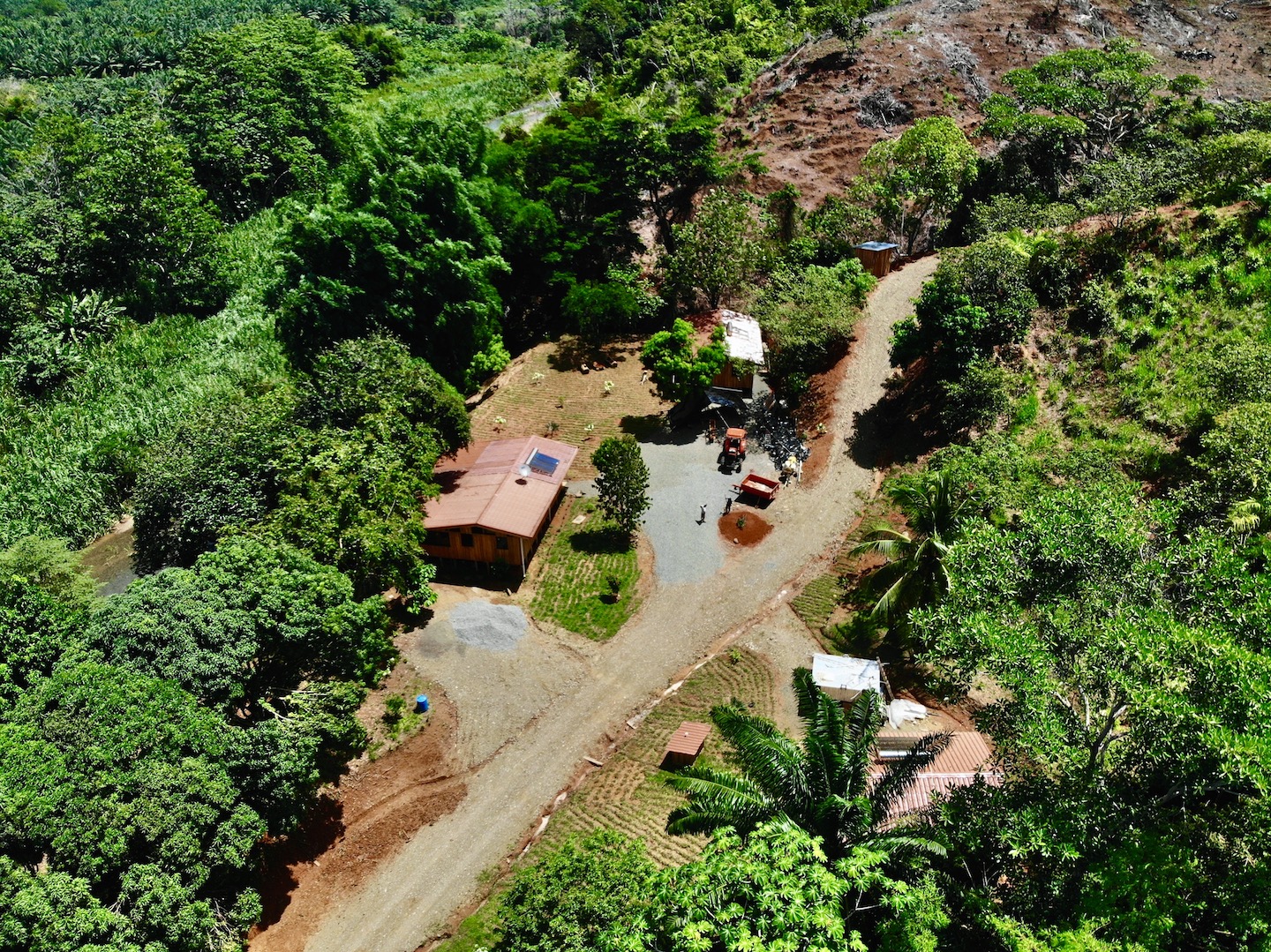 Entering the farm, you will encounter 5 newly constructed cabins situated above the banks of the river, driving in to the depths of the farm, you pass through various plantations of organic varieties of fruit trees to include: mangos, mamonchinos, mangosteins, and a variety of citrus trees.