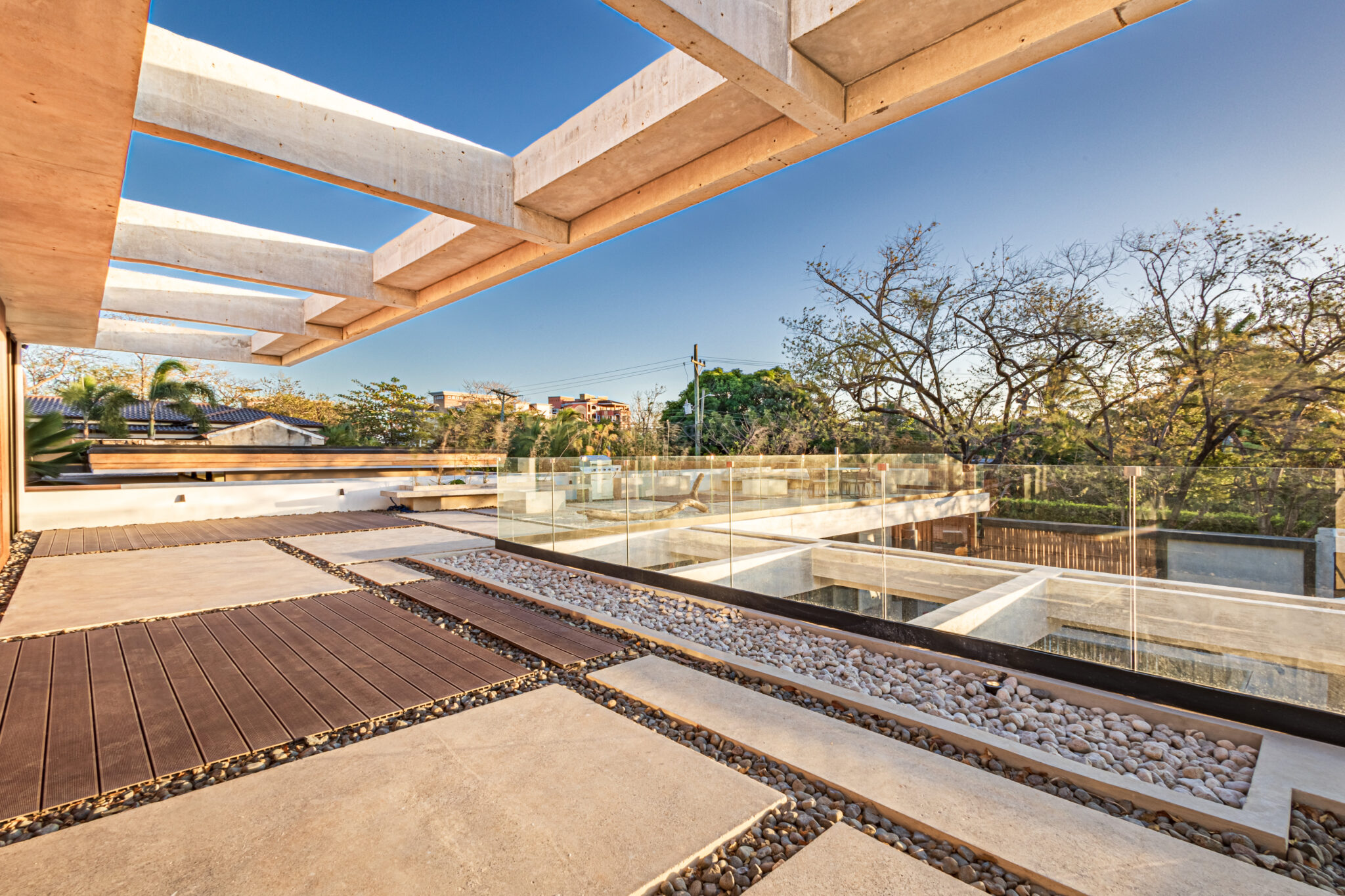Designed by acclaimed architect Eric Bogantes of Alianz Estudio, the home reflects a modern architectural vision focused on clean lines, natural materials, and seamless indoor-outdoor living. The property features 6.5 bedrooms and 7.5 bathrooms, thoughtfully arranged within an open-concept layout that maximizes natural light, ocean breezes, and connection to the surrounding environment.