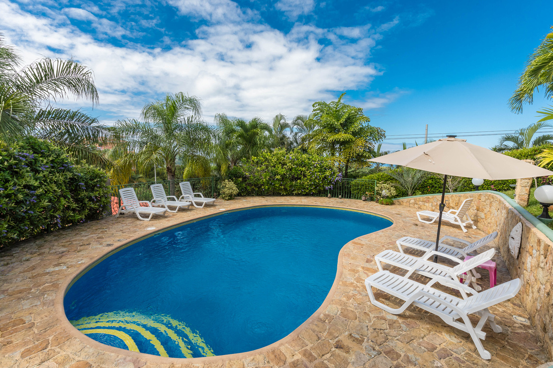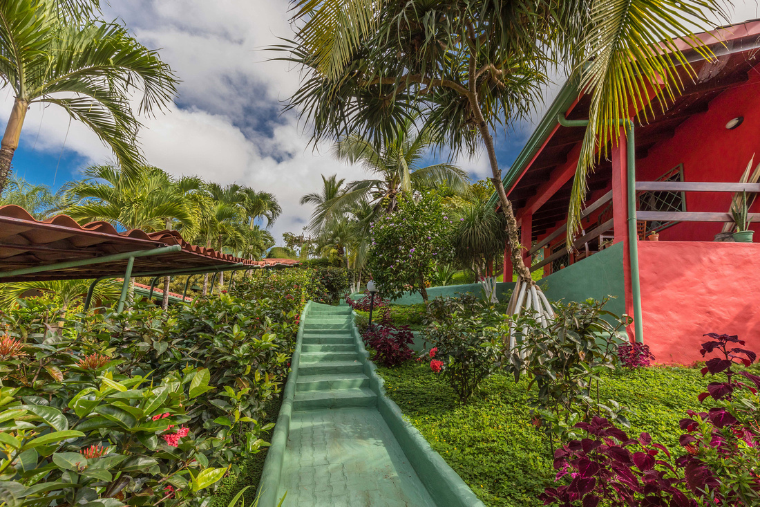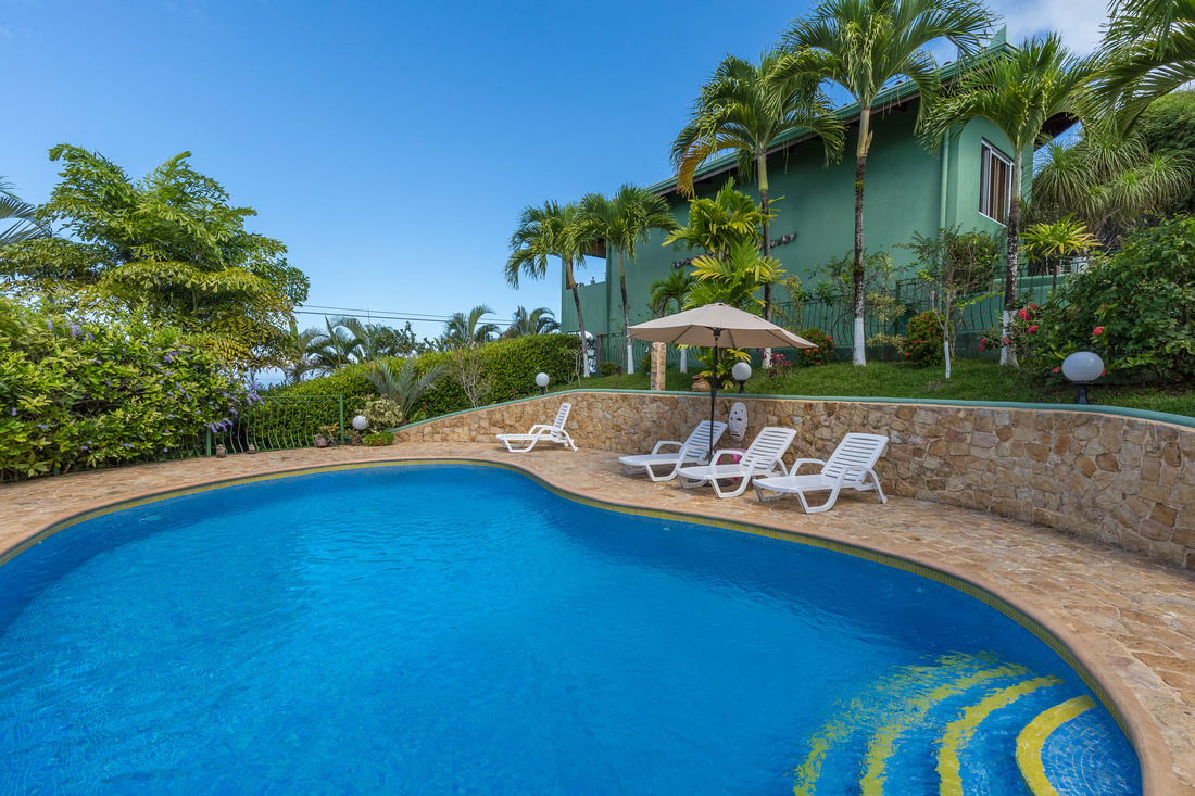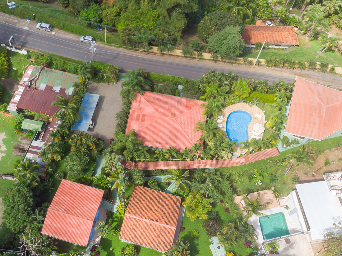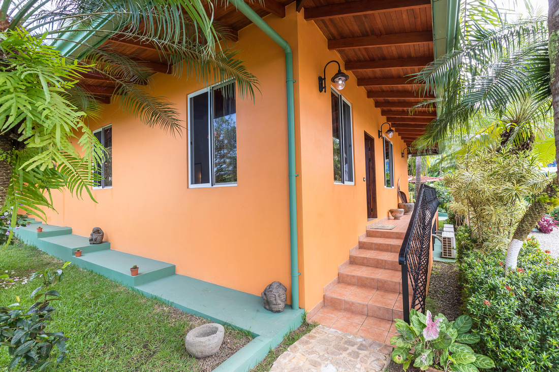 Located at the midpoint between Quepos and the National Park, this property could not be more convenient to the local bus, local supermarkets, the beach. A parking lot provides plenty of parking area, with 6-8 spots covered. The security gate at the driveway is top grade.