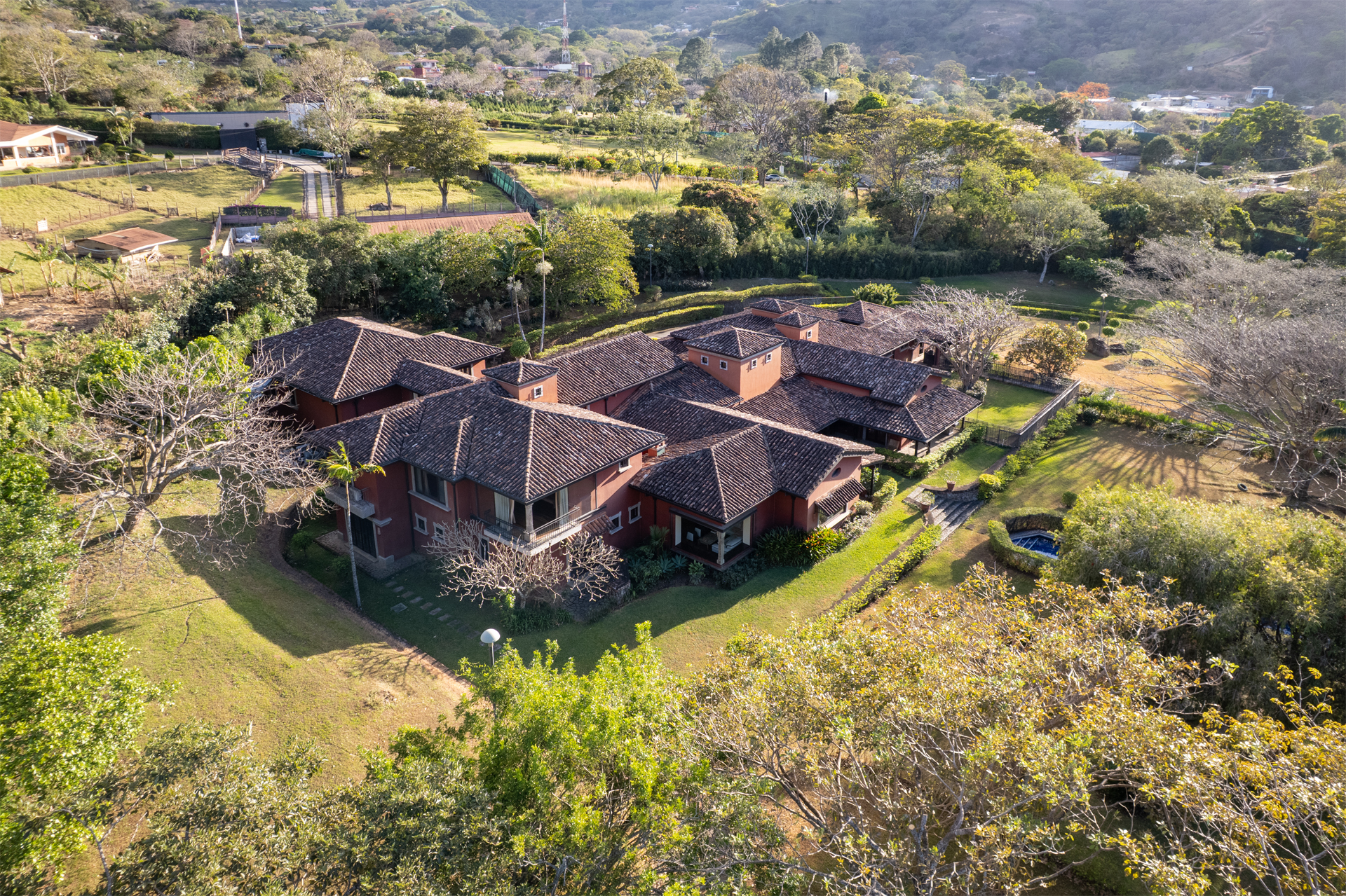 Tucked away in the hills of Santa Ana, Villa Artesana is a distinguished hacienda-style residence offering the perfect balance of refined architecture, privacy, and convenience. Set on an expansive 19,617 m² lot in an exclusive gated community, this estate was designed for those who value handcrafted detail, lush natural surroundings, and seamless indoor-outdoor living.