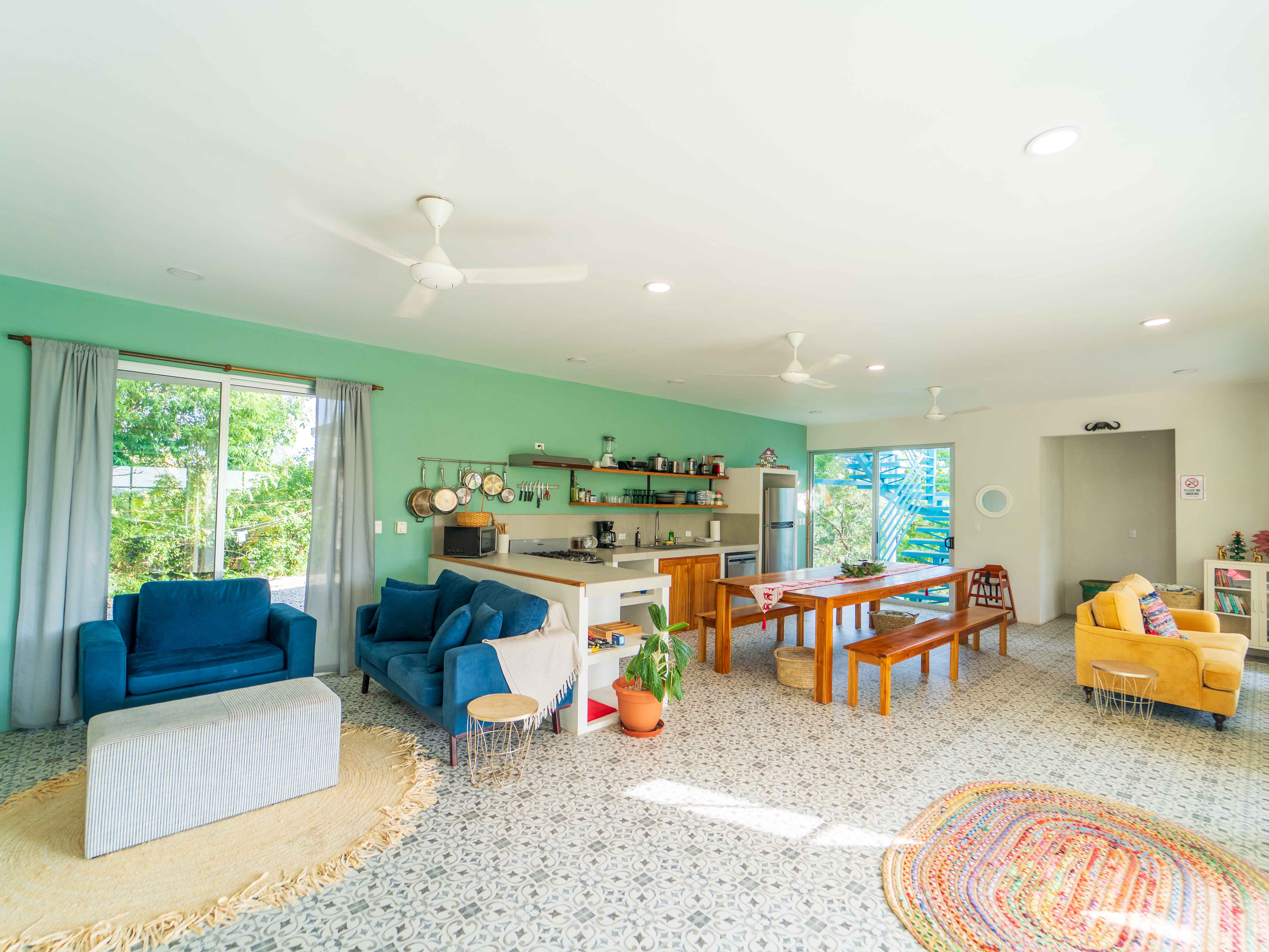 Located separately on the property, Casa Colores is a newer three-bedroom home completed in 2024. Set among mature trees and lush vegetation, it offers a quiet, private atmosphere while remaining completely independent from the main house. The home features an open floor plan with a bright kitchen, dining, and living area that opens onto a covered patio overlooking the surrounding jungle. The bedrooms are well-proportioned, and the home is designed for easy, low-maintenance living. Casa Colores works well as a guest house, long-term rental, caretaker’s home, or second vacation rental.