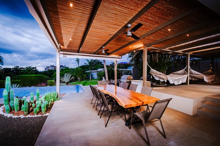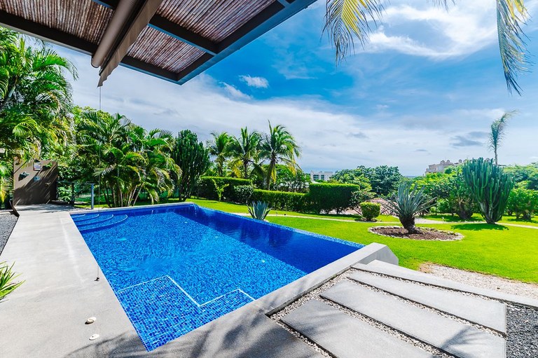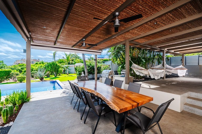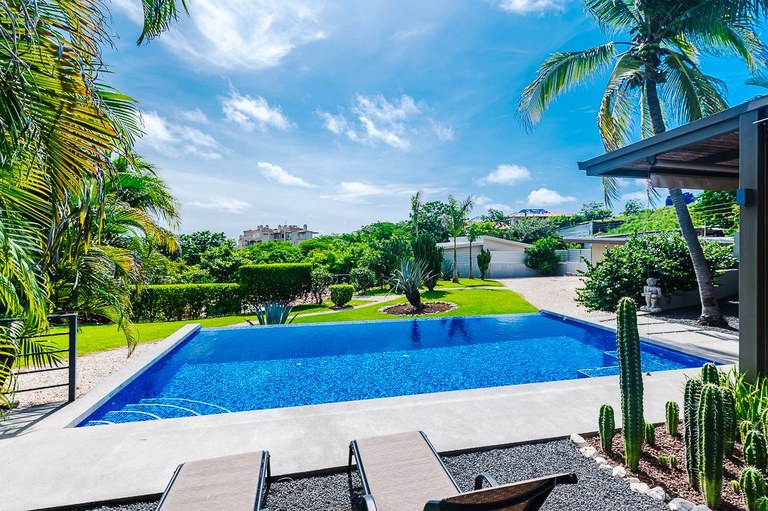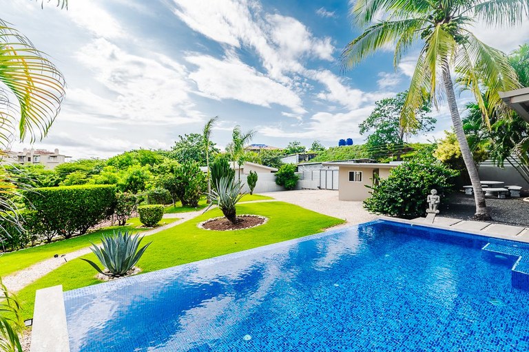 Experience the best of coastal living and income potential with this exceptional ocean-view estate, just a short walk from Tamarindo’s world renowned beach, vibrant dining, and lively local culture. The beautifully remodeled main residence (2020) features four spacious bedrooms, an open concept kitchen with granite countertops and stainless steel appliances, and a seamless indoor-outdoor flow. Relax on the expansive covered terrace with outdoor dining, hammocks, a grill station, and an infinity-edge pool that perfectly frames the panoramic ocean views. The luxurious master suite includes a private balcony for sunset views, an ensuite bath with dual vanities, and elegant finishes throughout.