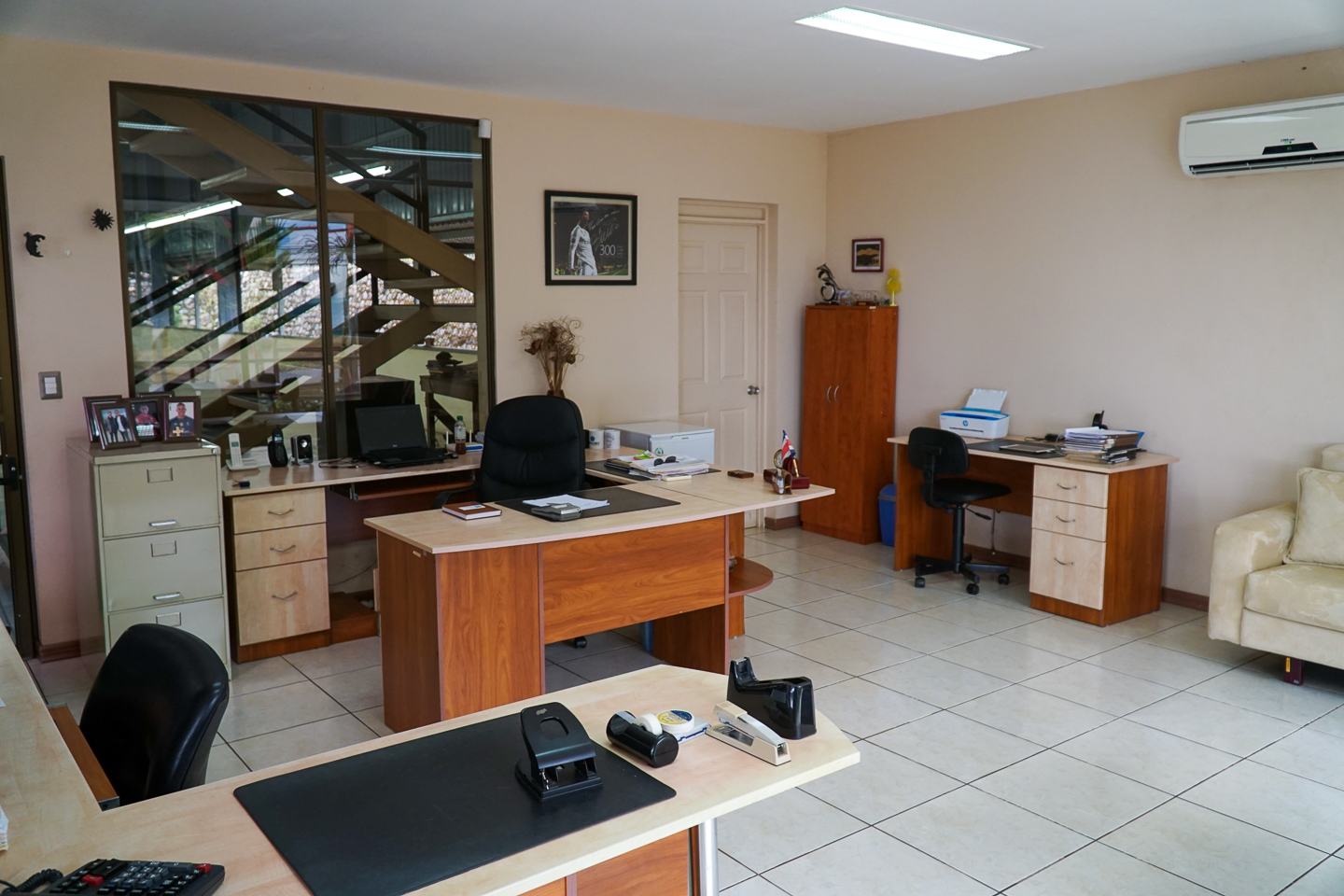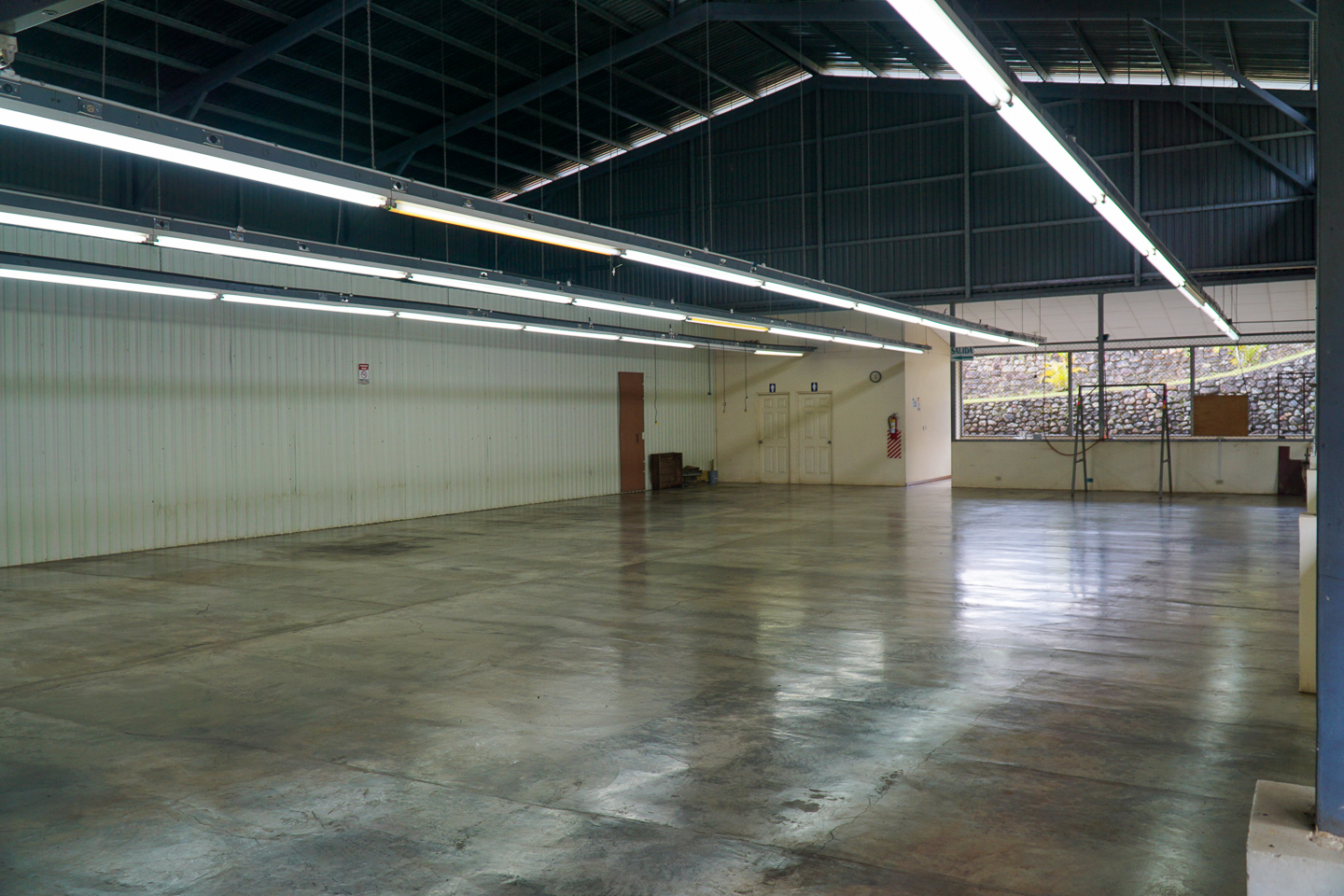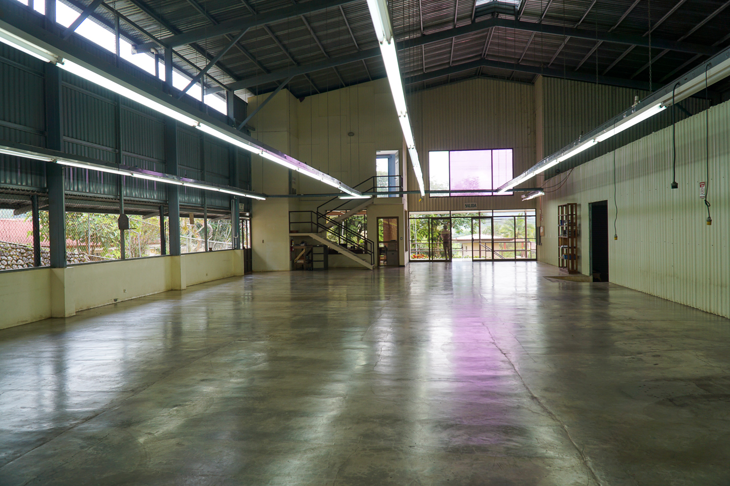 The metal constructed building is 672 square meters in area, with 36 square meters of office space and 24 square meters of cafeteria space. There is a main office/reception and a conference room. There are a total of 4 bathrooms.