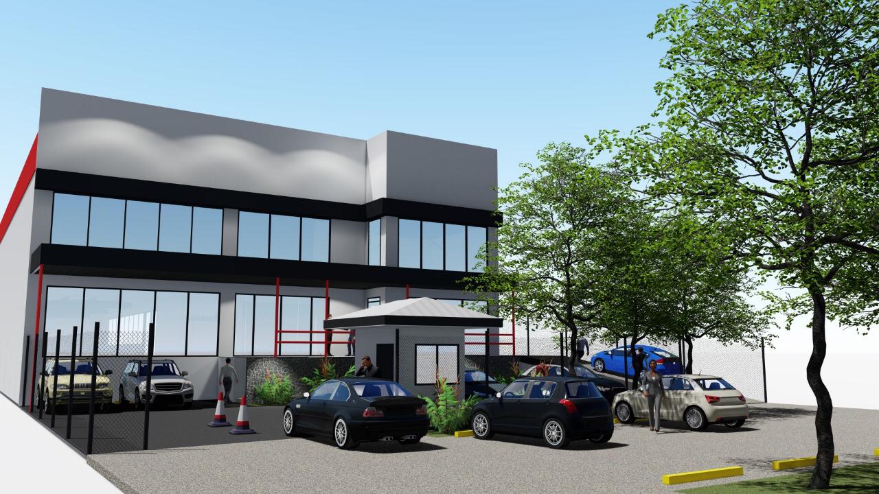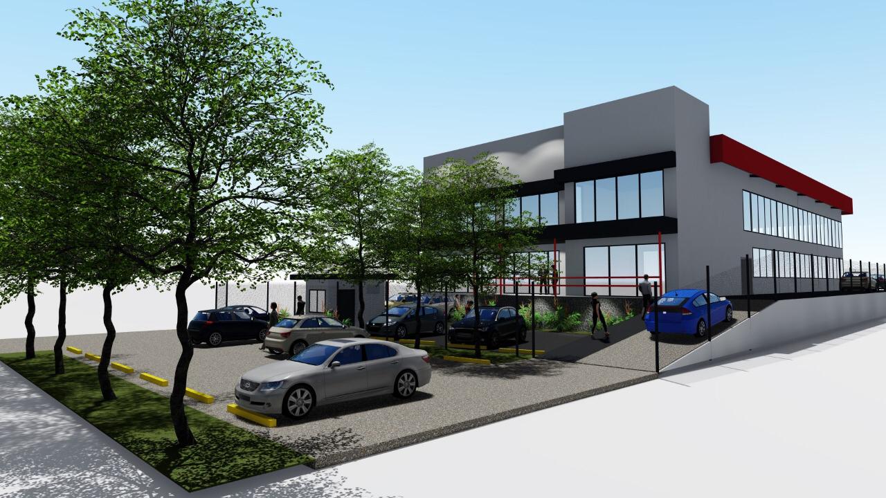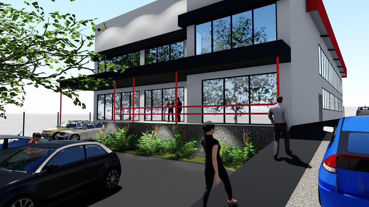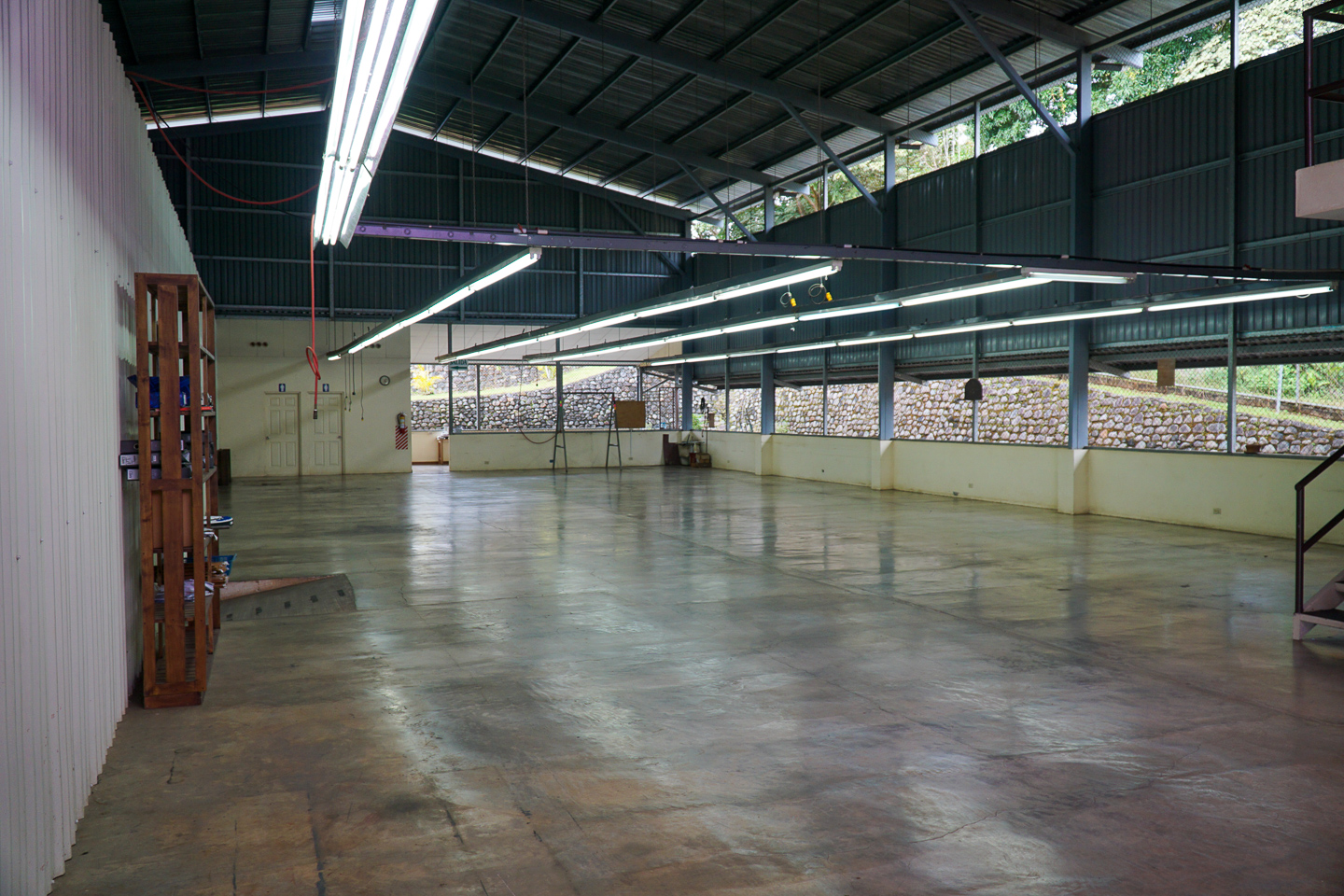 The metal constructed building is 672 square meters in area, with 36 square meters of office space and 24 square meters of cafeteria space. There is a main office/reception and a conference room. There are a total of 4 bathrooms.