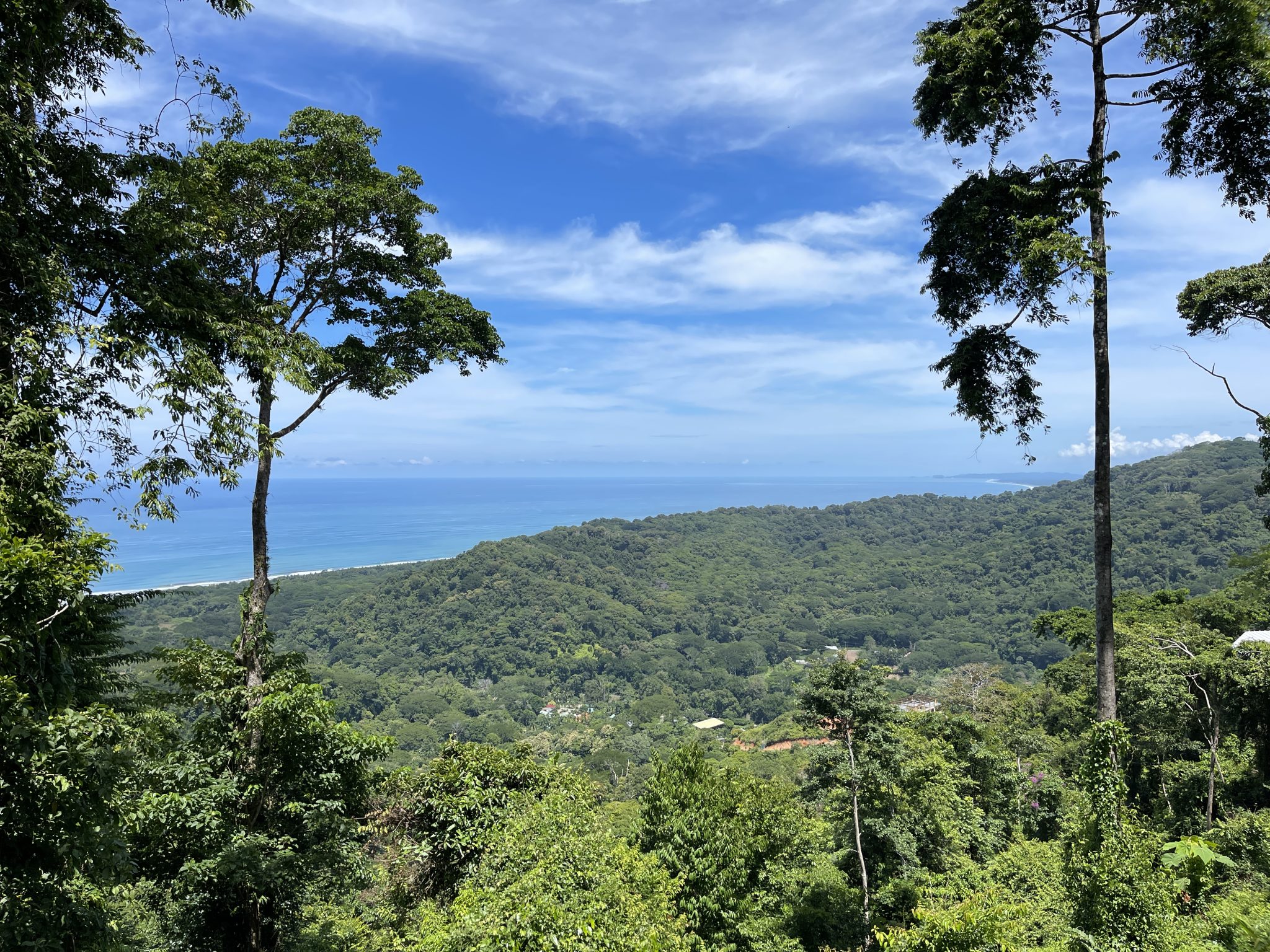 This fabulous ocean-view lot is the crown jewel in the gated community, Vista Dominical Estates. It is the last lot at the end of the road so it has the best view and the most privacy. The community is less than 5 min from the town of Dominical and its amazing surf beaches. The best part is, that you drive up the river road in town to get to this development, unlike most properties where you have to go out of town and take the highway. The ocean view is incredible. You can see the waves breaking up the coast all the way to Manuel Antonio and the sunsets over the Pacific Ocean are breathtaking.