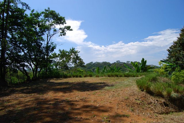 Hatillo is a very unique town along the southern Pacific coast of Costa Rica. This property is located along a short section of road that the brand new paved highway bypasses, so you can get to the paved road within a few minutes from leaving your building site but don't have to see and hear the traffic that will surely use the paved route. Two window ocean views can be seen from the building pad, and large trees within a beautiful jungle surround the site on two sides. If you want a little elevation and a quick drive to the surf, this could be the property for you.