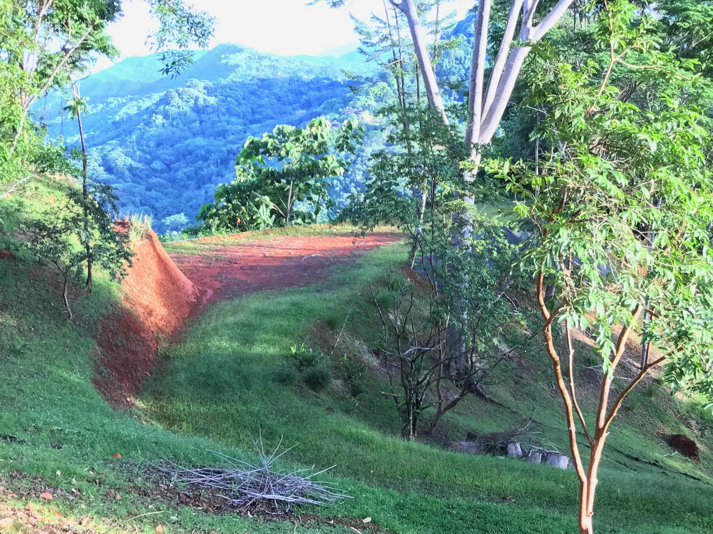 The lower pad is smaller in size and the perfect place for a second guest home or vacation rental. The site has coastline and sunset views towards Manuel Antonio and the surrounding mountains too. There is plenty of usable open land for fruit trees and gardens throughout the 8 plus acres of property. You could create another small ocean view building pad further down the ridge if you desired for yet another ocean view home. Also an area with jungle views for a caretaker home near the entrance to the land if you required onsite staff in the future.