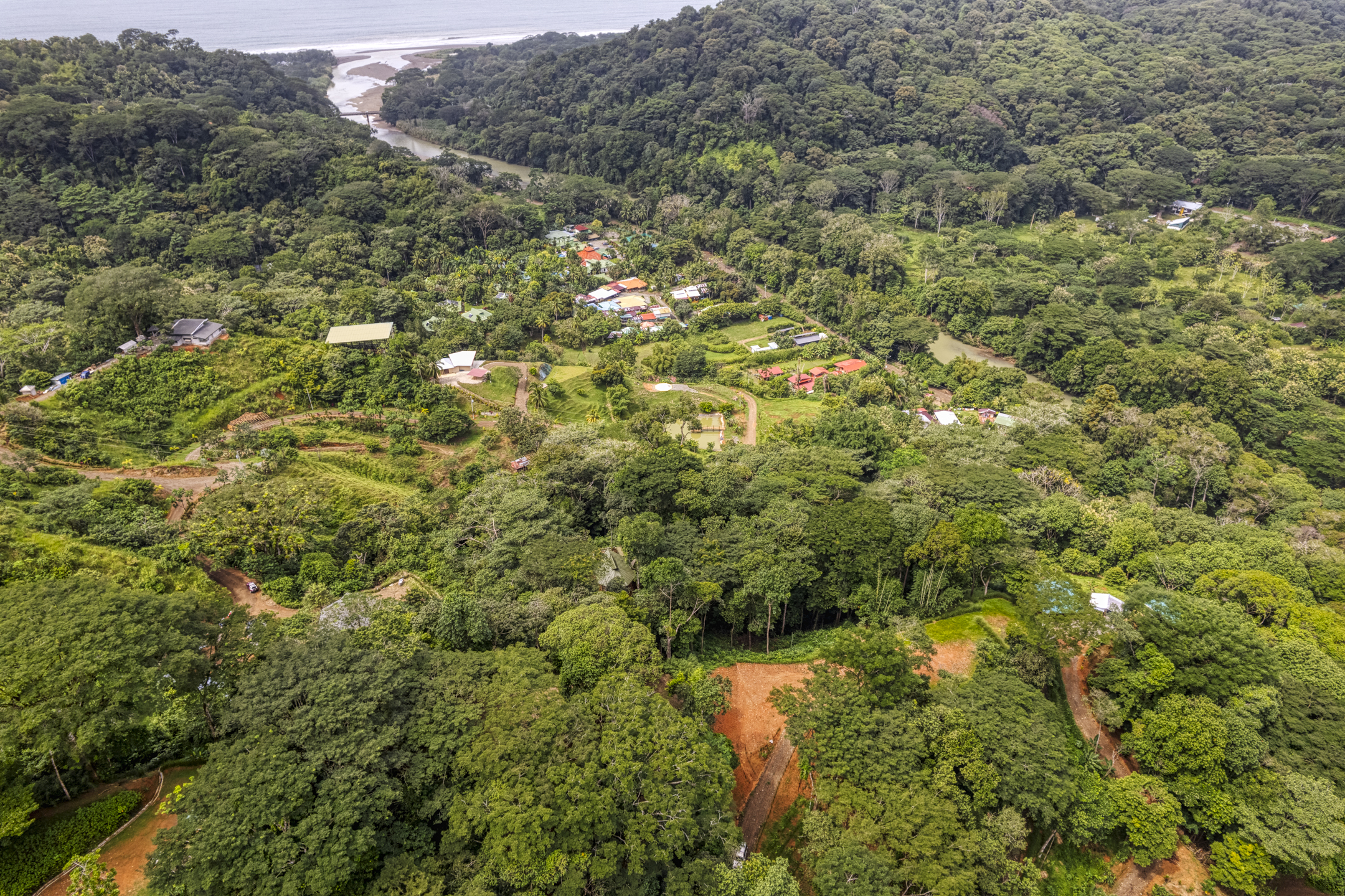 The seller has put in a considerable amount of infrastructure and work: 1. over 100 fruit trees planted: Biriba, Jackfruit, Cembedak, Breadfruit, Canasta, coconut, black zapote, mamey zapote, Colombian zapote, bacupari, santol, snake fruit, Fiji longan, Hass avocados, and other rare exotics that are not often found in markets. The owner is a tropical fruit enthusiast. 2. View of Dominical River Mouth 3. 300m main house size and 150m staff and outbuildings is the legal amount 4. Gravity-fed spring water concession underway, this is a major plus for anyone who understands the value of spring water! 5. This property is next to the end of an easement road where you can put a gate to be even more private 6. Great local business owners as neighbors 7. the building location is a cut hilltop ready to build, no fill, and erosion control and road material has been added 9. walk or ride a bike to town, swim in the river, at the bottom of the hill!