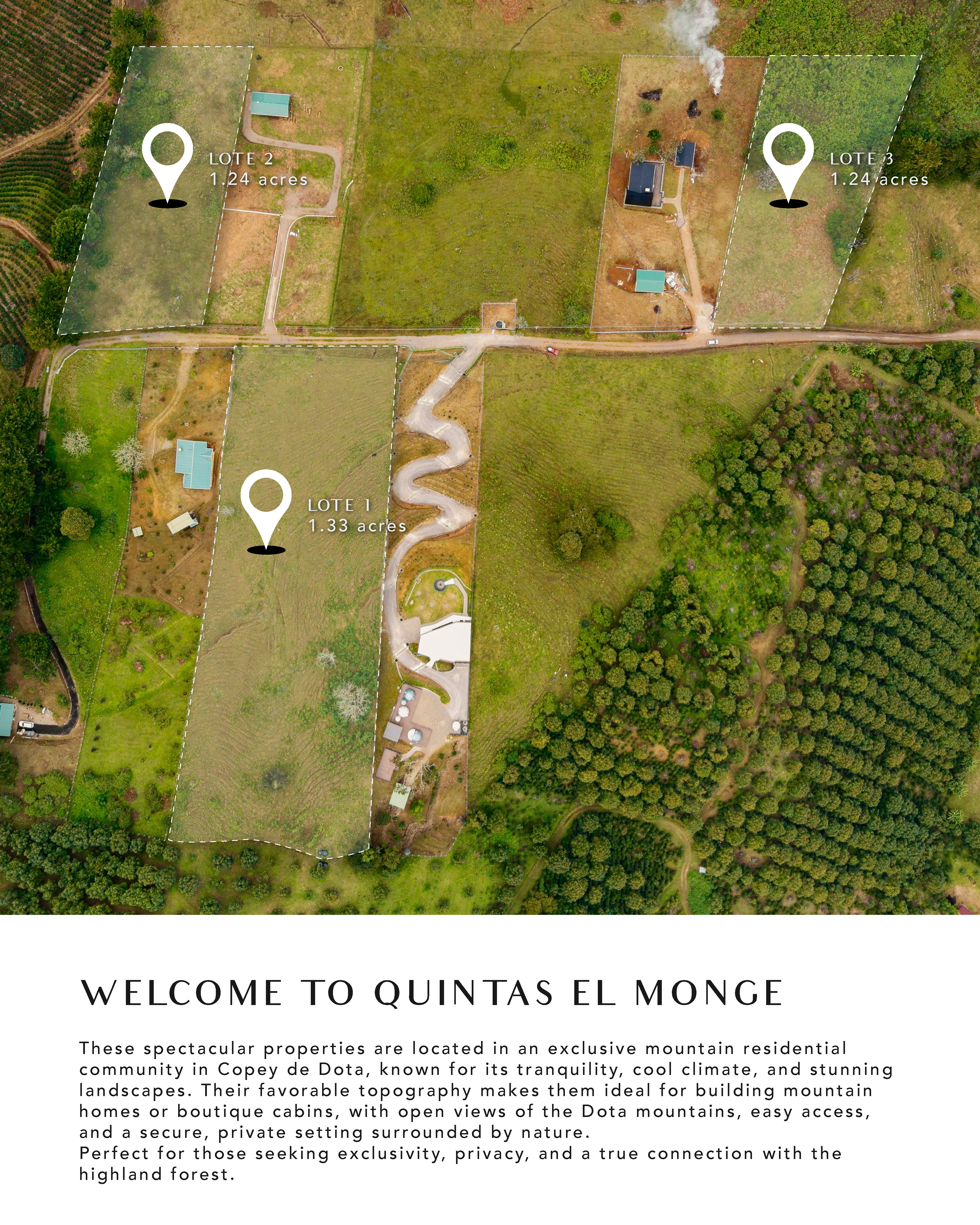 Enjoy open views toward the Dota mountains, convenient access via a fully passable road, and a privileged location within a secure and private residential project surrounded by nature.