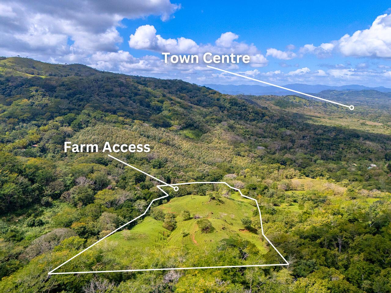 The land is a short, 15-minute drive on good roads from the safe, well-run town of Hojancha and 45 minutes from the colonial city of Nicoya. The Liberia international airport is just an hour and 45 minutes away.