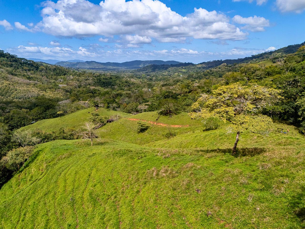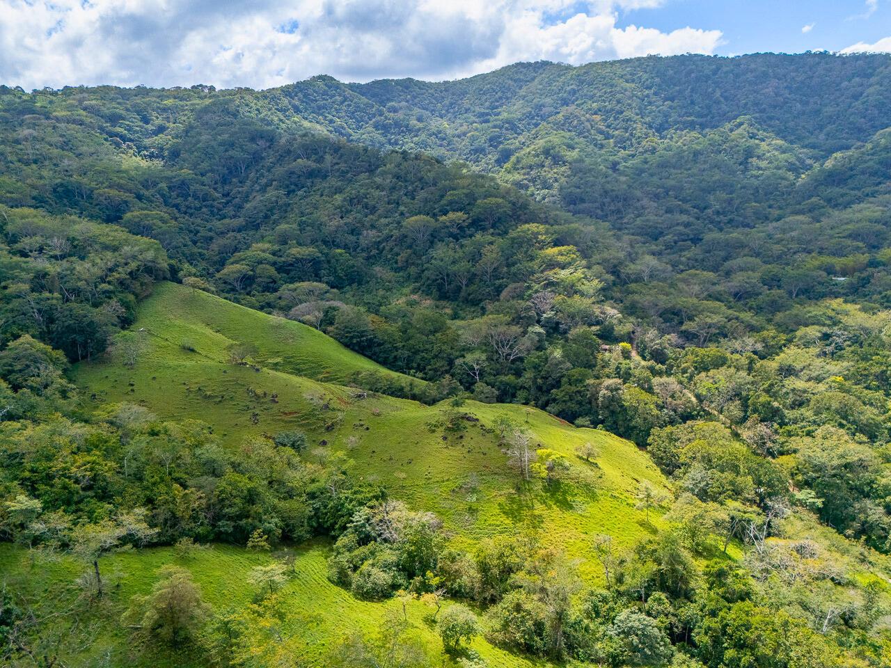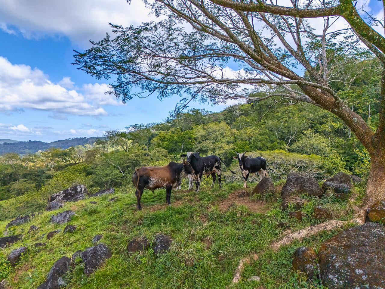 Presently used to graze cattle, this property could be an excellent site for a nature lodge, a small ecological community, an integrated farm, or a homesite for connoisseurs of expansive mountain views and fresh air. Because of its location, it is potentially an important conservation property, and any use that does not pollute water, erode the soil, harm wildlife, and allows portions of the natural forest to regenerate is a significant contribution. The property has abundant water, available from both an onsite spring and the community-run potable water committee. A pristine stream runs through the land. The climate is significantly cooler than that of the Pacific coast, which is nevertheless only an hour away.