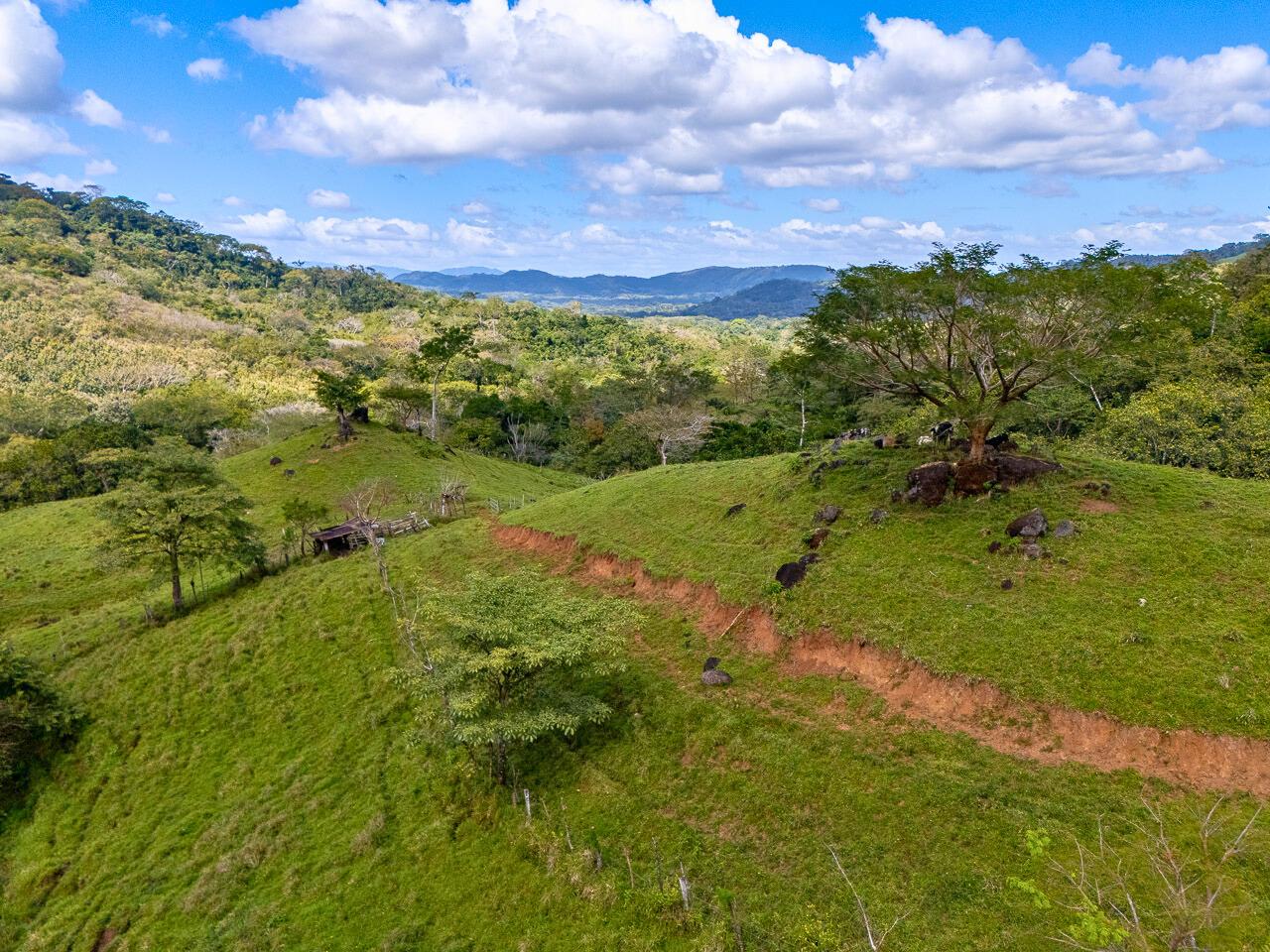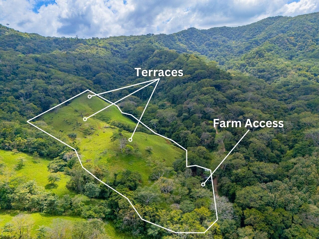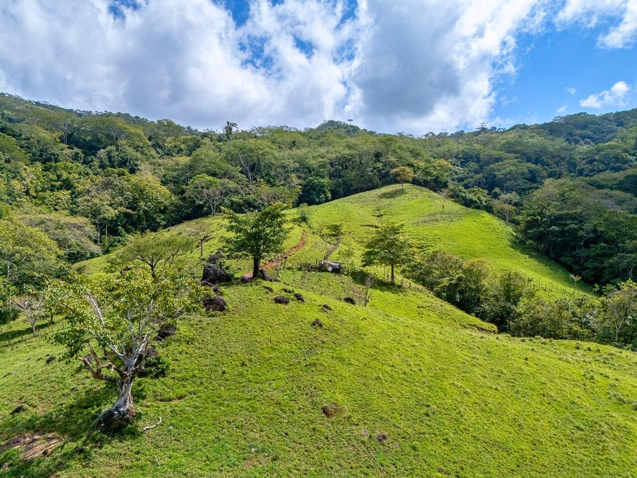 Presently used to graze cattle, this property could be an excellent site for a nature lodge, a small ecological community, an integrated farm, or a homesite for connoisseurs of expansive mountain views and fresh air. Because of its location, it is potentially an important conservation property, and any use that does not pollute water, erode the soil, harm wildlife, and allows portions of the natural forest to regenerate is a significant contribution. The property has abundant water, available from both an onsite spring and the community-run potable water committee. A pristine stream runs through the land. The climate is significantly cooler than that of the Pacific coast, which is nevertheless only an hour away.