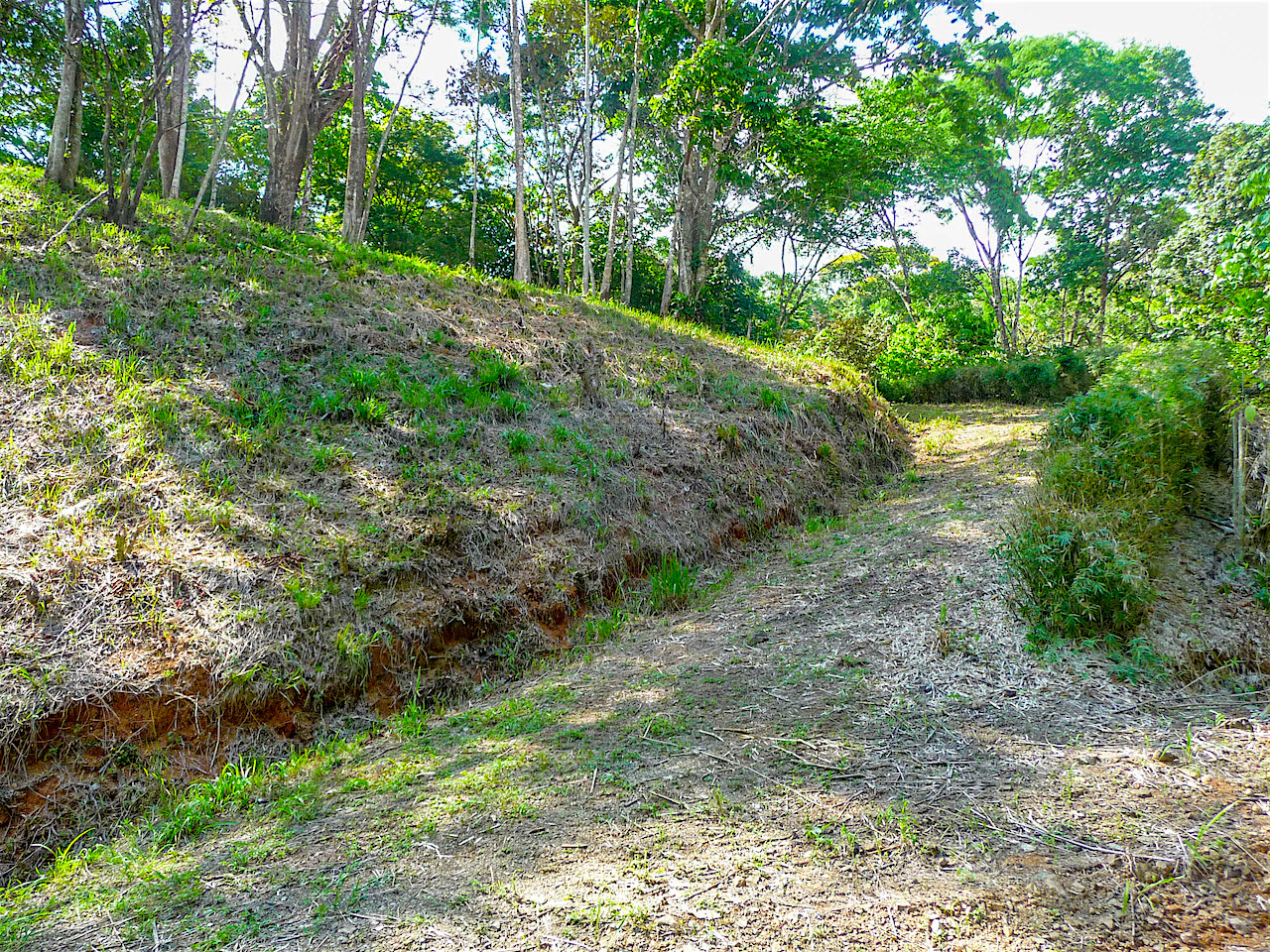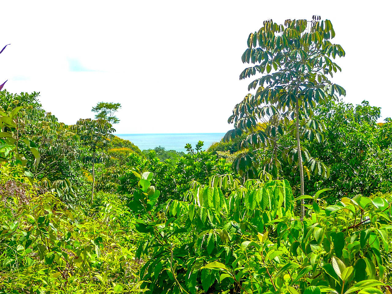 This beautiful building lot is located on top of a hill with an ocean view in front and surrounded by jungle and mountain view in the back. This lot has a large building site ready to build a large home or a commercial construction such as a bed & breakfast, cabins or a restaurant. The building site measures 75 feet by 213 feet at its widest and longest point. All services including water, electricity are in place with a well maintained road.
