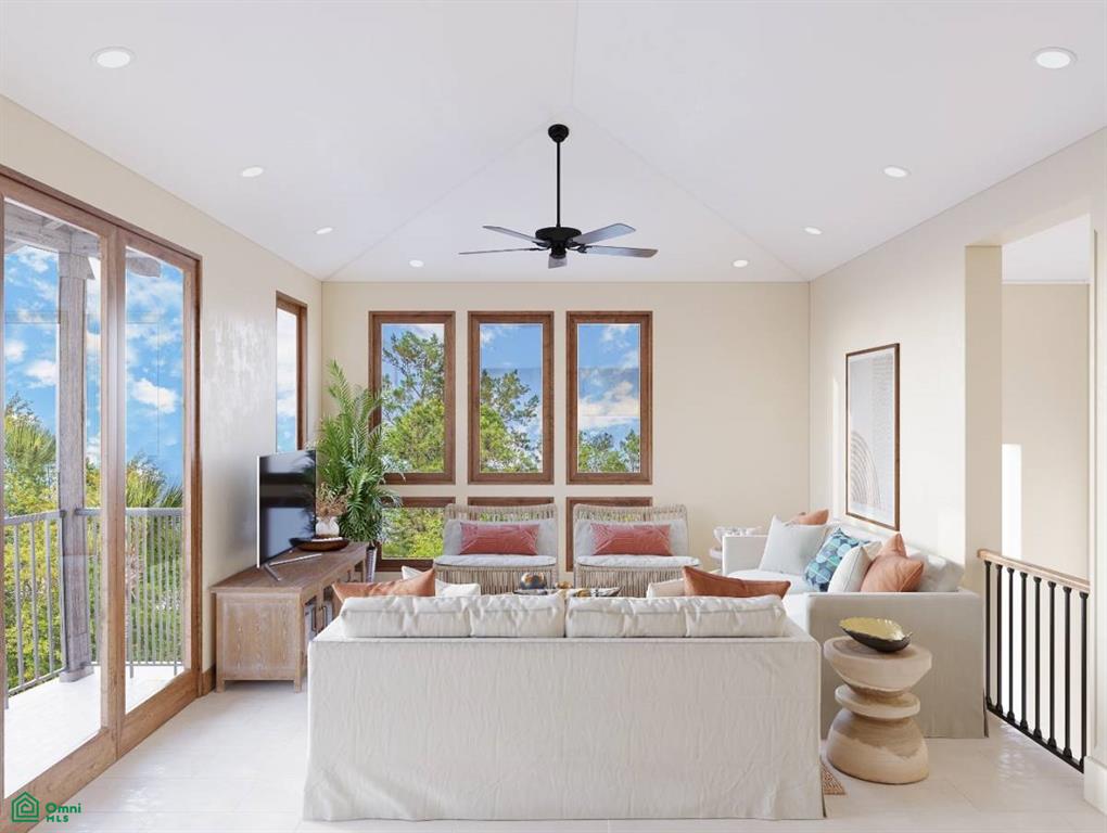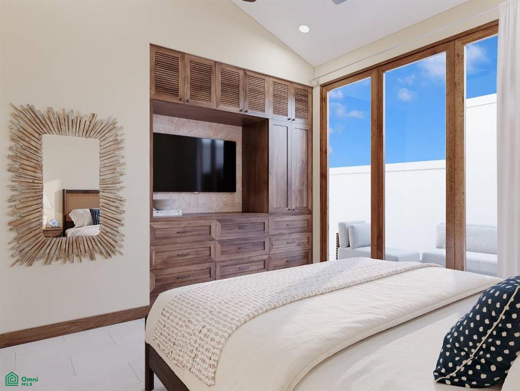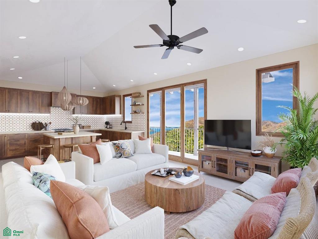 The upper level features three bedrooms, two bathrooms, and an ocean-view terrace perfect for enjoying sunsets. The lower level includes a lock-out apartment with two bedrooms, two bathrooms, a spacious patio, and a private plunge pool, ideal for tropical indoor-outdoor living.