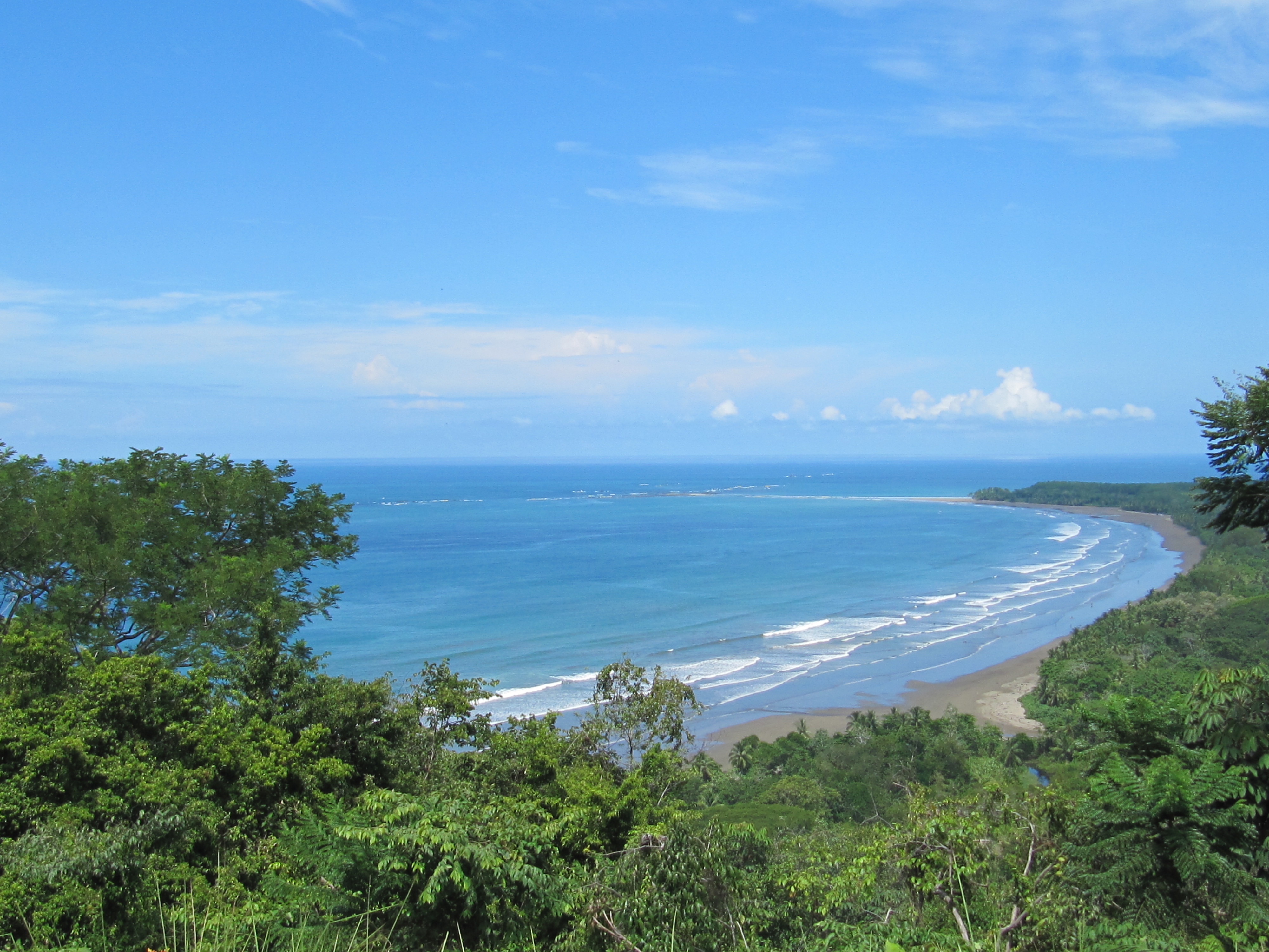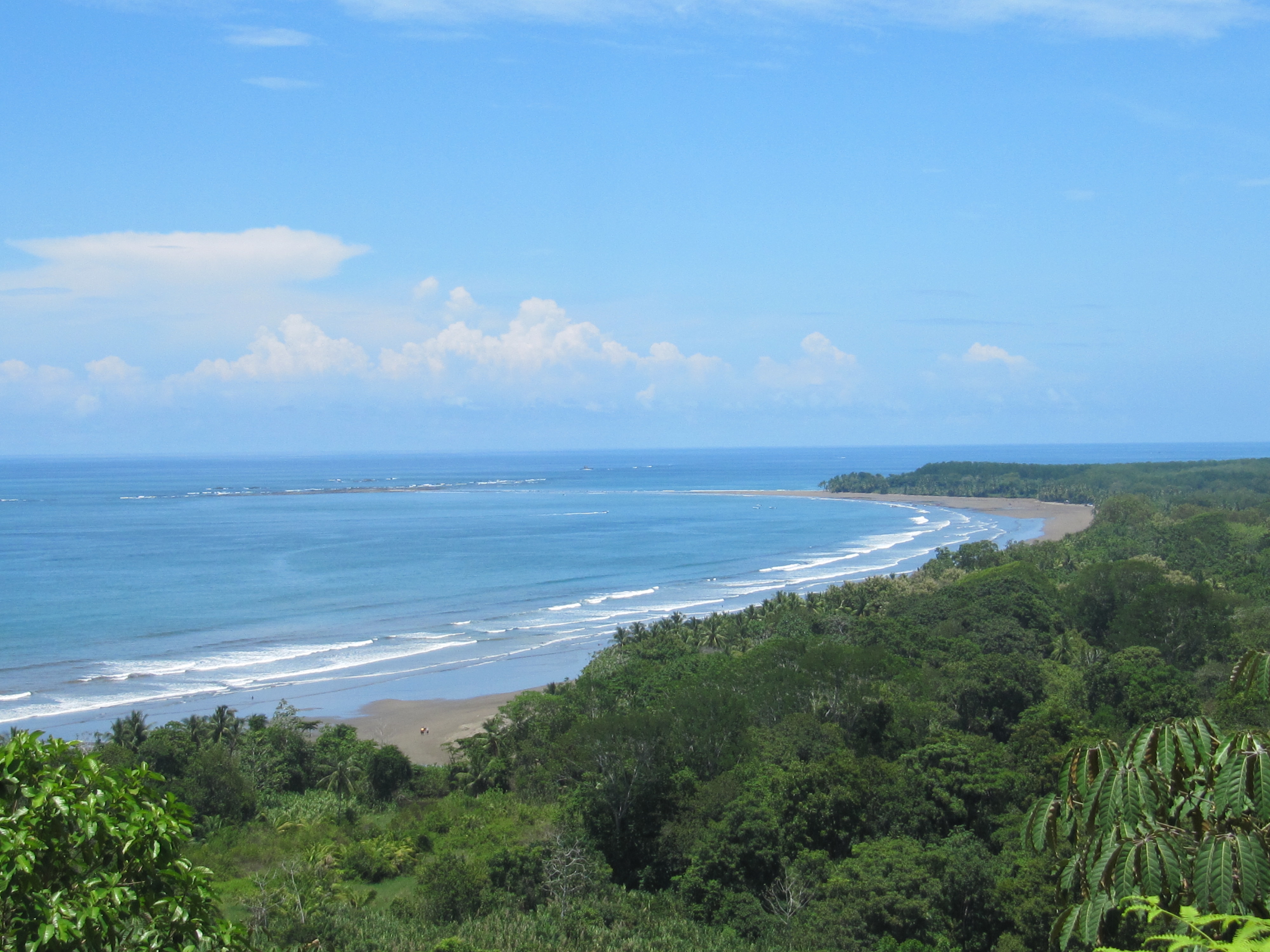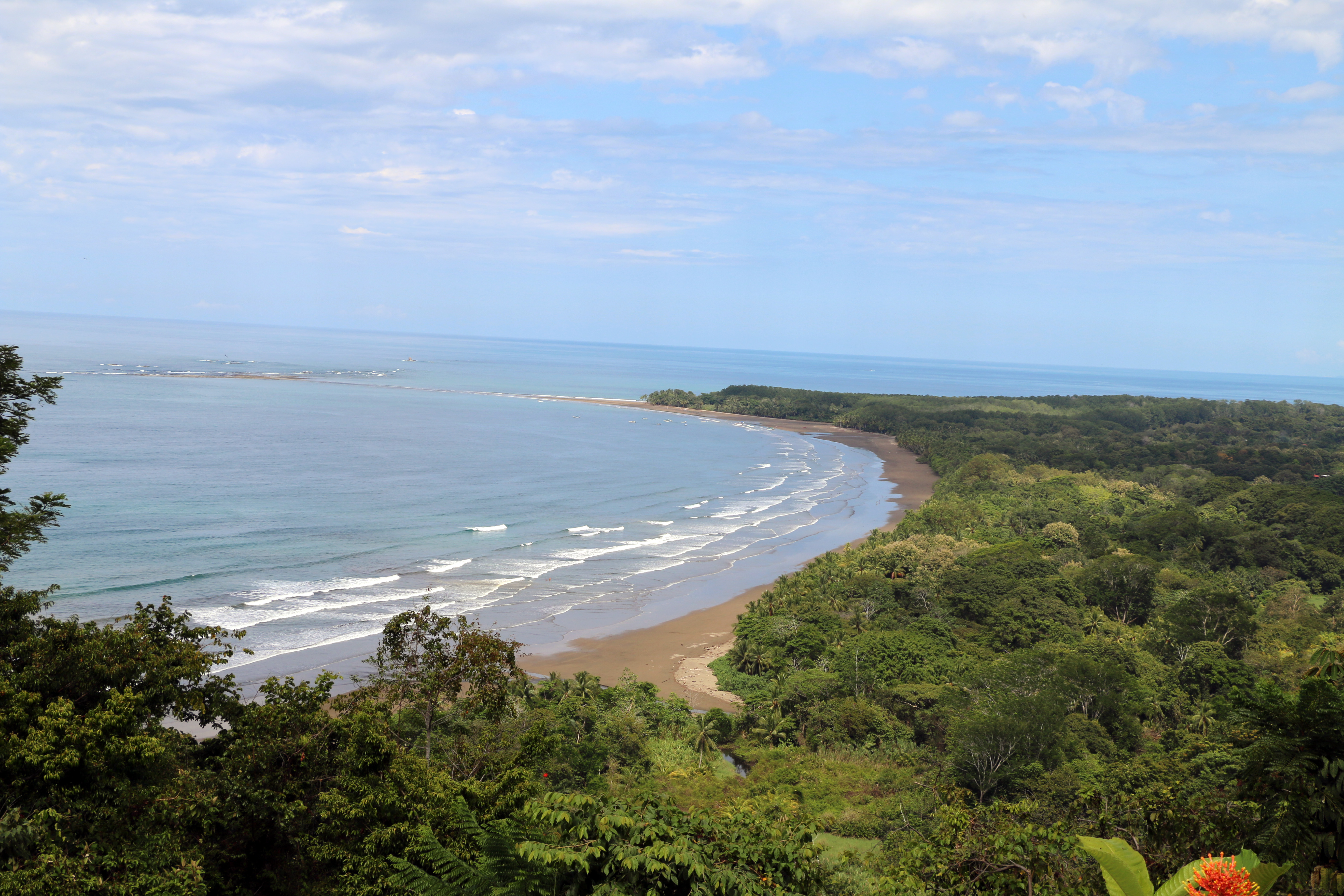 This 16 acre parcel is positioned on the first ridge just south of Punta Uvita and provides stunning views of waves rolling in along the entire length of Playa Uvita’s beautiful beach that has the Ballena (whale) Marina National Park, home to the famed appearing and disappearing Whales Tail geographical phenomenon sitting on the ocean side of the beach. This site looks directly north up the coast to Manuel Antonio National Park and Isla Del Caño can be seen to the west. The southern extension of the Whales Tail rock formation makes this beach one of the safest in Costa Rica by reducing dangerous rip currents.