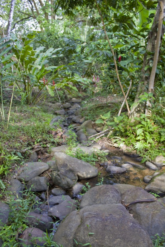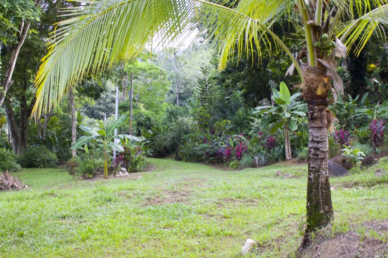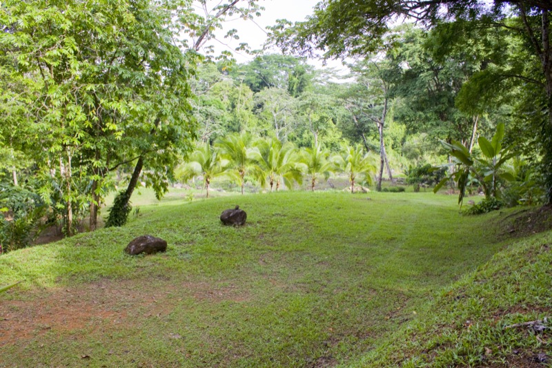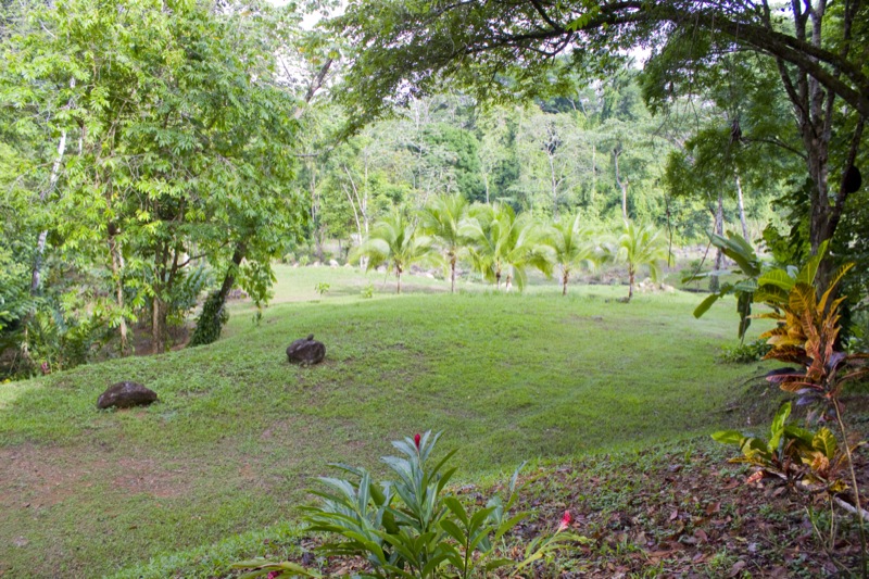 From these the land extends quite a ways over to the river. All around the area are well established ornamental plants, heliconias and palm trees. The presence of toucans, sloths and other Costa Rica wildlife is consistent.