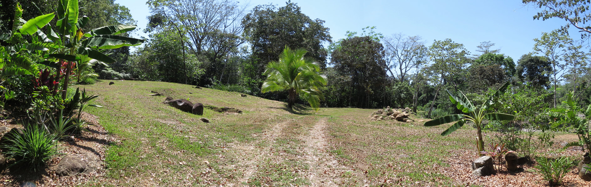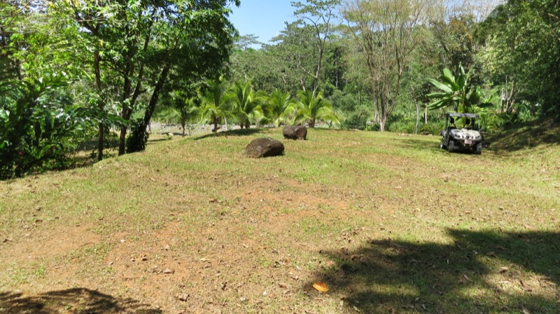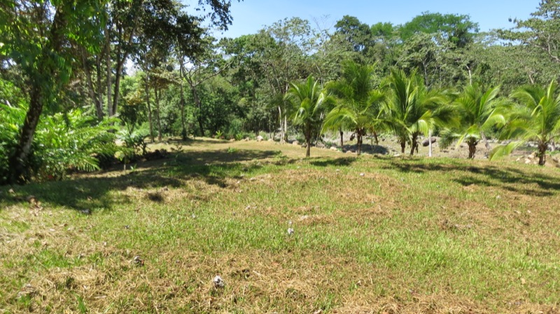 About the photos: Use the row of 5 young palm trees as your point of reference. These distinguish the upper building site from the lower/larger building area. When you are on the primary site looking towards the river, the palms will be off to your left a bit, defining the lower edge of the site. Beyond this and further to your left is the secondary building area, which is large and can accommodate another complete house/pool/guest house, or numerous cabinas.