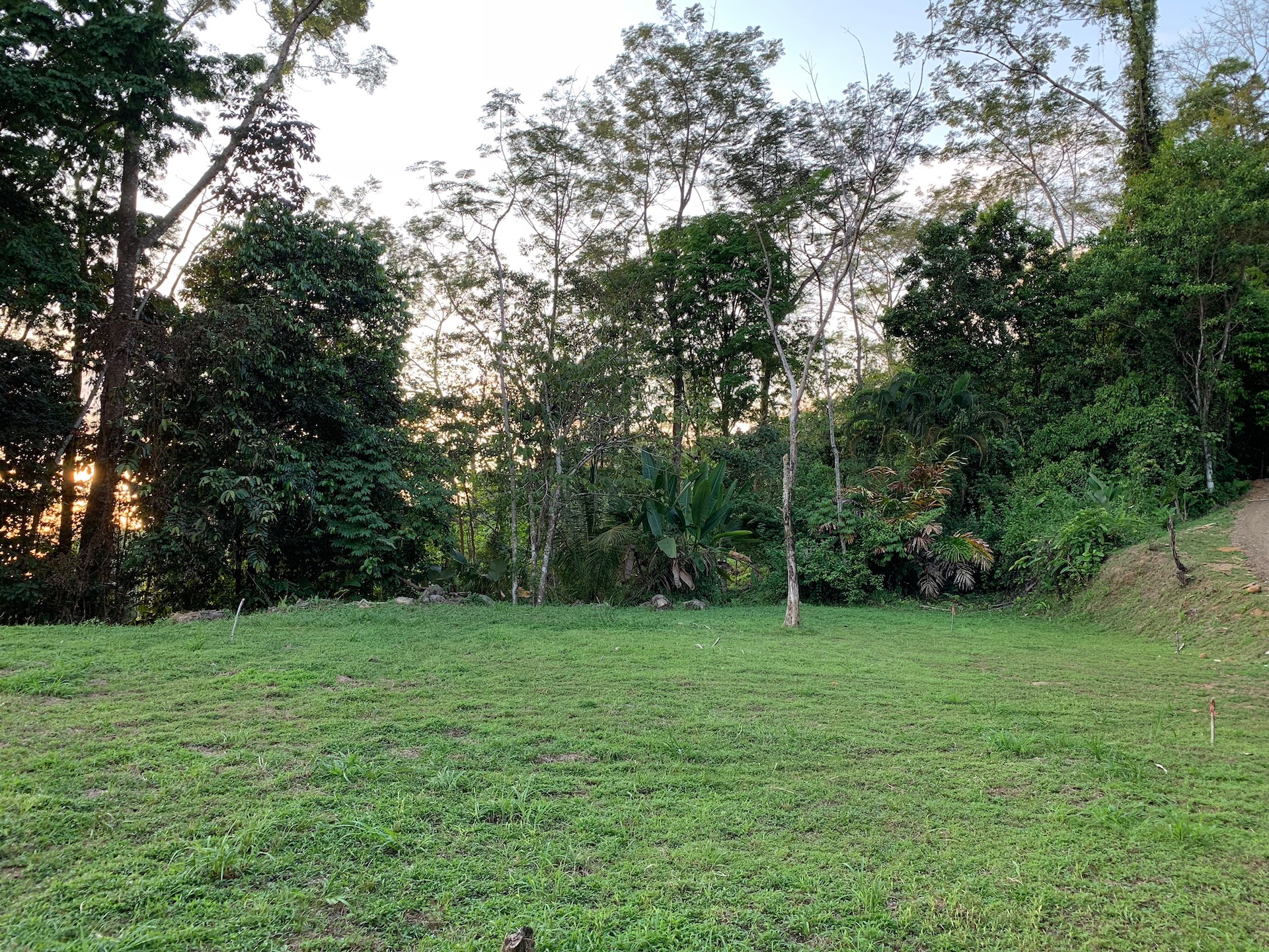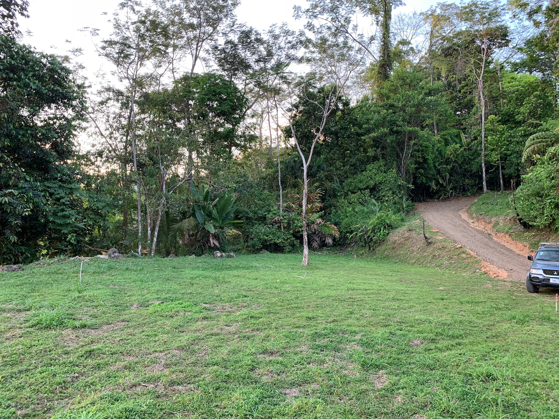 Because of the elevated location at the end of the Cielo del Sur development, the property is very private and secure. Two national parks (Rancho Merced and Ballena Nationa Park) are in front, ensuring absolute privacy and that no homes will block or interfere with the beautiful views. Because of this, there are many animals and birds that can be seen in the lush jungle that surrounds the building area. The property has two sources of water. One source is well that is currently in the process of being legally registered, which will allow for building permits to be granted with the newly established water regulations. The other source is from the La Guarga community system.