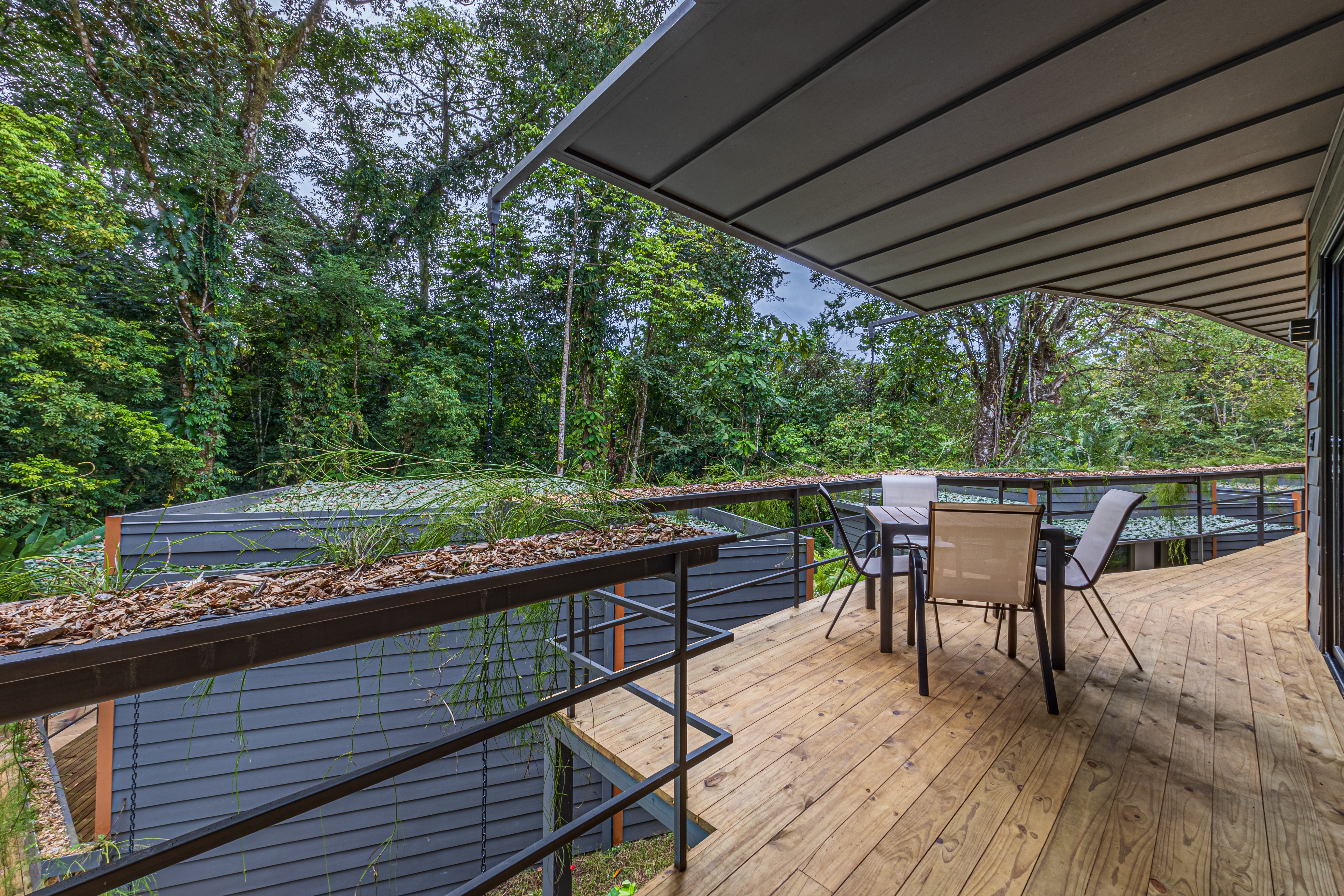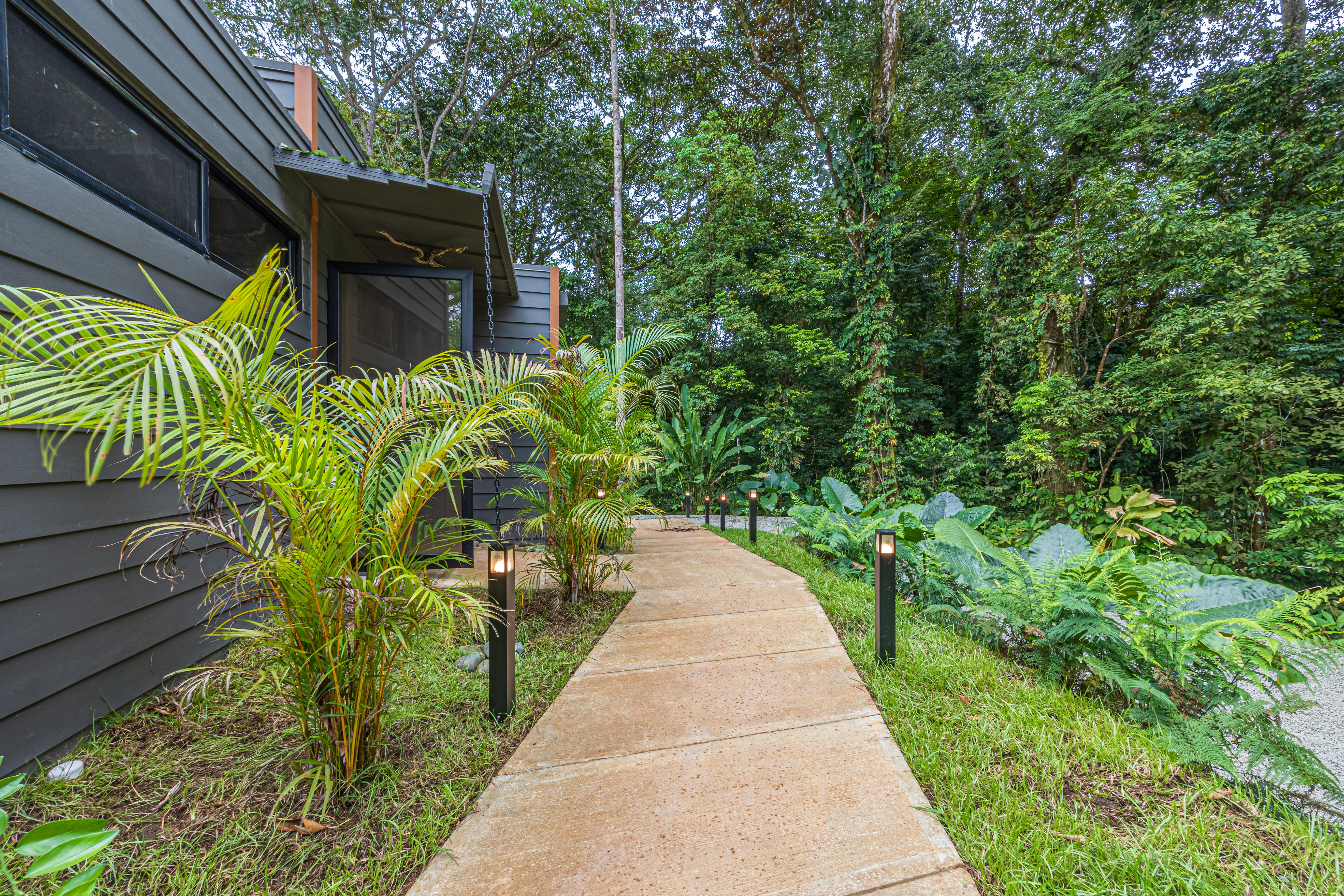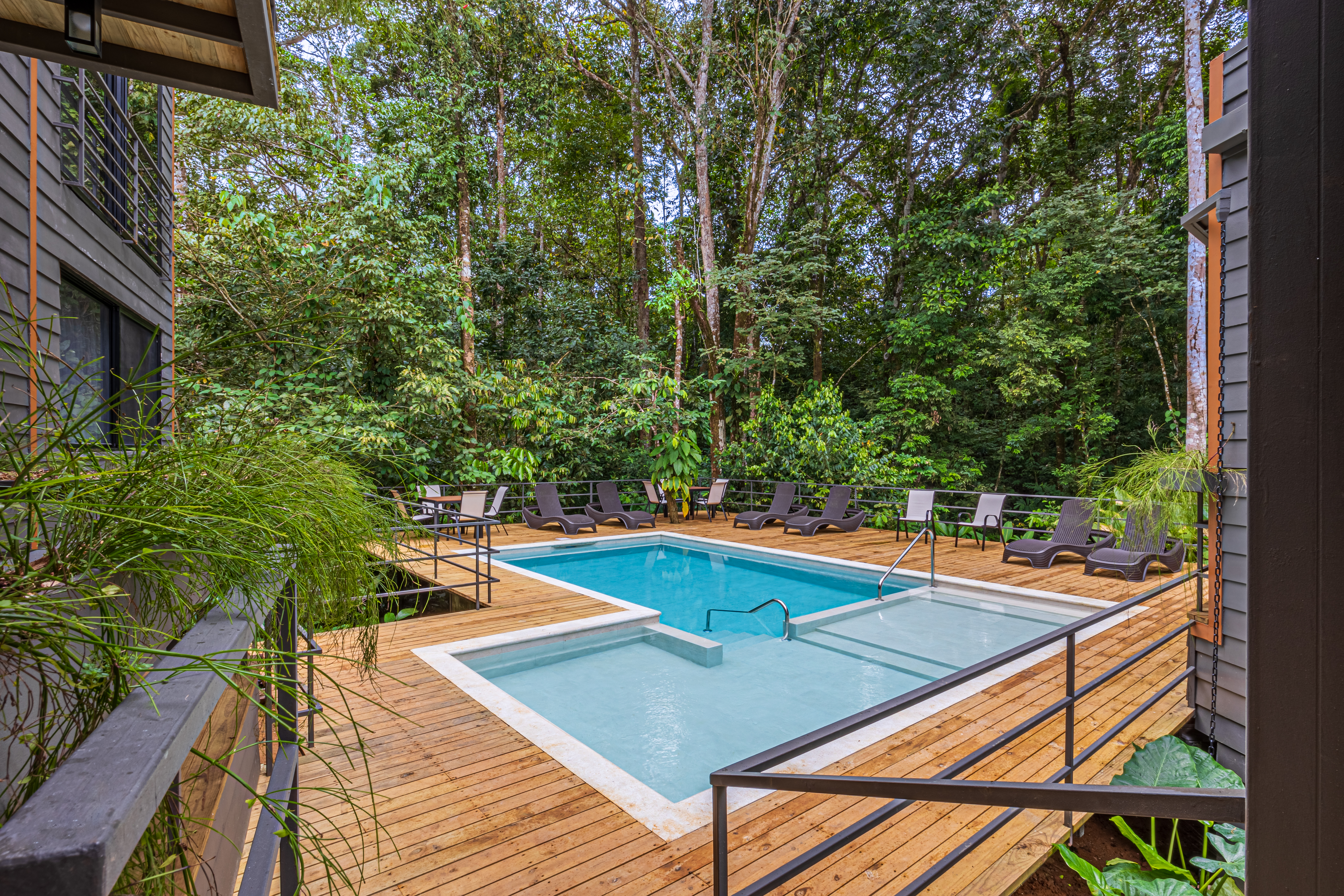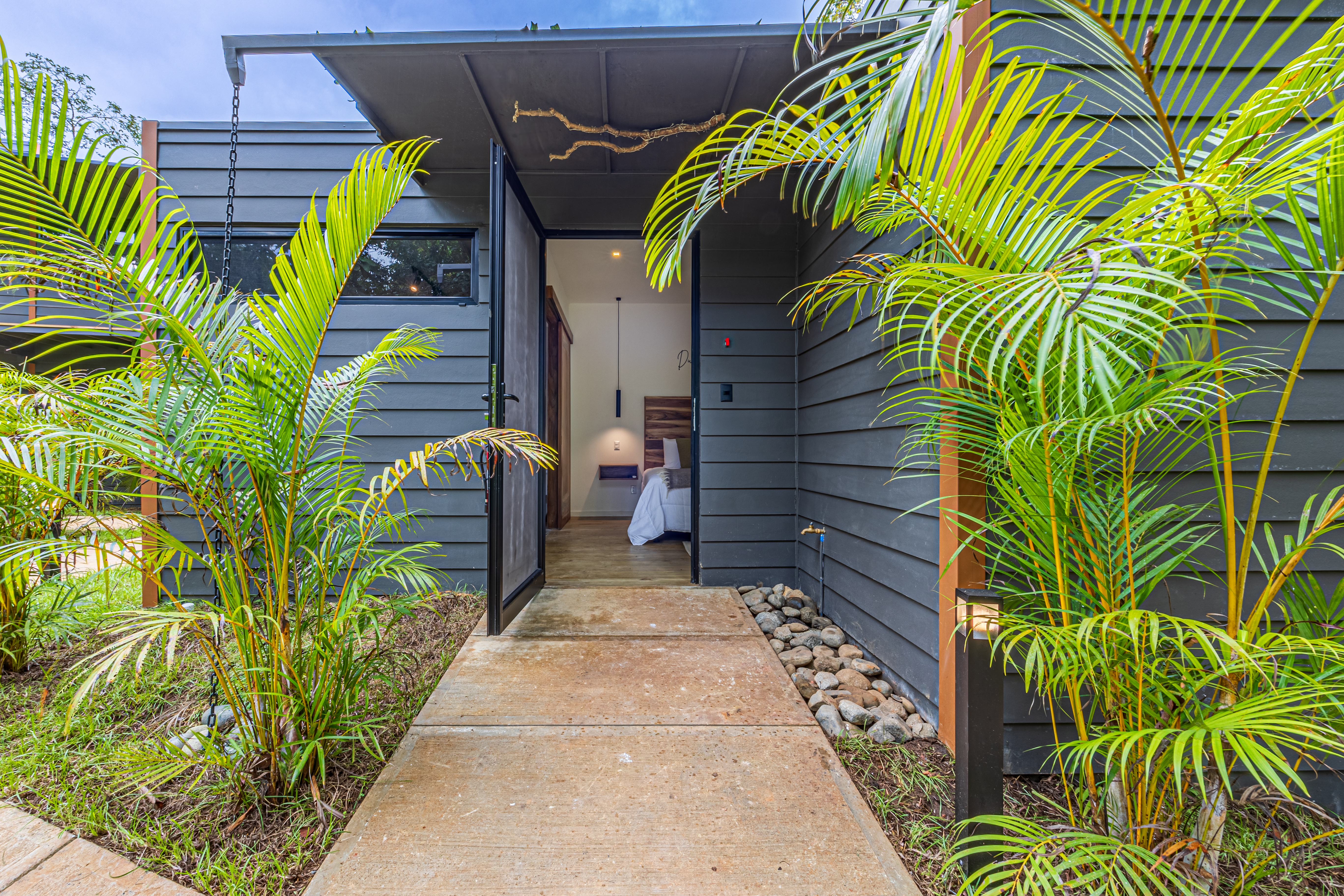Tucked against a lush jungle backdrop and bordered by a peaceful river, the setting is rich with wildlife and natural ambiance. Meandering, beautifully landscaped paths connect the rooms to a shared pool, creating a serene, resort-like atmosphere.