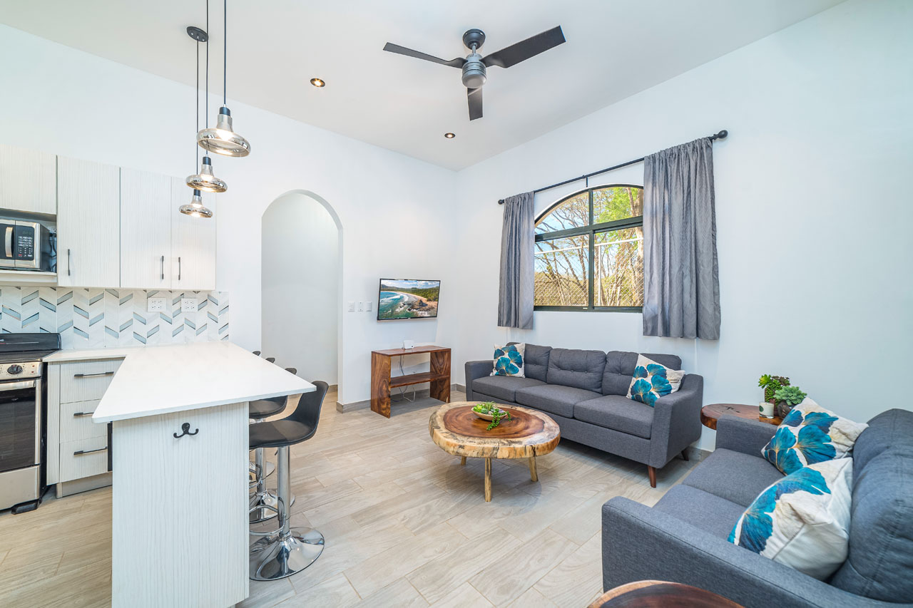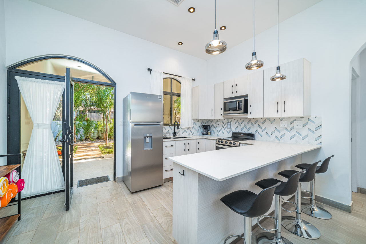 This oasis is a special spot designed to offer four private homes. Built in 2022, the apartments are perfect spaces for digital nomads of families moving to Costa Rica, with spacious kitchens and comfortable bedrooms.
