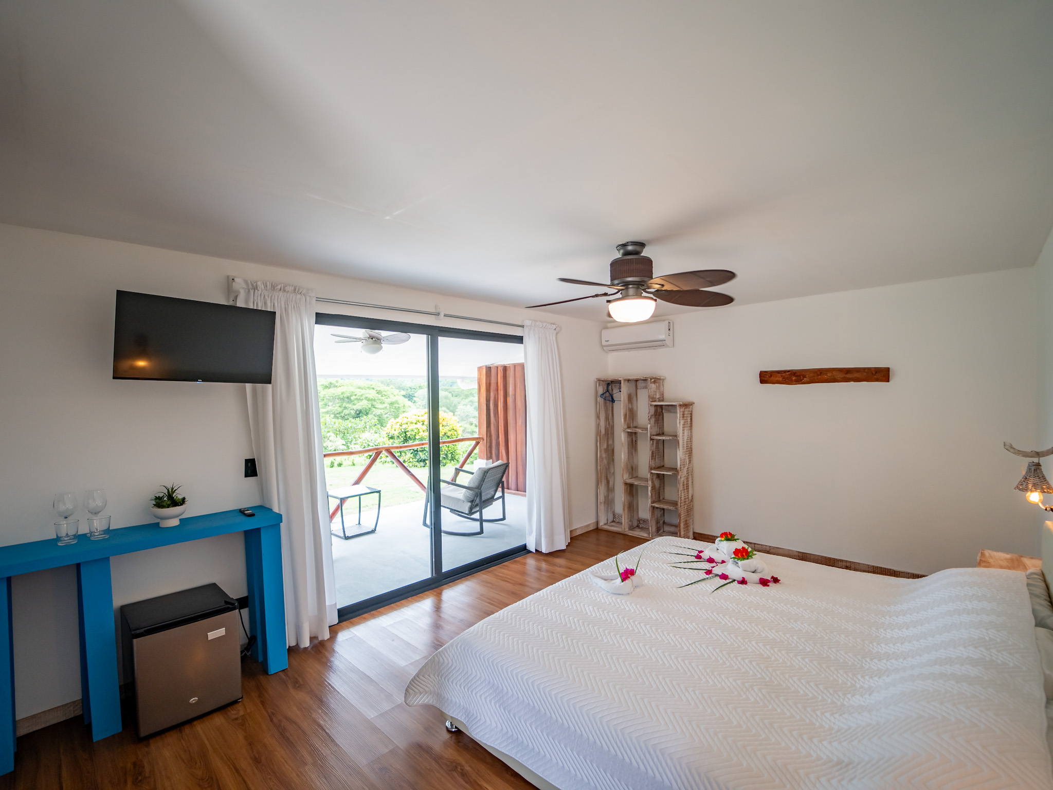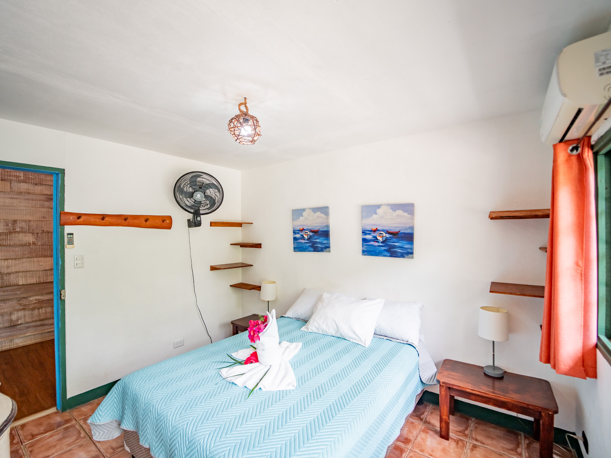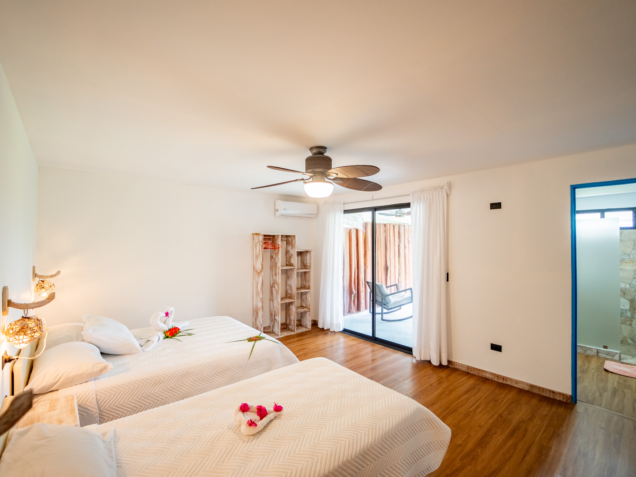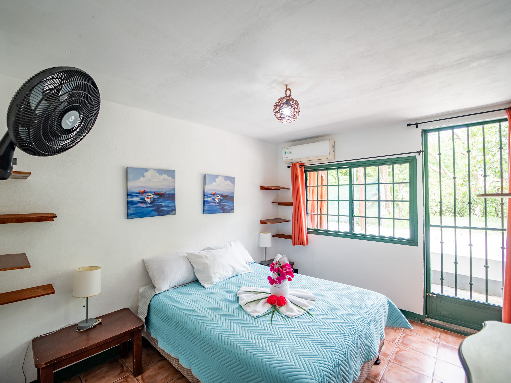 The hotel features 10 recently renovated private rooms, each outfitted with A/C, Wi-Fi, television, and hot water. Six rooms offer private terraces with breathtaking ocean views, while the remaining four open directly onto peaceful garden patios—perfect for those seeking a more tranquil experience. Guests enjoy breakfast with serene mountain views and gather each evening at the open-air restaurant and oceanview bar, which is open daily from 2pm to 10pm.