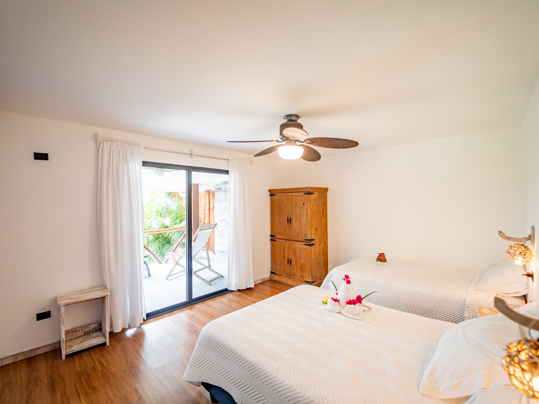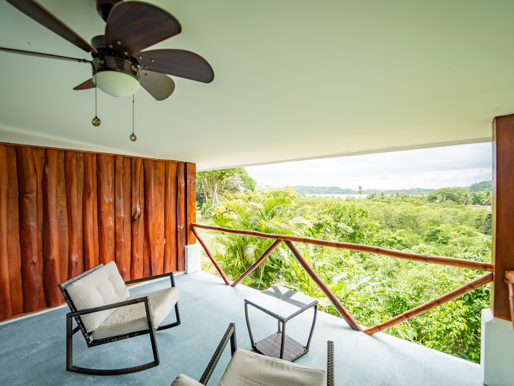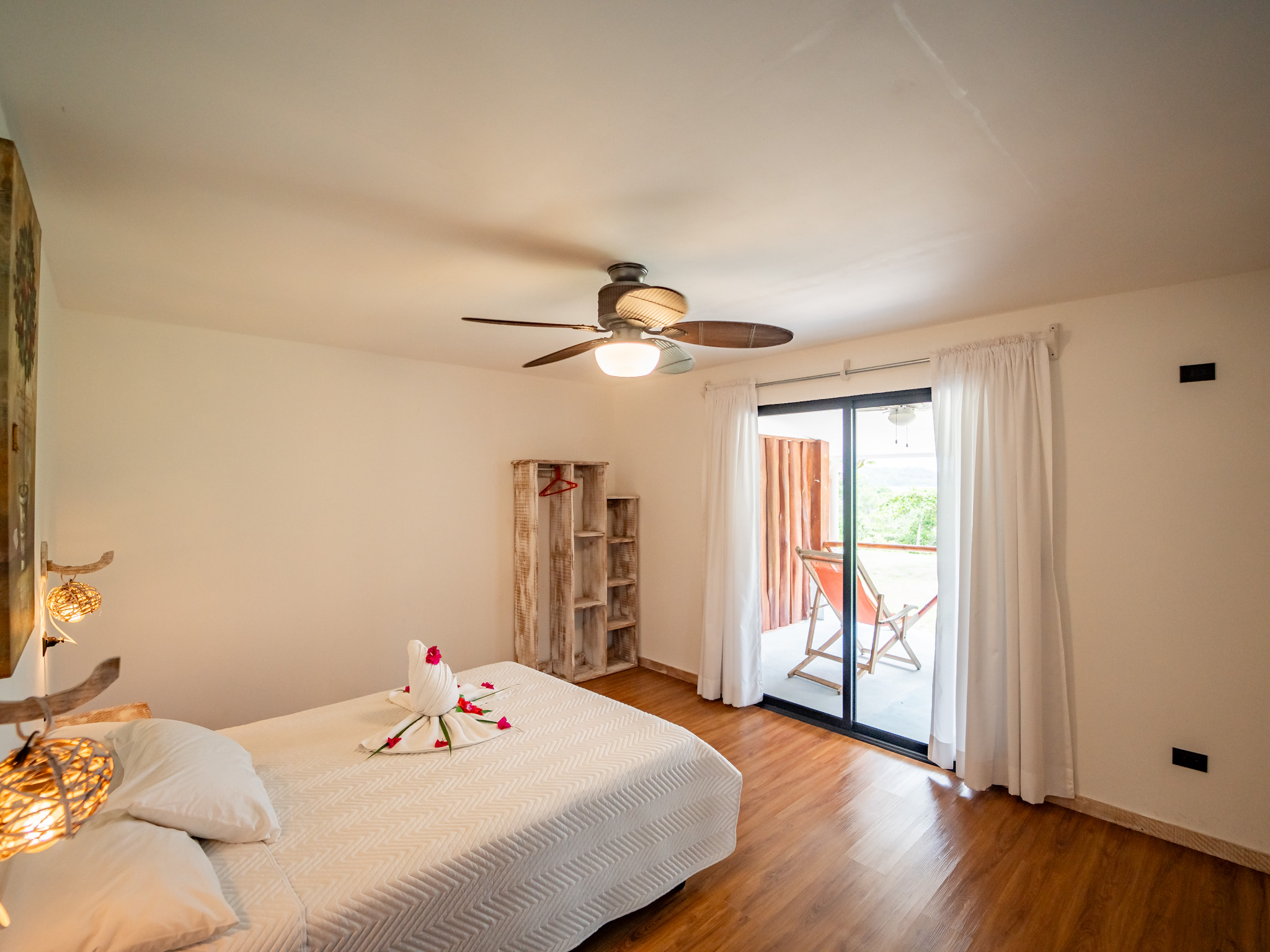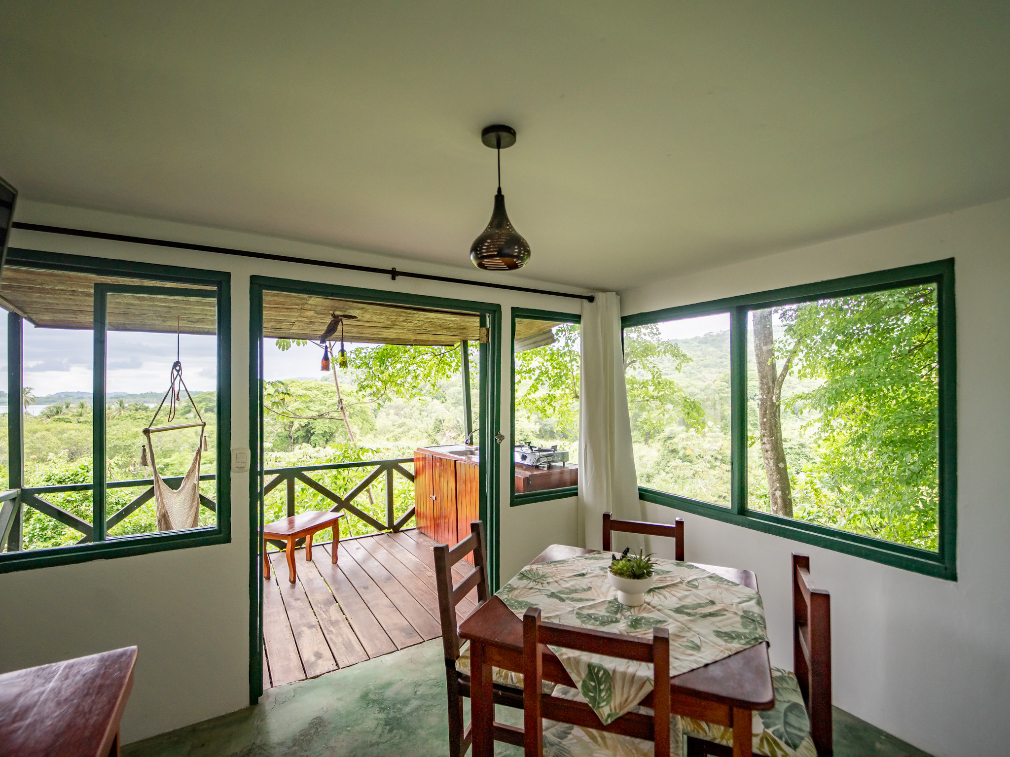 The hotel features 10 recently renovated private rooms, each outfitted with A/C, Wi-Fi, television, and hot water. Six rooms offer private terraces with breathtaking ocean views, while the remaining four open directly onto peaceful garden patios—perfect for those seeking a more tranquil experience. Guests enjoy breakfast with serene mountain views and gather each evening at the open-air restaurant and oceanview bar, which is open daily from 2pm to 10pm.