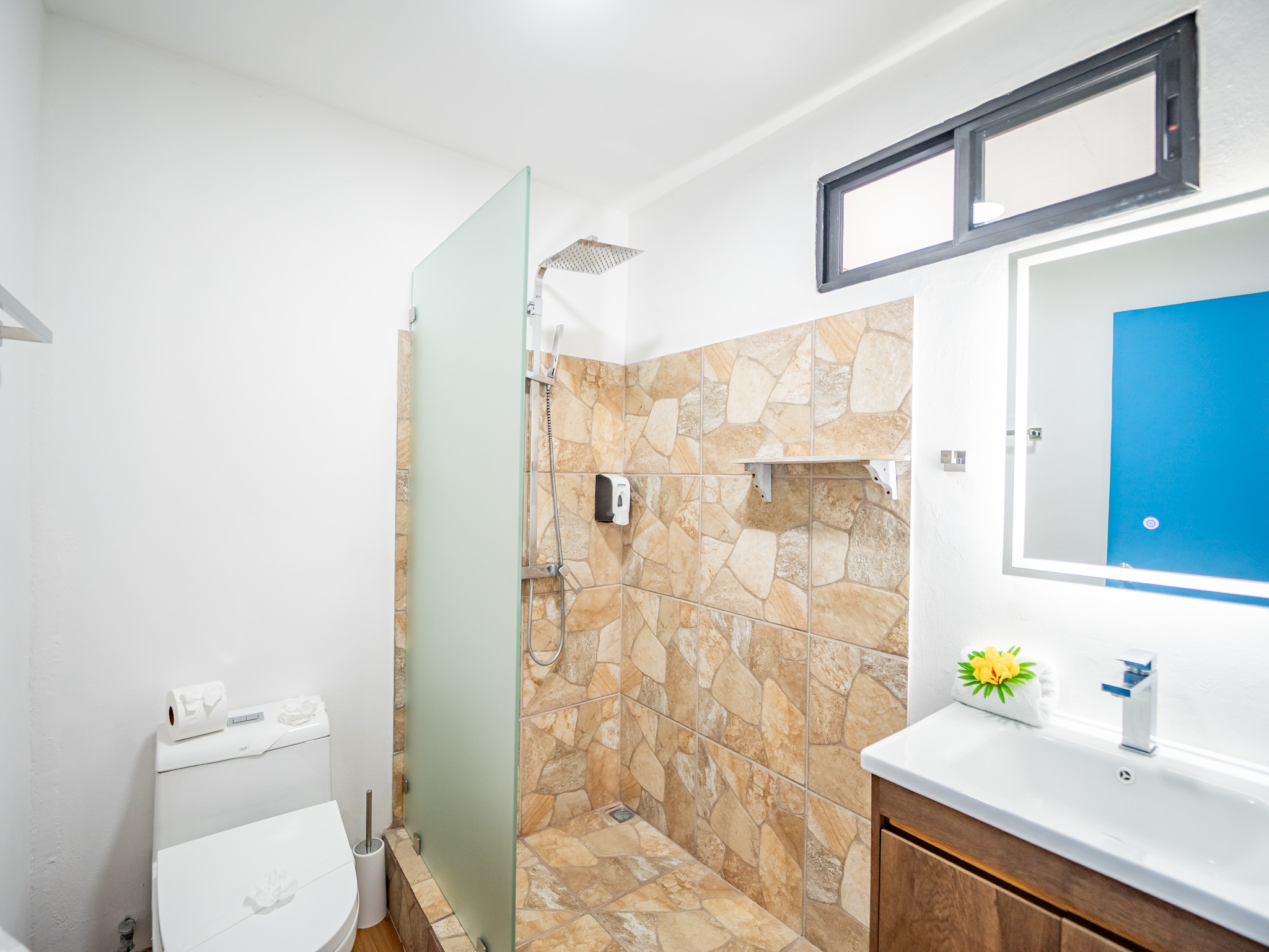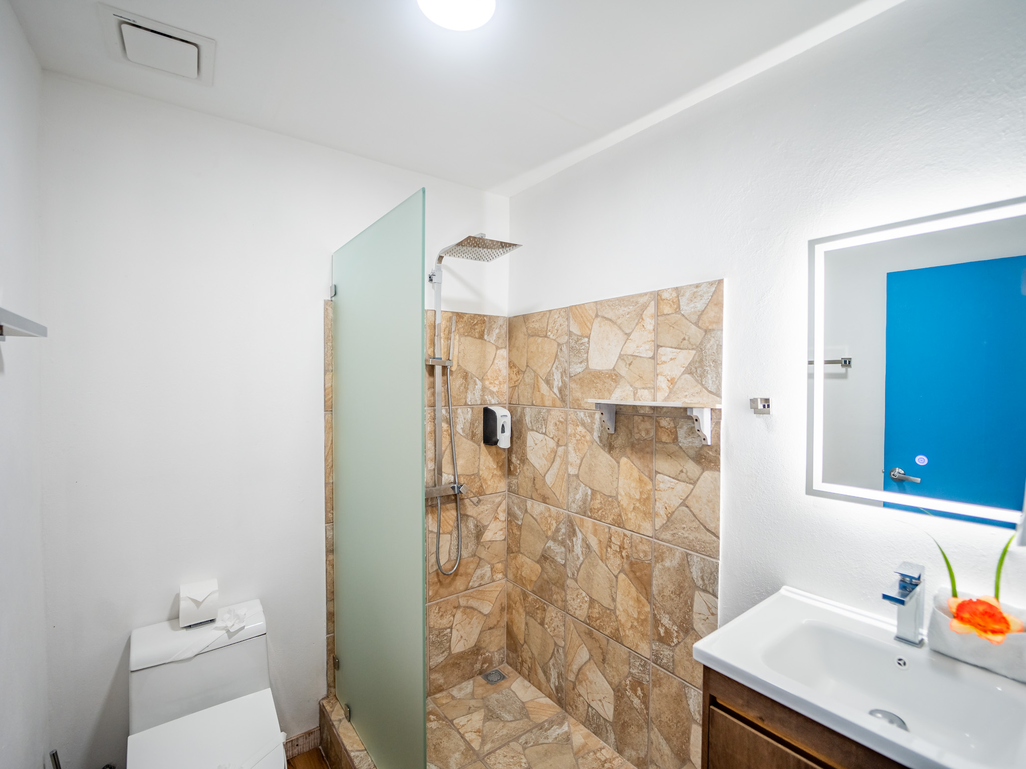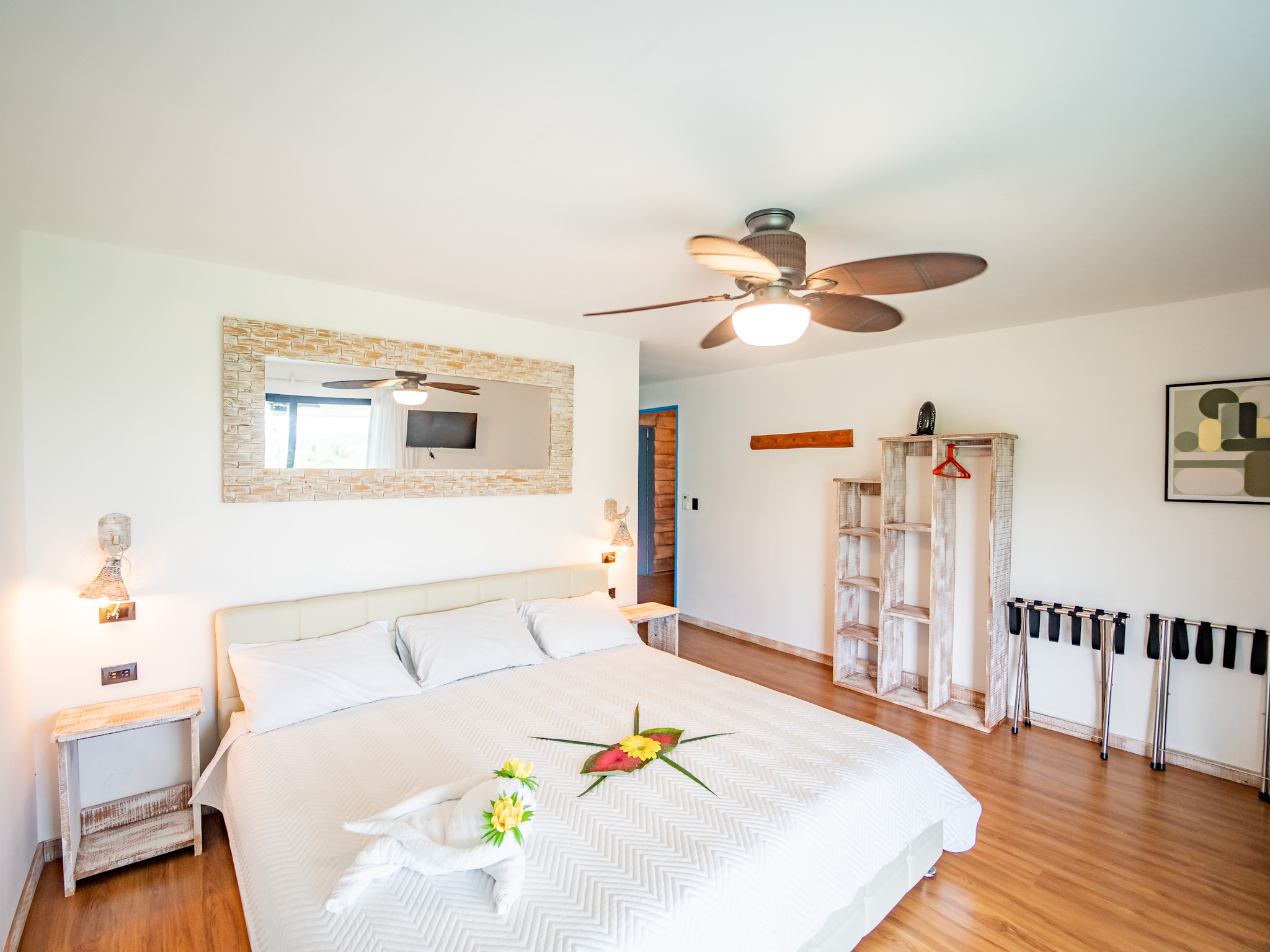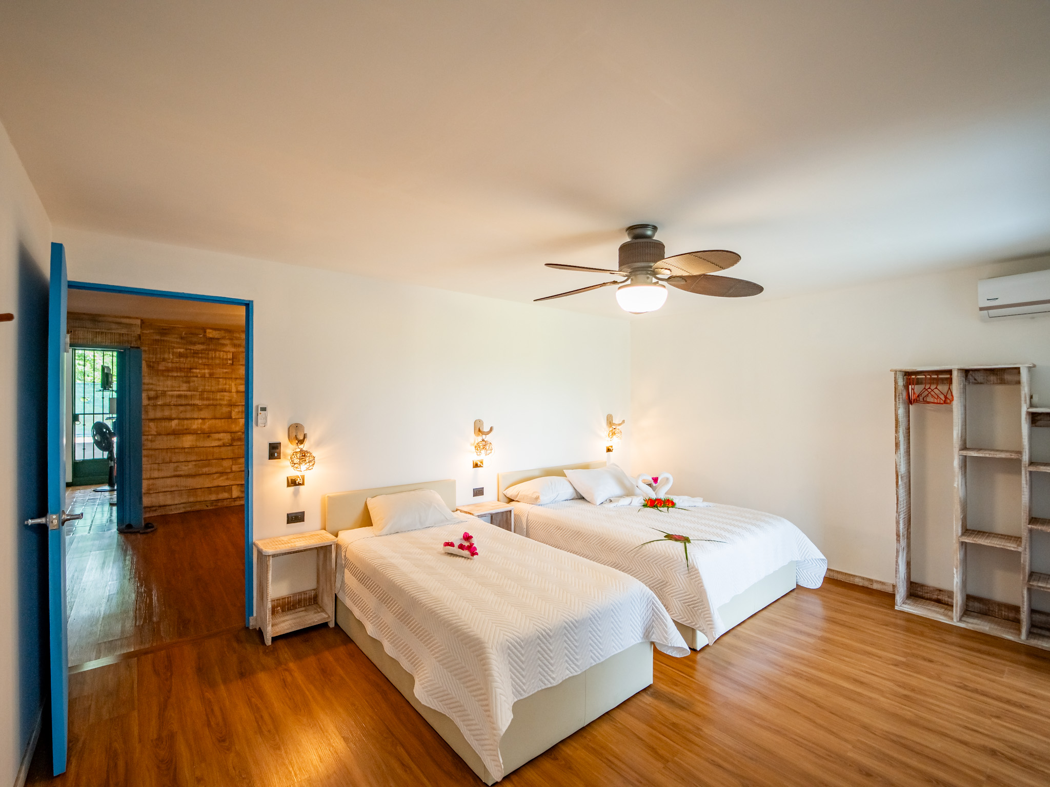 The hotel features 10 recently renovated private rooms, each outfitted with A/C, Wi-Fi, television, and hot water. Six rooms offer private terraces with breathtaking ocean views, while the remaining four open directly onto peaceful garden patios—perfect for those seeking a more tranquil experience. Guests enjoy breakfast with serene mountain views and gather each evening at the open-air restaurant and oceanview bar, which is open daily from 2pm to 10pm.