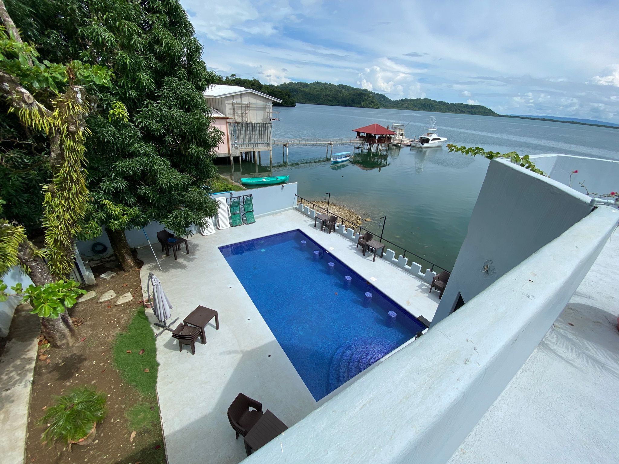 Vista Castillo is an amazing waterfront residence equipped with its own dock located in the heart of Golfito overlooking the bay. Newly renovated, it boasts 13 bedrooms, consisting of one handicap room, two rooms with a queen and a twin bunk bed, one room with two queens, and seven rooms each with a queen for guests.