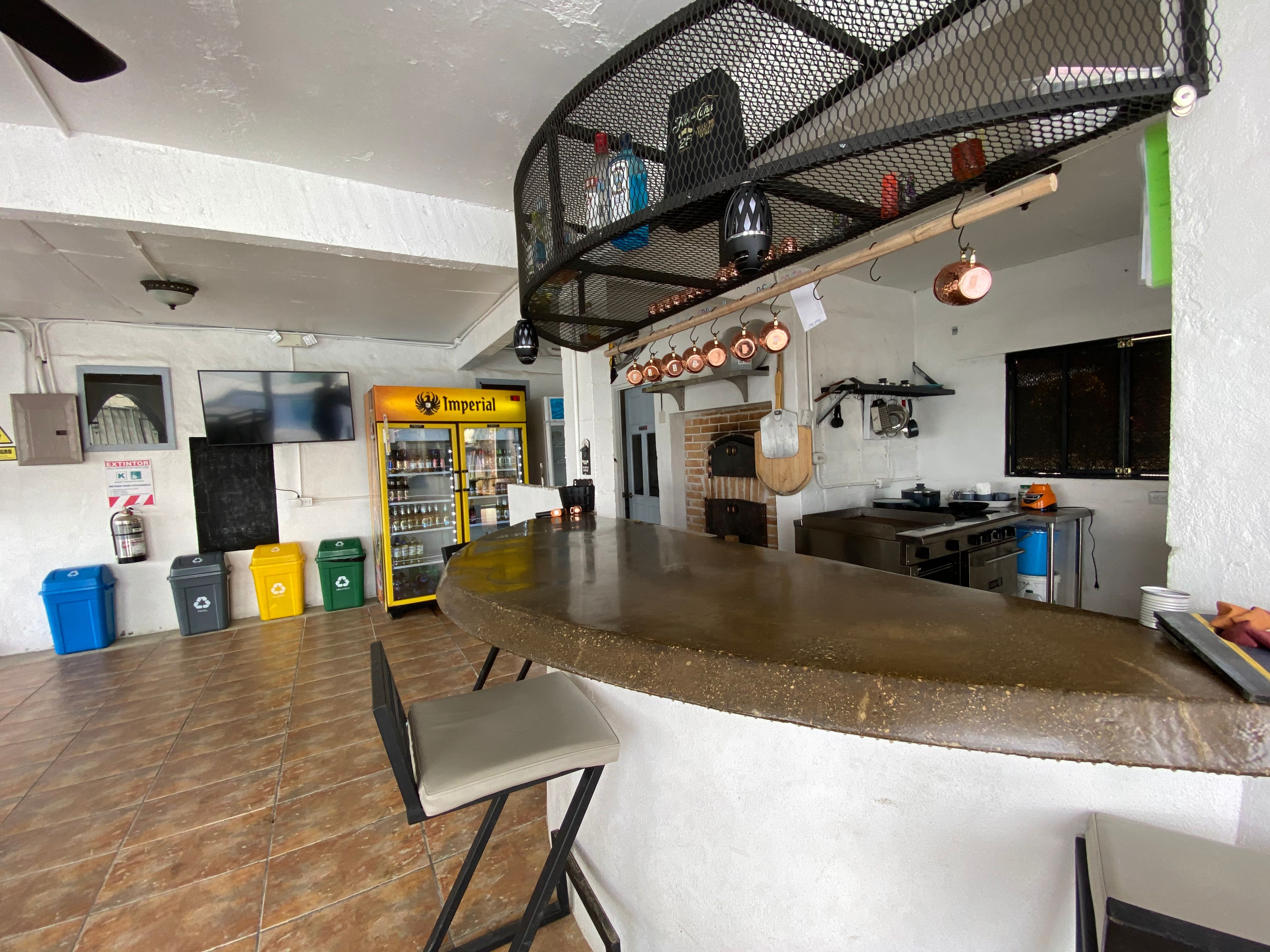 The grand residence also has quarters for staff and an owner's quarter as well. The brand new restaurant has a wood fire oven for the best pizza around alongside the new sparkling pool overlooking the bay. As you enter the residence the lobby is inviting you to meet guests and show them to the múltiple sitting areas one can enjoy while watching the dolphins and whales right in front of you.