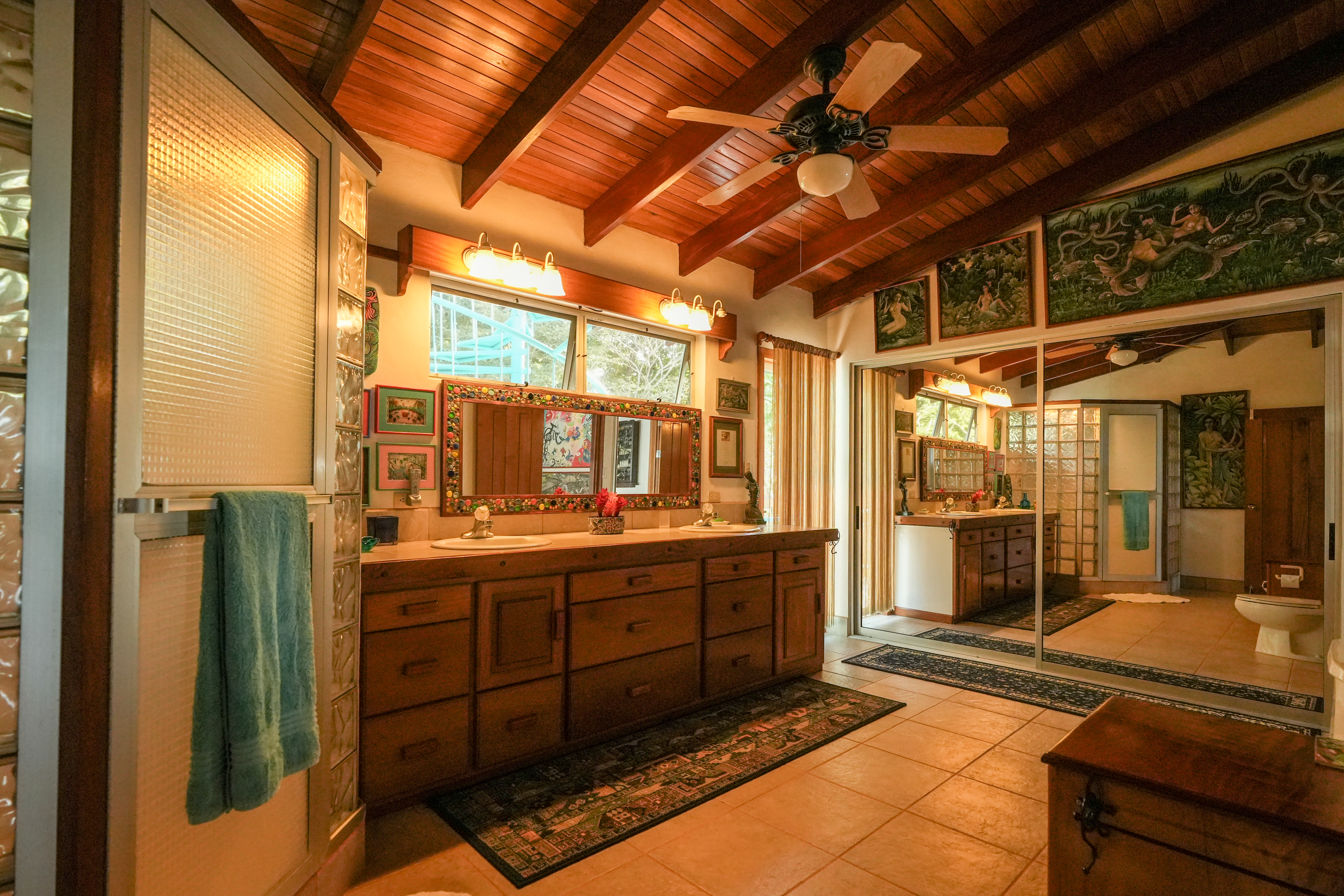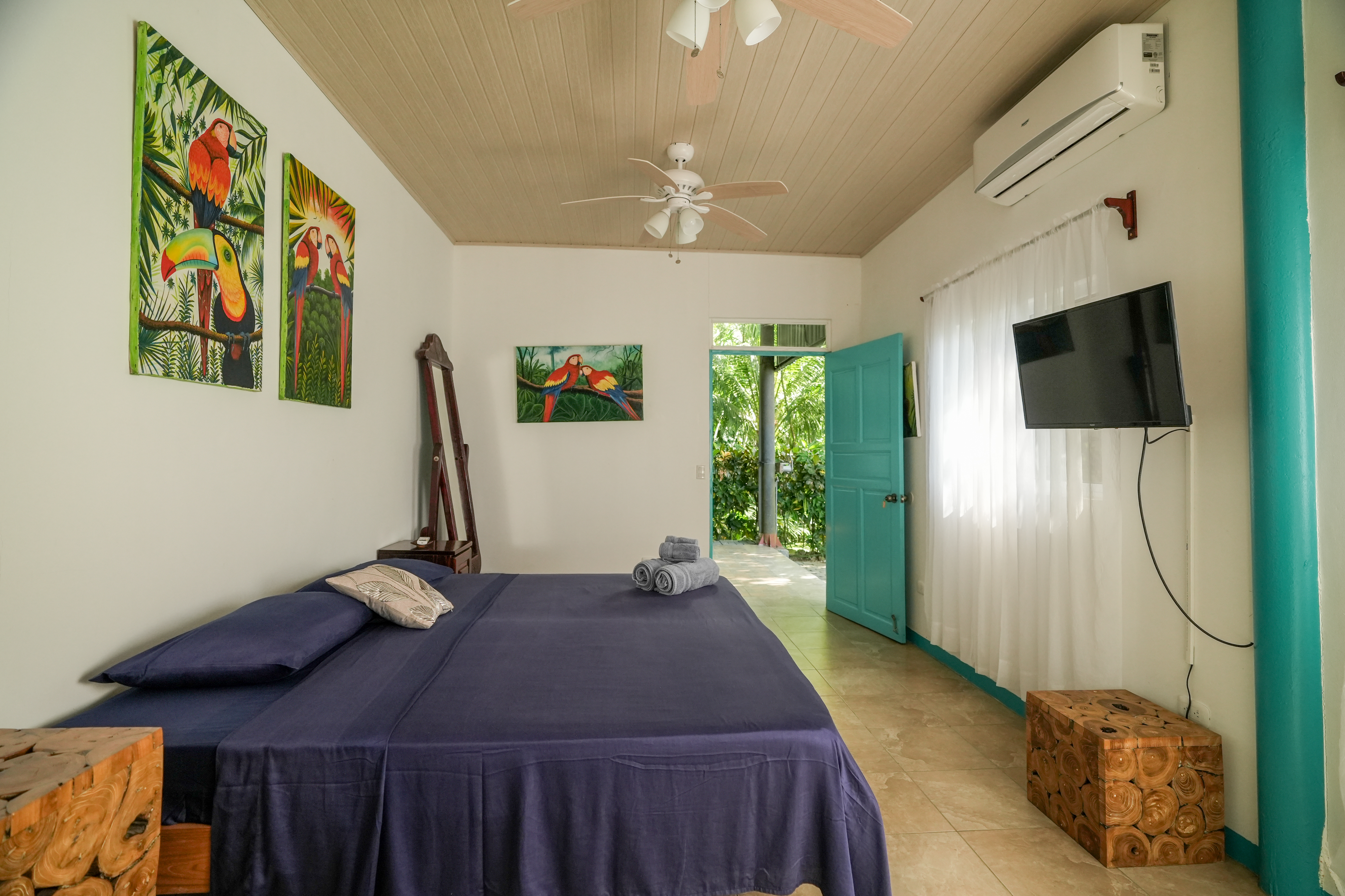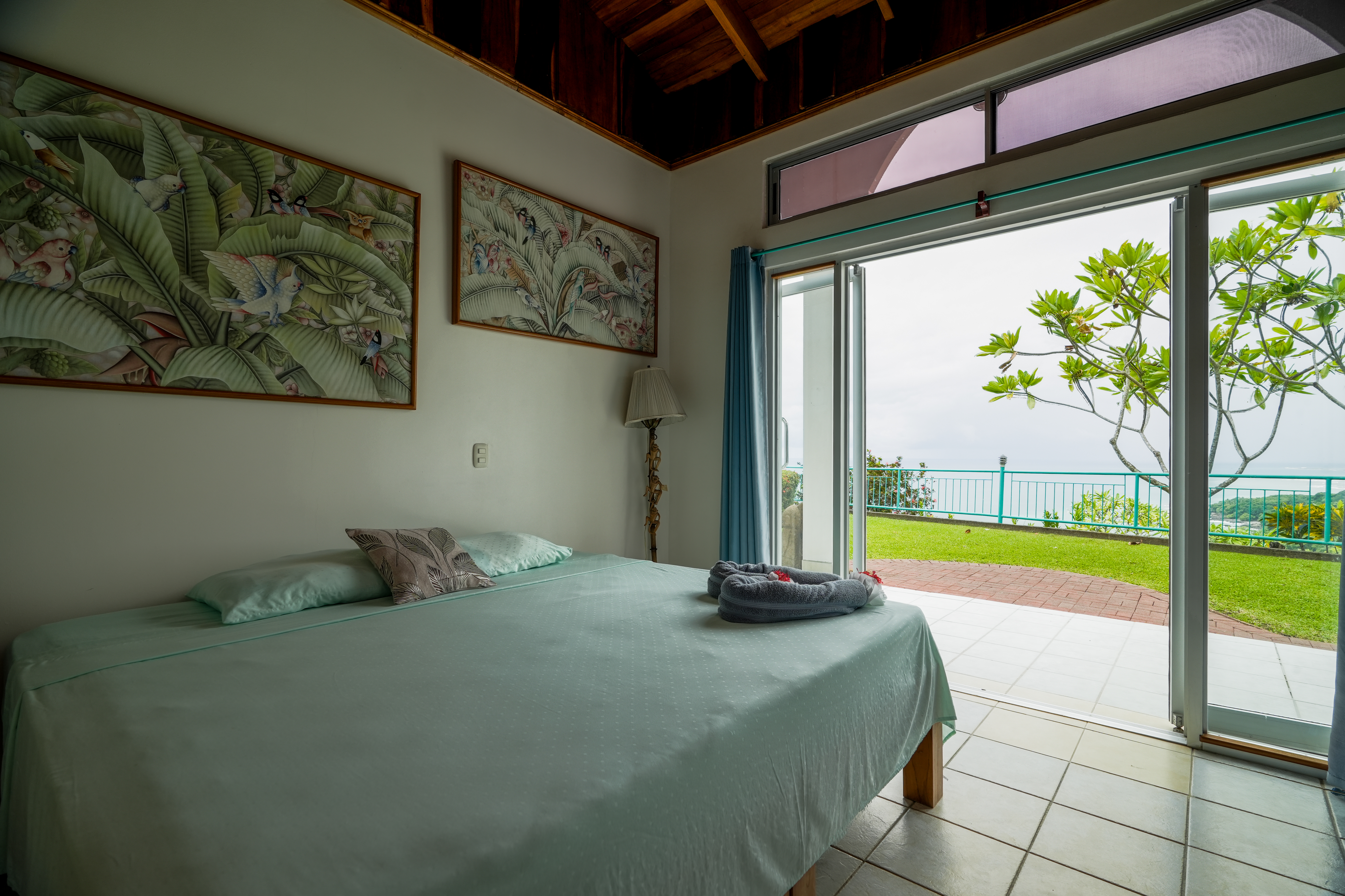 Main House: Expansive open-air living area, gourmet kitchen, breathtaking Pacific views, Bali-inspired décor, and antique Costa Rican accents.