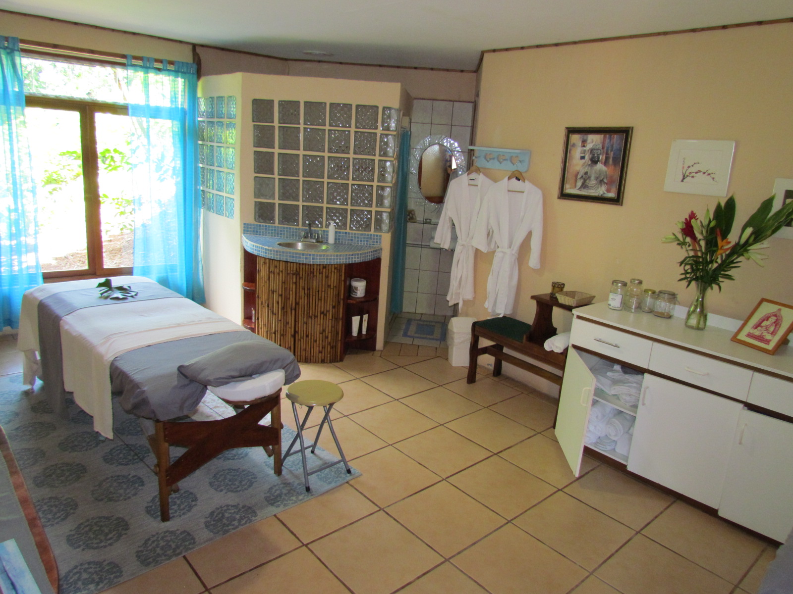 The wellness center offers massage, energy therapies, spa services, nutritional consultation, detox programs and integrative herbal medicine with expert practitioners. The breath-taking, open air yoga pavilion with 270° views of the mountains and lush jungle valley has a small bar and kitchen for refreshments and can accommodate up to 50 people. The lower level includes an office, an exercise room and 2 treatment rooms.