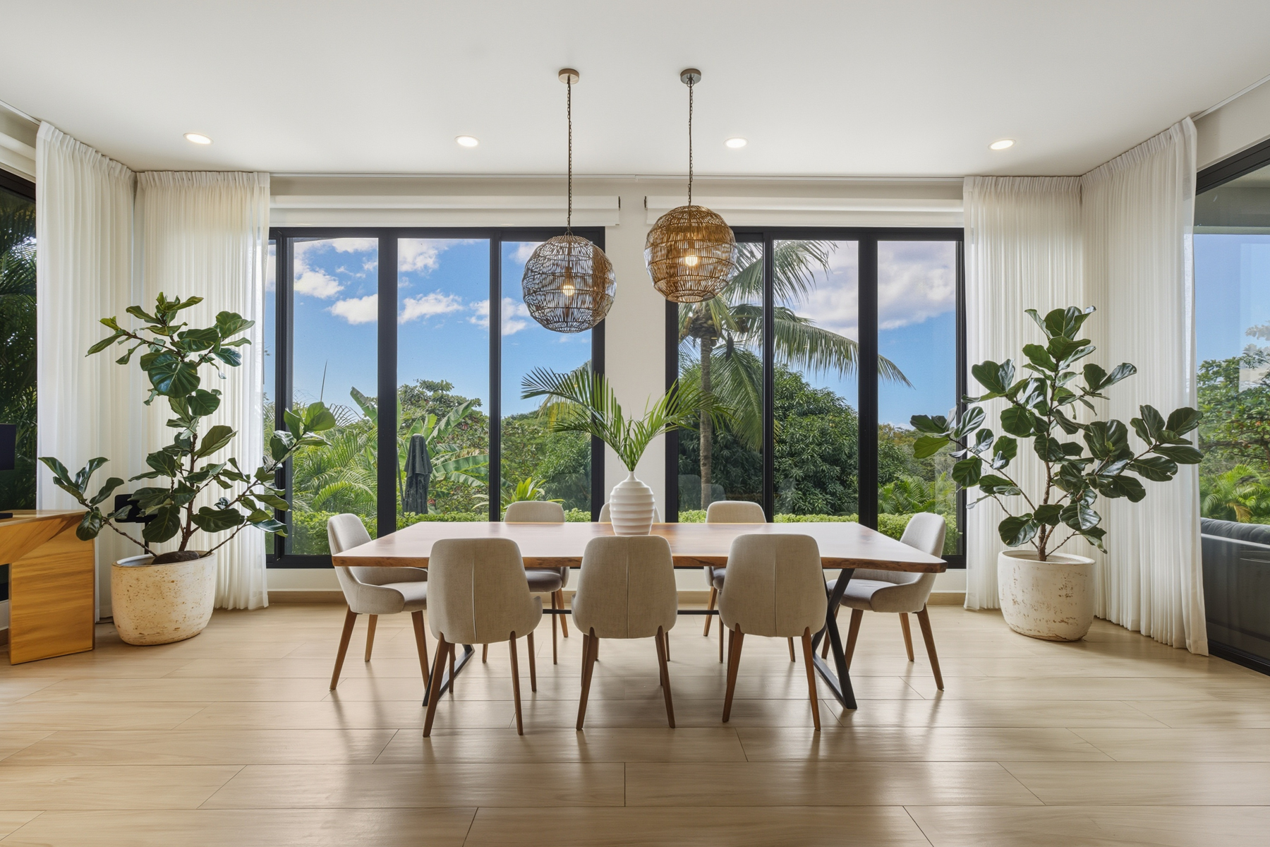 Motorized blinds and sheer curtains throughout main living areas