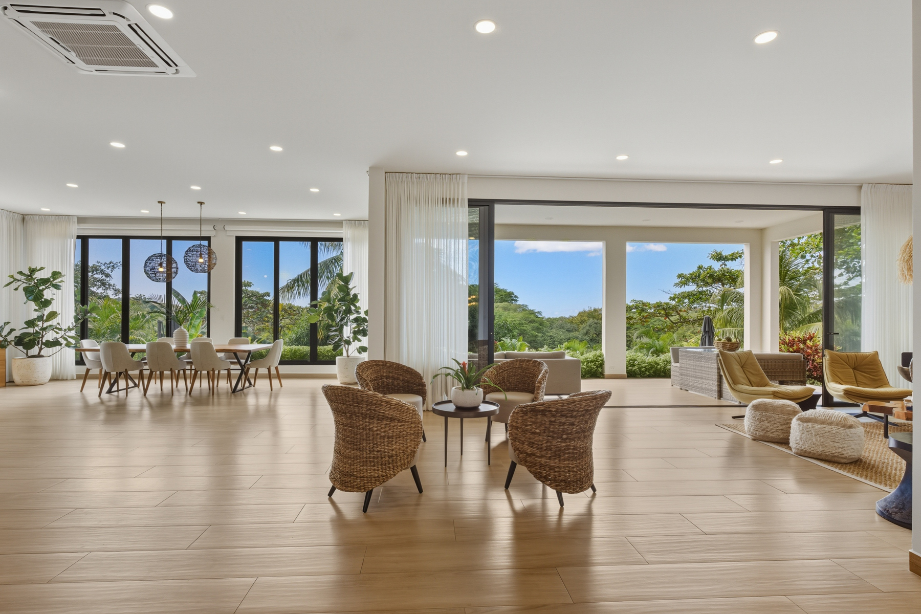 Multiple indoor and outdoor living and dining spaces