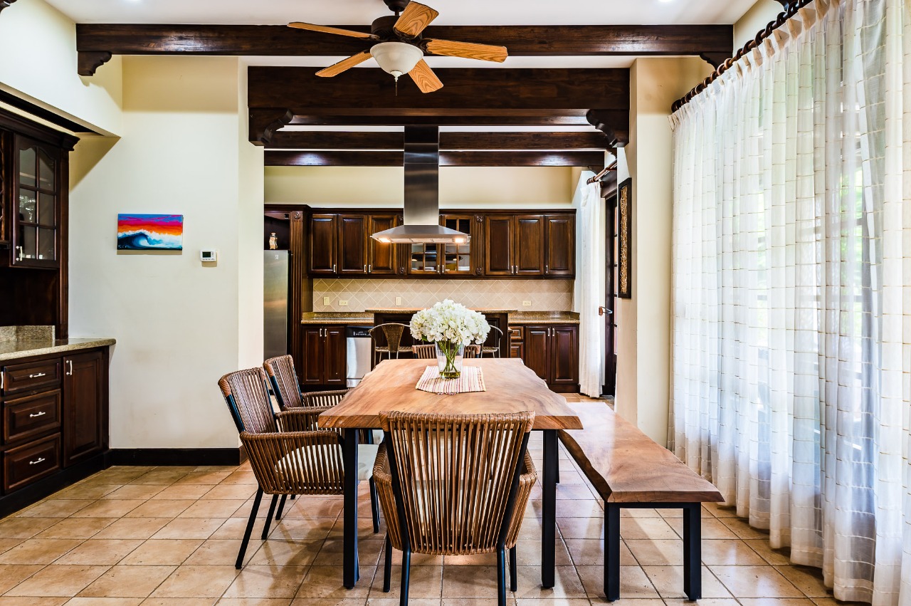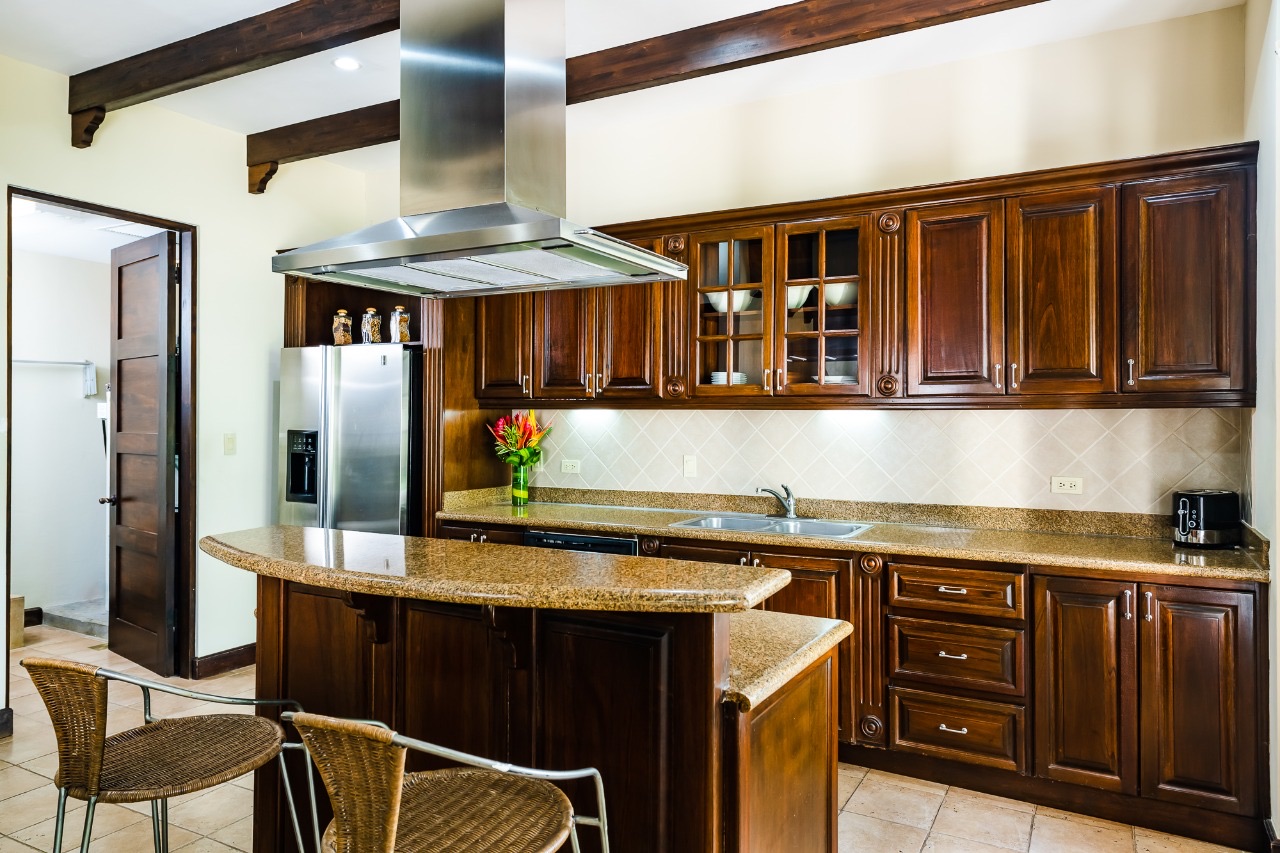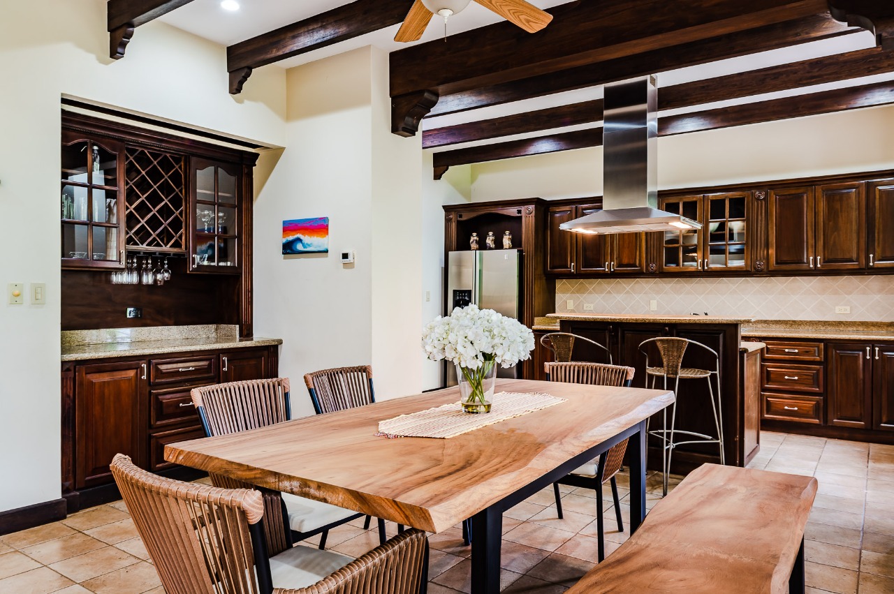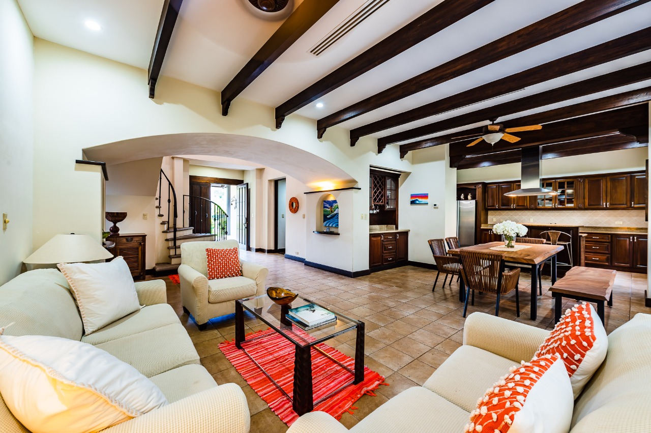 Welcome to Villa #221 at The Dream Villa, an exquisite 2-bedroom, 2.5-bath retreat nestled in the exclusive beachfront community of Jardines de Palma Real within Hacienda Pinilla. Spanning over 3,100 square feet of refined indoor living space, this elegant condominium offers two generously sized living rooms one on each floor and expansive covered verandas perfect for entertaining or relaxing in the tropical breeze. The lower level features an open concept layout with a well appointed kitchen boasting stainless steel appliances, a central island, pantry, and adjacent laundry room. Thoughtful updates include custom native hardwood furnishings, a built in bar, and versatile sleeping arrangements in the guest bedroom, making this space ideal for family and friends.