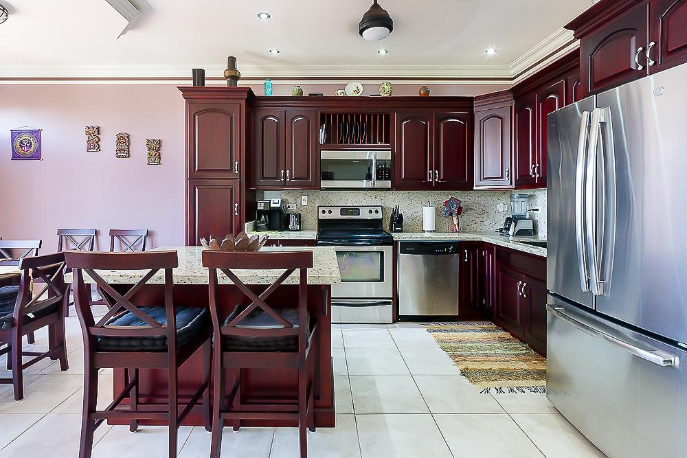 The layout of the beautiful Bella Vista 2 Bedroom Ocean View Condo provides a welcoming aura of comfort, with two en suite bathrooms for each bedroom, an additional half bathroom for guests, and an open living-dining room concept. The master bedroom is spacious enough to accommodate an at-home office, and it also has its own private ocean-view balcony. The newly renovated kitchen features all of the high-end name-brand finishes you seek. Recently, a reverse osmosis water filtration system was installed to ensure the quality of drinking water and water usage.