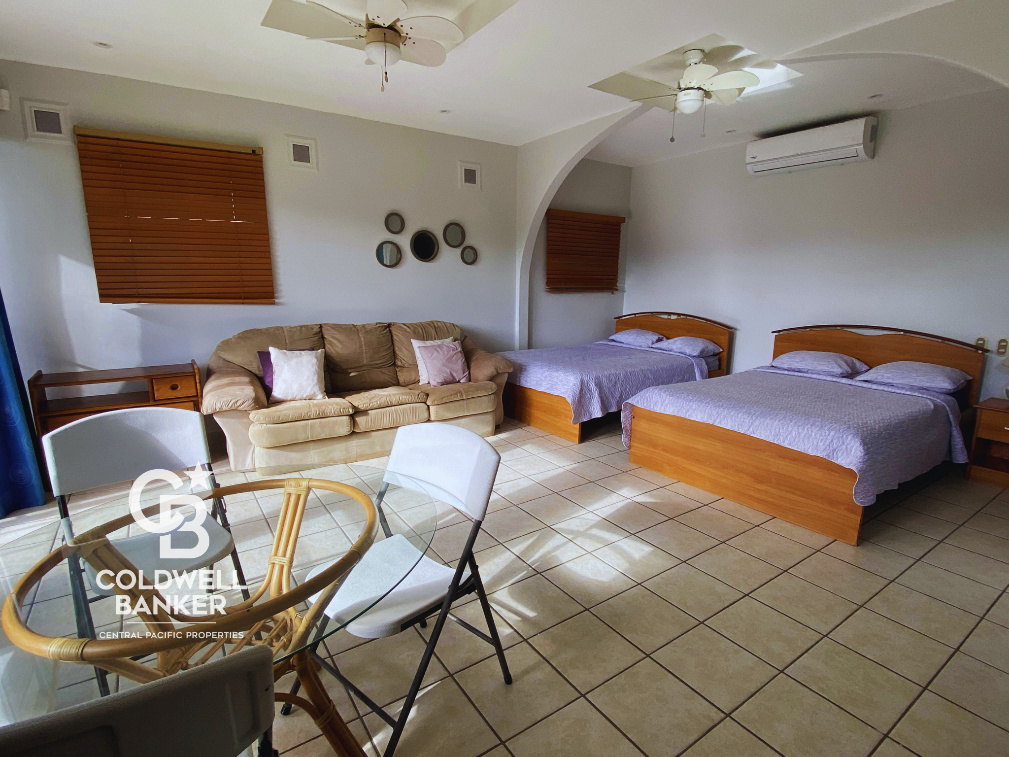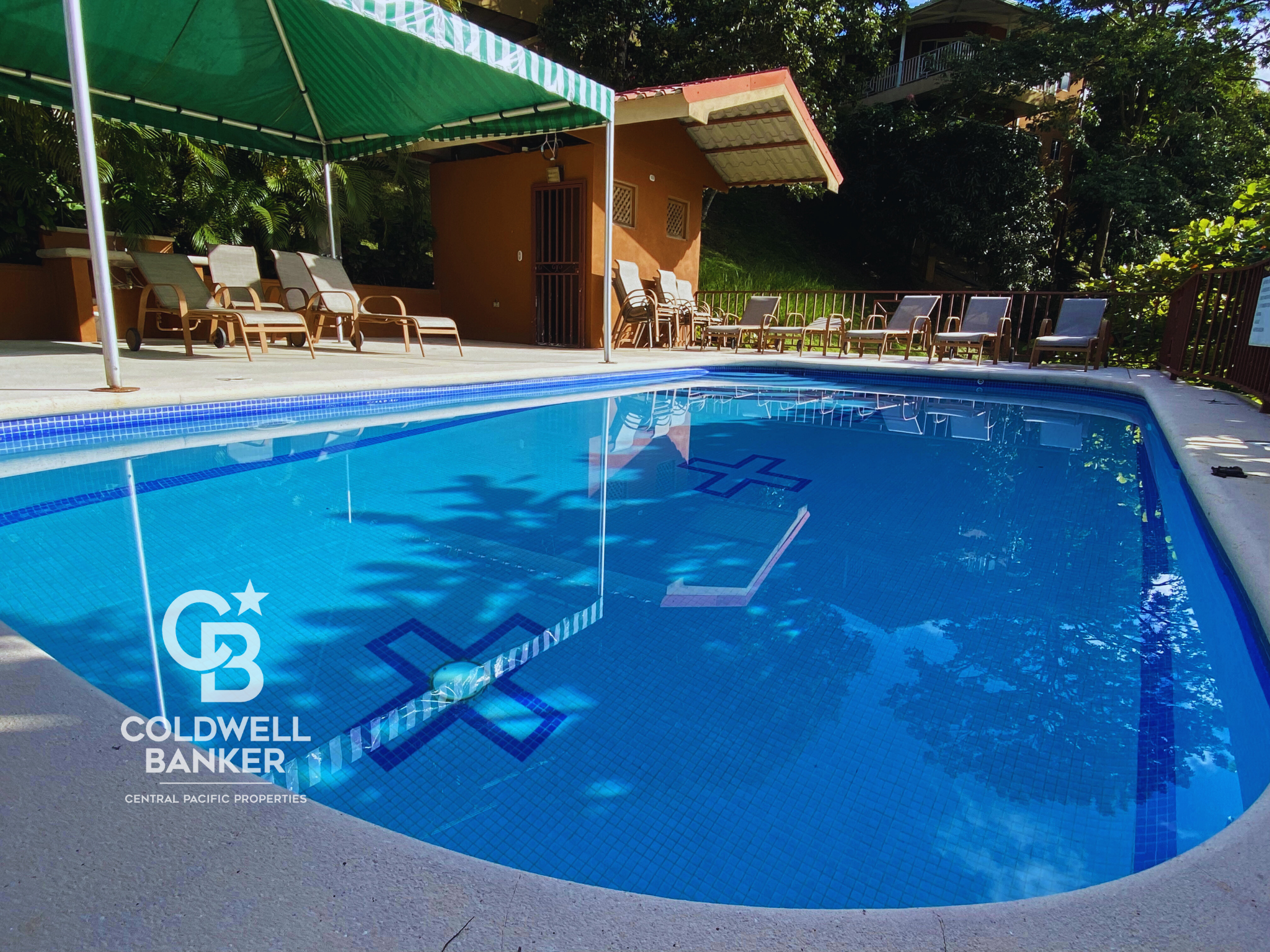Property Details Enjoy serene mountain views from the hills of the Jaco in this unique chalet. Featuring two separate units with a spacious one bedroom on top and a studio on the bottom, this is the perfect property for someone looking to maximize rental income or combine use of a personal home with some side rental income. Located just 5 minutes from the center of Jaco and the sands of Jaco Beach, this small community also features a carport for 2 cars and common area pool.