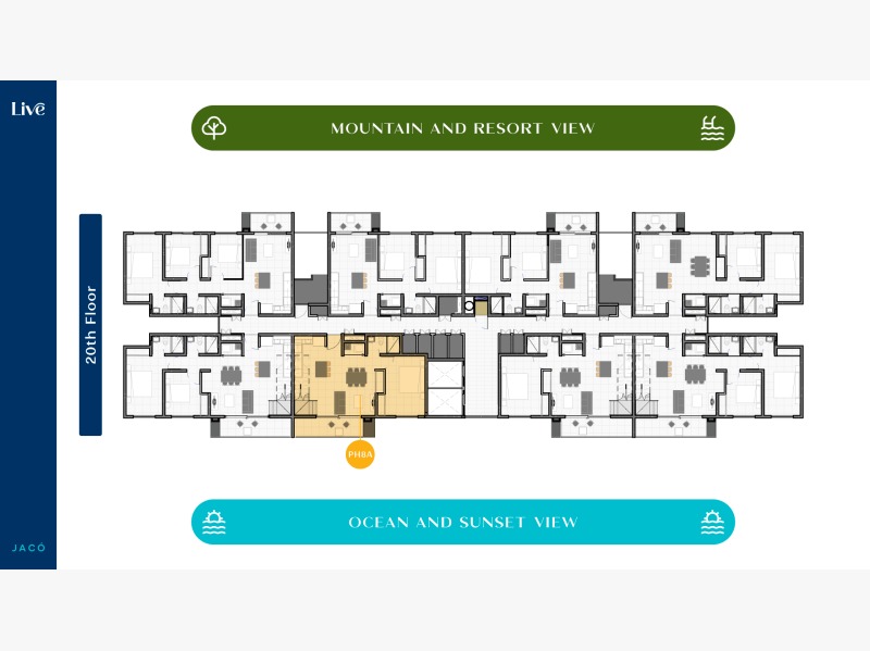 Experience the pinnacle of luxury with this spacious penthouse apartment in Live Jaco, the soon-to-be tallest building in Jaco Beach. This 20-story iconic development offers breathtaking ocean and mountain views, just one block from the beach and walking distance to town conveniences.