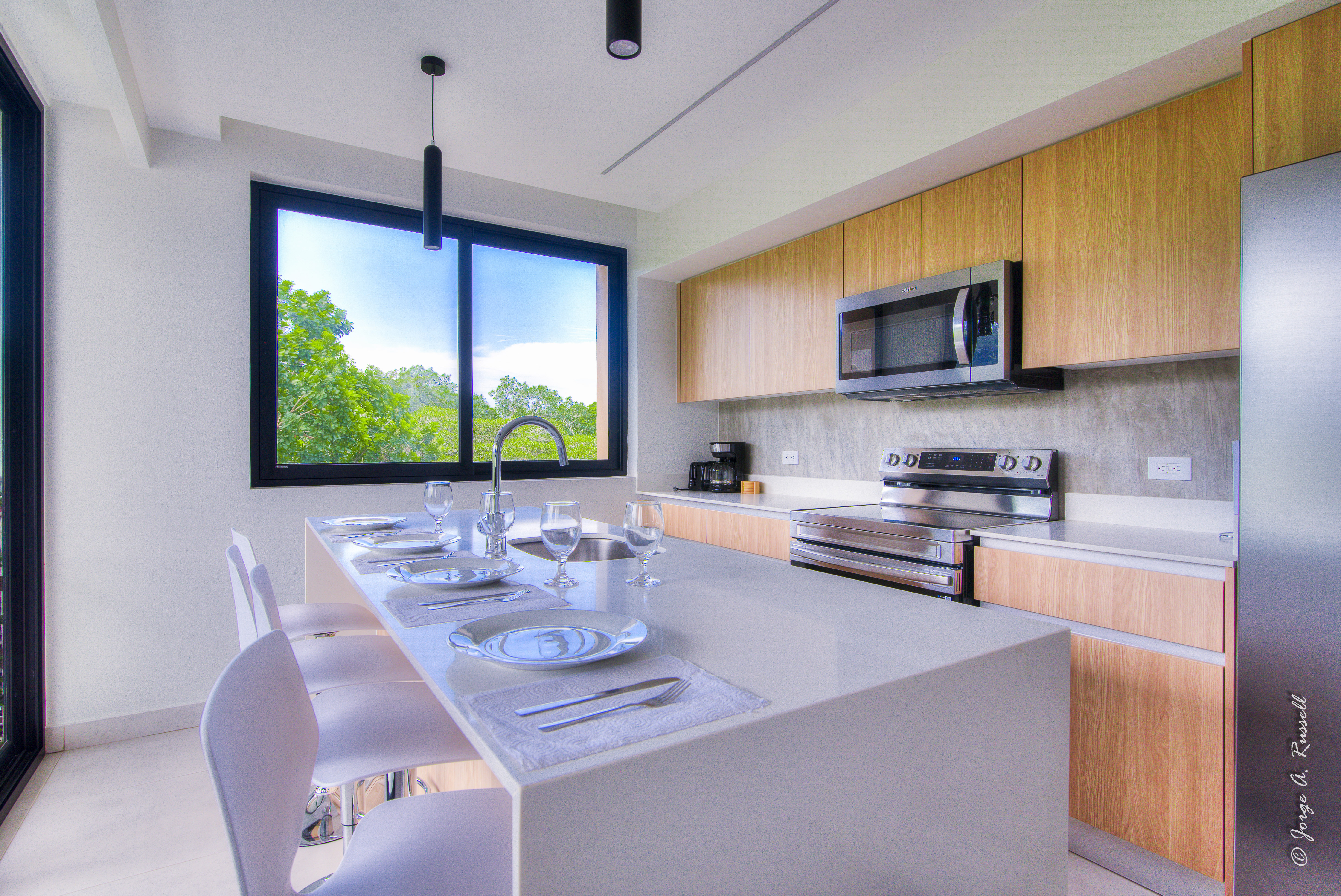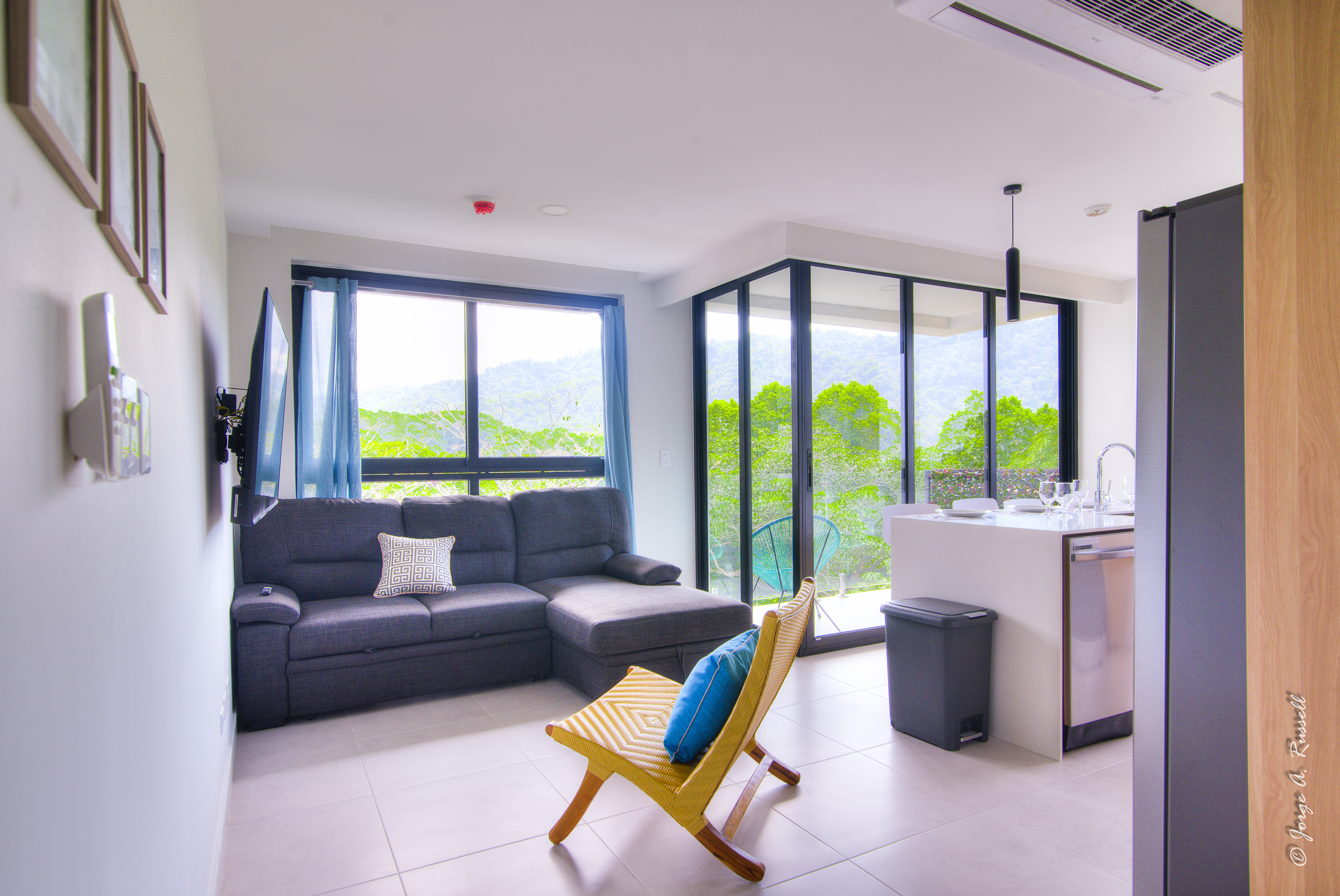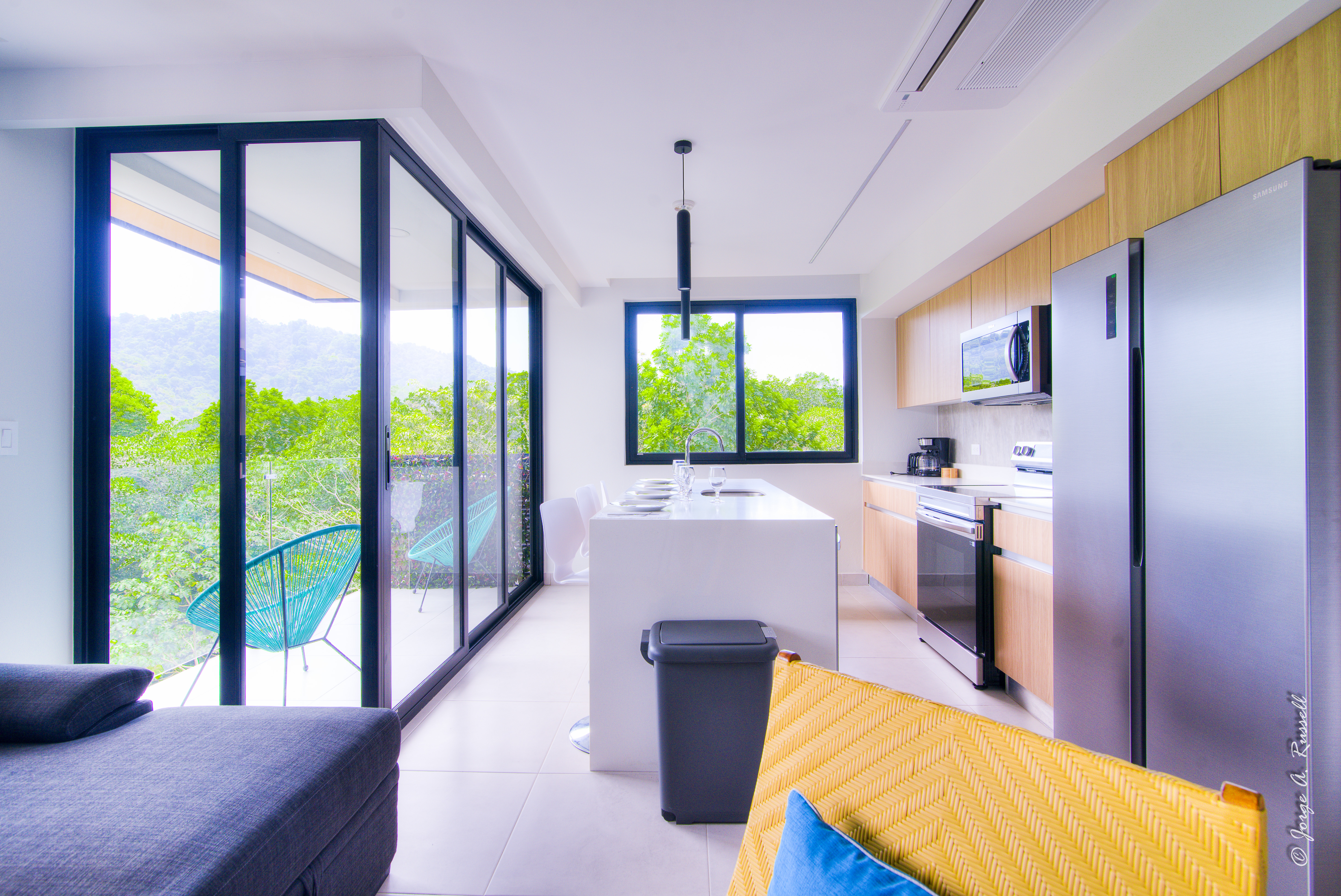 Step into a beautifully designed space, fully furnished with brand-new furnishings, making it 100% move-in ready. The master suite and kitchen showcase stunning dual views of the Pacific Ocean and lush jungle, while the rest of the home is immersed in panoramic tropical greenery, creating a tranquil, modern yet nature-infused ambiance.