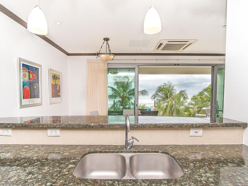 Condominium with 2 bedroom and 2 1/2 bathrooms at Diamante del Sol in the center town of Jaco. This luxurious 1,615 sq ft property is absolutely beach front and it’s located in the third floor affording amazing views of the ocean. Feel the Pacific breeze from its ample terrace, watch the surf and enjoy the signature Jaco sunsets at Diamante del Sol, one of the nicest ocean front condominium communities available in Jaco.