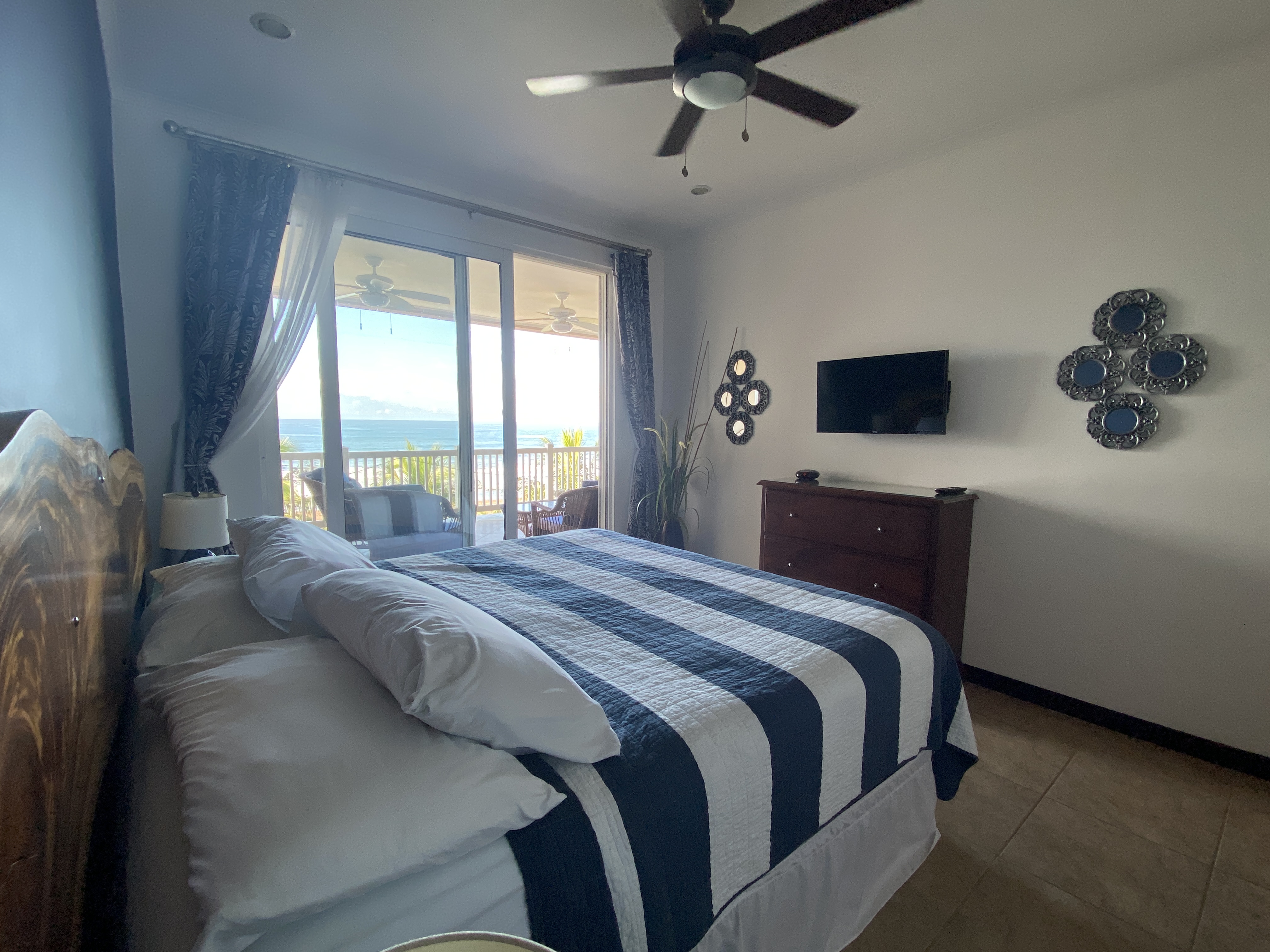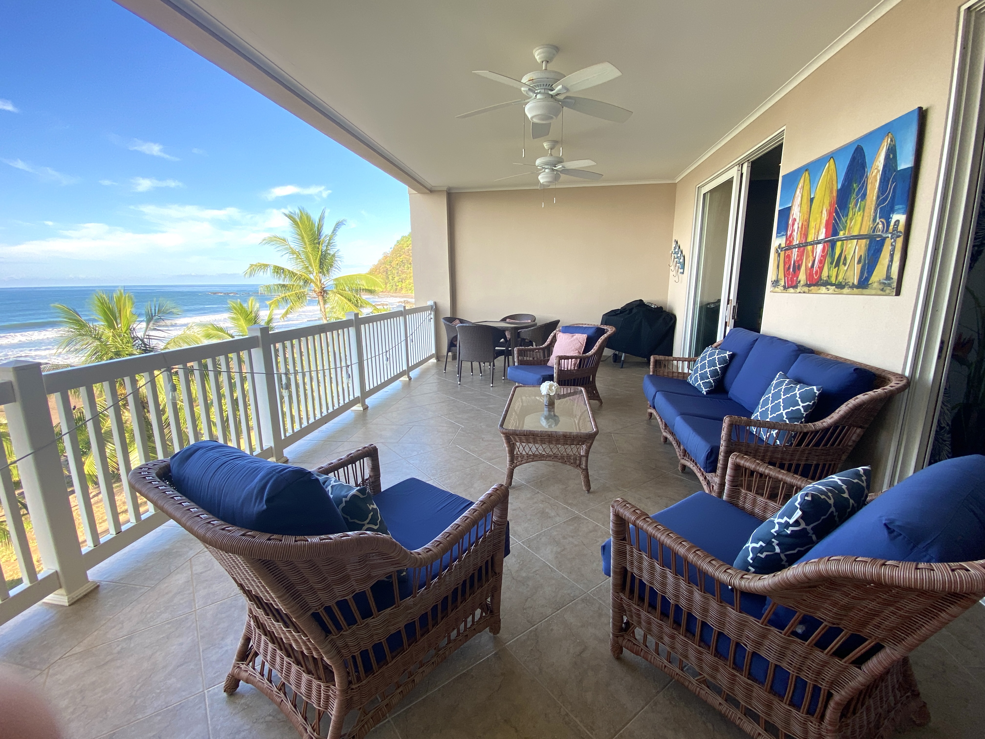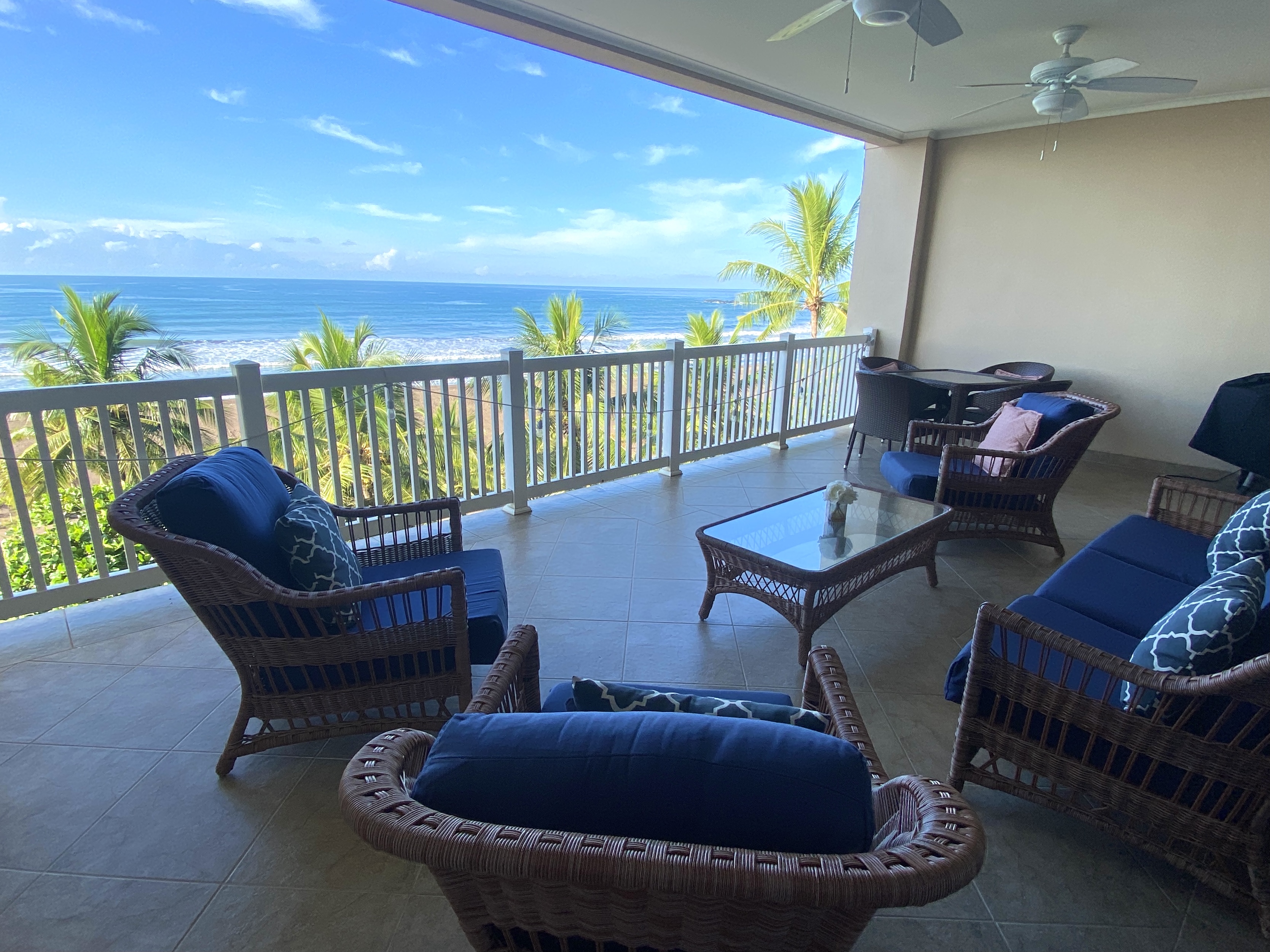 The Palms is one of Jaco's most sought out beachfront communities. Located on the quiet north end of Jaco Beach, each residence is unobstructed oceanfront and features oversized terraces which is ideal for taking in the sweeping ocean views. This 5th floor unit is perfectly positioned, providing full views of the entire bay. Sold fully furnished and turn key ready the condo features some nice upgrades with modernized and remodeled bathrooms and kitchen. Owners and renters in the Palms have access to the large swimming pool at the next door Crocs resort. Inventory in this community and with a view like this in Jaco is extremely limited so be sure to act quickly.