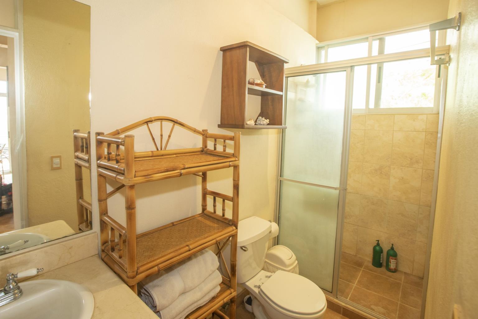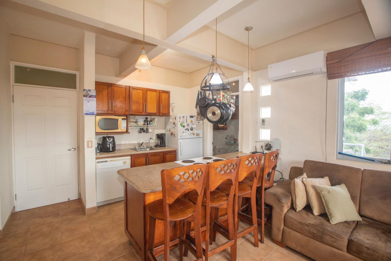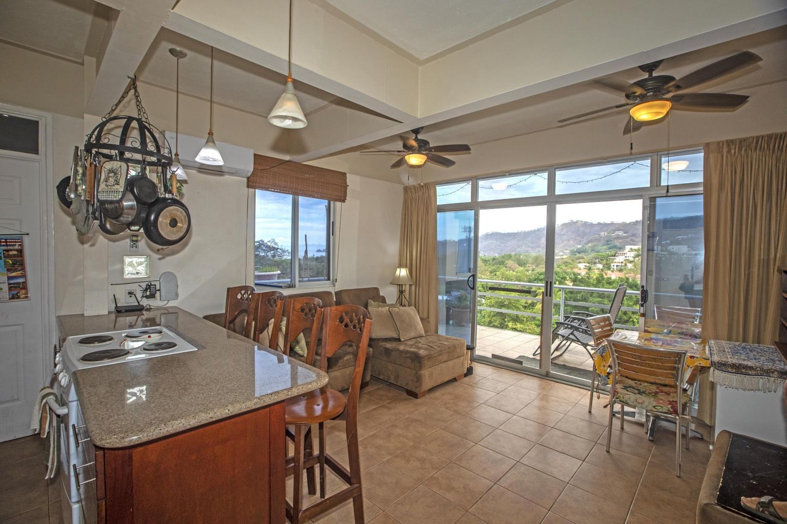 This beach view condo has 2 bedrooms, 1.5 bathrooms, and 926 square feet. The flat is on the fourth floor and has an open floor layout. It was recently painted and contains a newer stacking washer/dryer and refrigerator. The second bedroom's handcrafted wooden headboards, bespoke wall shelves, and built-in desk make it ideal for a home office. The complex is equipped with fiber optic internet and digital cable. This is an end unit with a big balcony that is closest to the hilltop pool and has a 180-degree view of gorgeous Coco Bay. It's only three blocks to the beach and two blocks to town, restaurants, supermarkets, and shopping. The central position is unbeatable! This property is also about 25 minutes from Liberia International Airport.