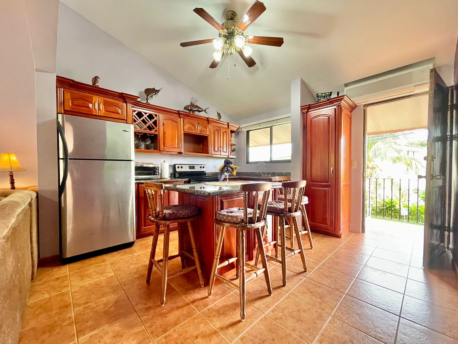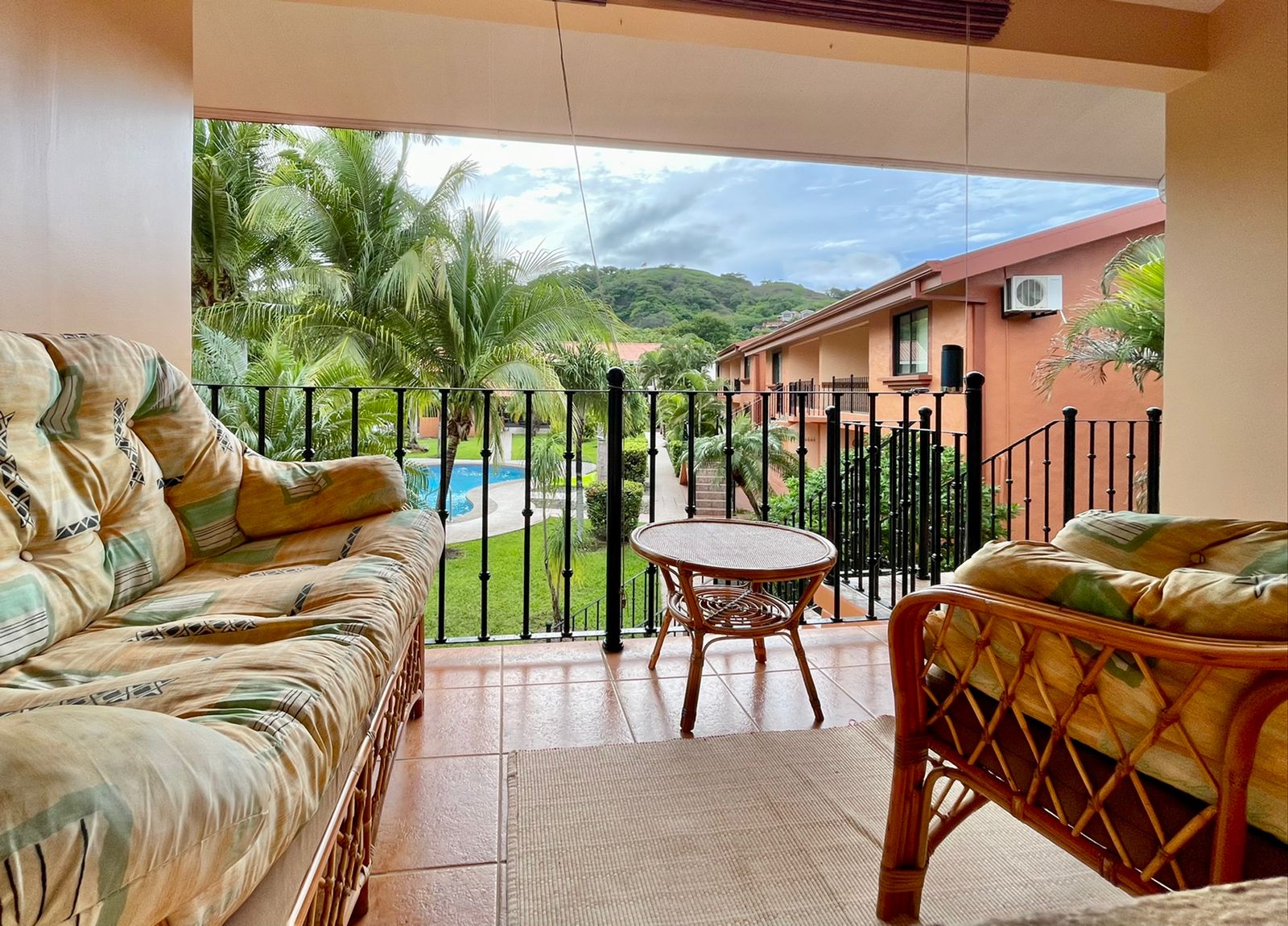 This 2 bedroom 2 bathroom condo located on the second floor offers vaulted ceilings, with beautiful views of the pool and mountain. Nicely furnished with everything you need to make your stay enjoyable, open concept floor plan with real Costarrican hardwood cabinets through·out, stainless steel appliances, mini split air conditioning and ceiling fan in every room.