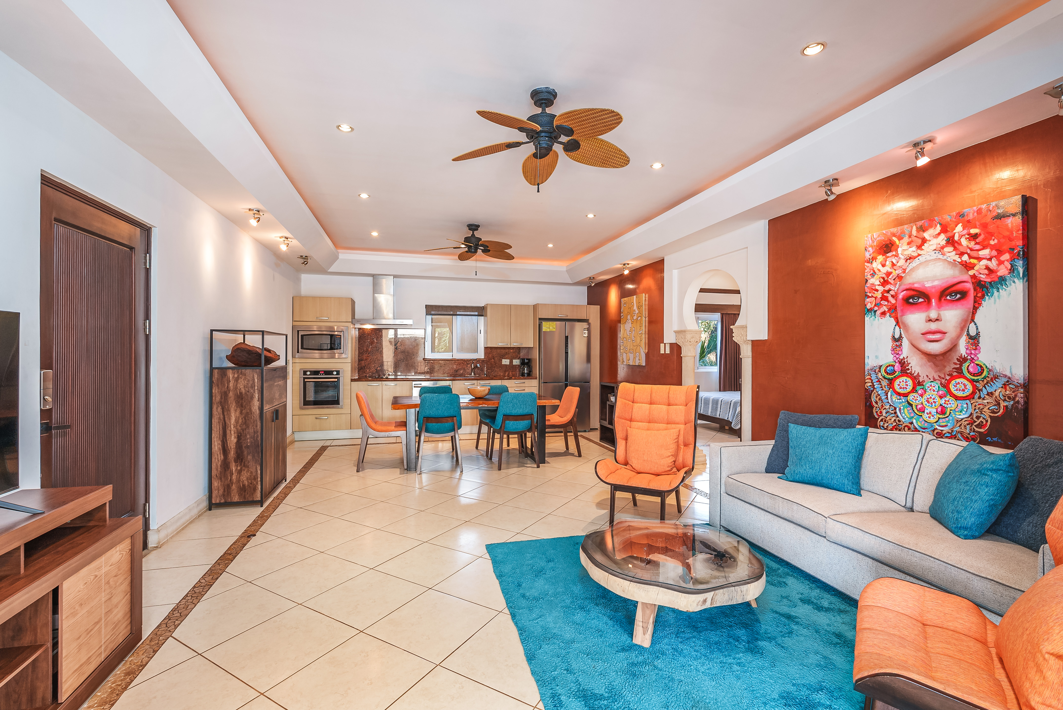 The Best Location in the center of Tamarindo - Underground parking and short walk to over 100 restaurants, shops, and a wide variety of activities, BocaRaca #9 is a beautiful, 2 bedroom luxury property situated on the third floor of the prestigious BocaRaca high-rise. This extremely secure, elegant complex is centrally located in the heart of Tamarindo, just ½ block from the white sand of world renown Tamarindo beach. Artfully furnished and well-provisioned, this great property is a convenient beach-town residence, as well as an amazing rental investment. It has been a successful AirBnB rental venue over the past few years.