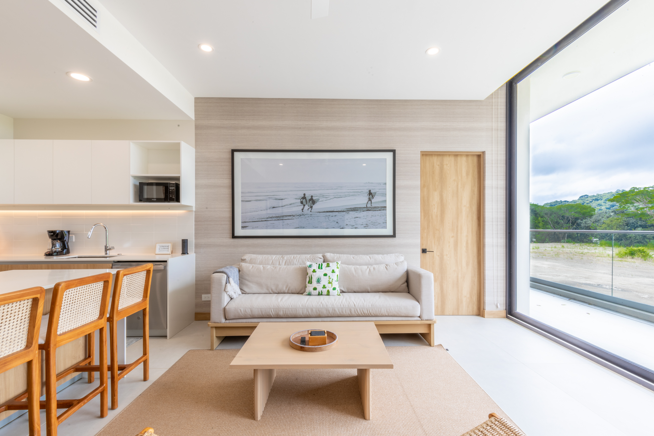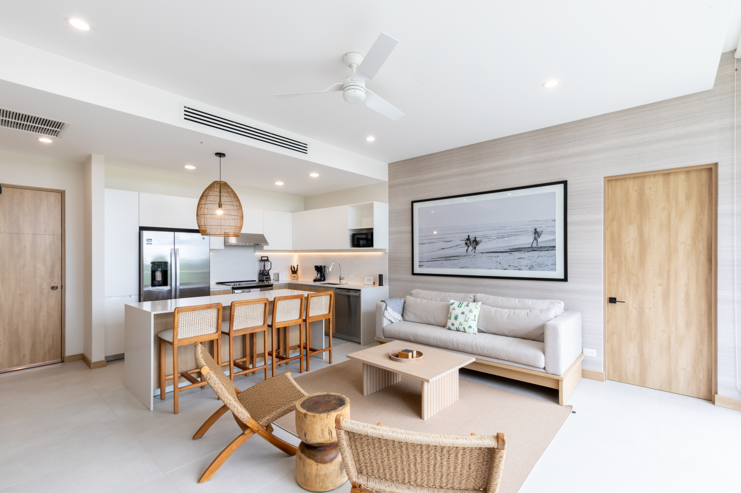 Your Nosara adventure begins at this 2-bedroom condo. This comfortable apartment features 1 king bed on the master bedroom, and 2 queen beds on the secondary bedroom, as well as 2 full bathrooms. Perfect for a small group of guests, family and friends. The apartment comes with WiFi, AC, and a washing machine, so you'll have everything you need for a fantastic stay.