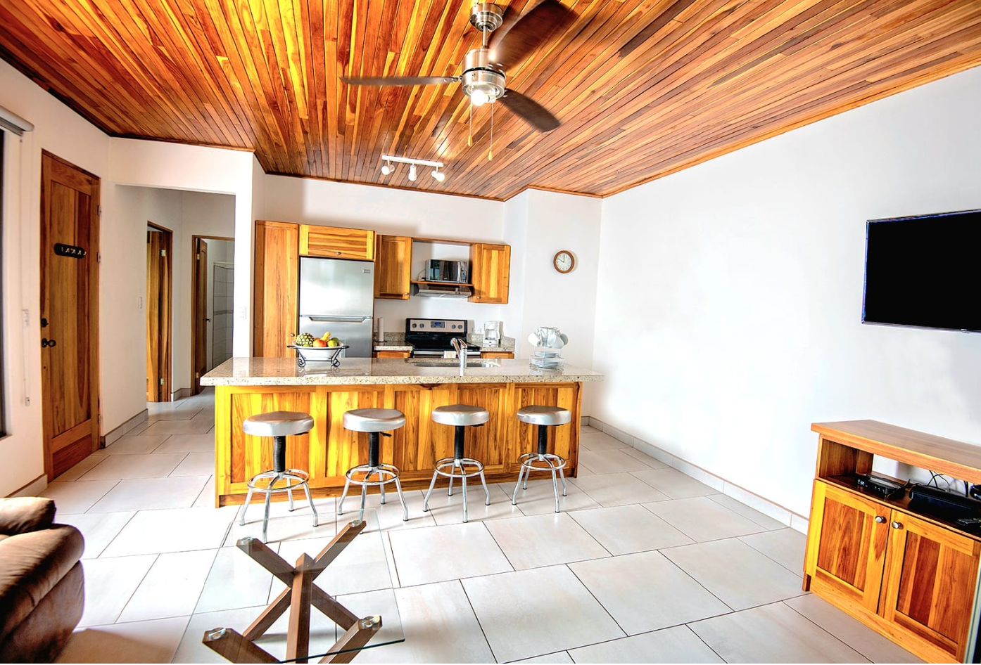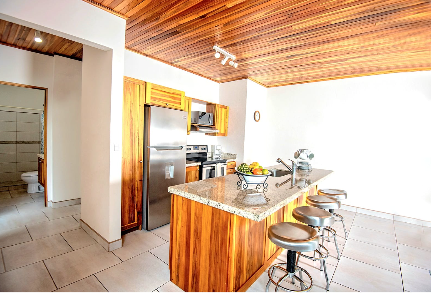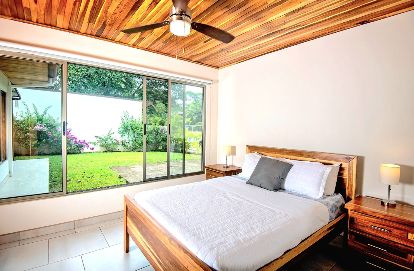 • Open-concept living area filled with natural light • Sliding glass doors and large windows create a bright, airy atmosphere • Spacious kitchen with teak cabinetry, granite countertops, and a large island with breakfast bar • Modern stainless steel appliances for everyday convenience • Master suite with private bath and walk-in shower • Second bedroom with plenty of natural light, ideal for guests or a home office • Covered patio for outdoor dining, relaxing, or entertaining • Washer/dryer nook and double utility sink for functionality • Parking pad and partially walled property for added privacy • Located just 30 minutes from SJO Airport and under an hour from Pacific beaches