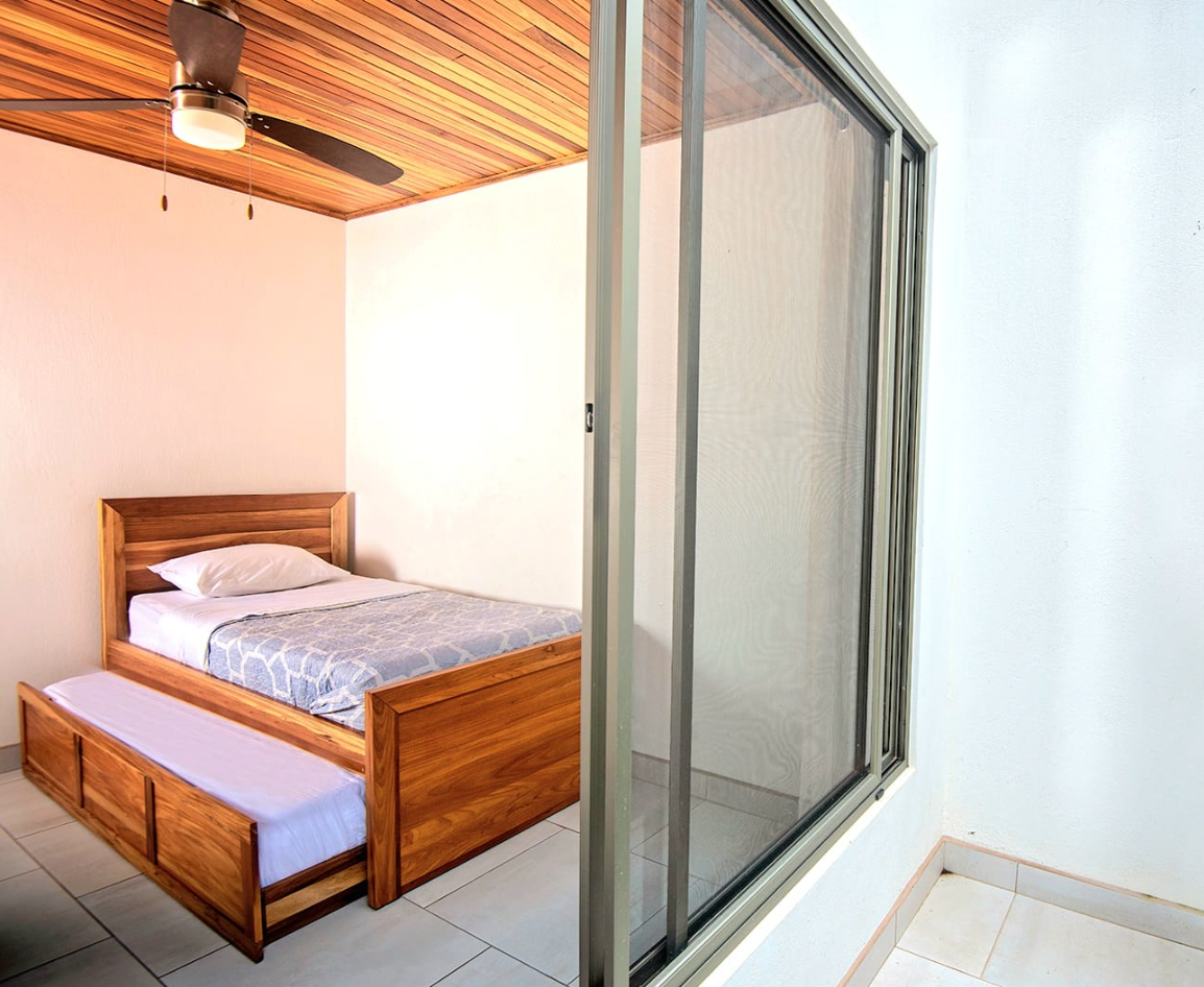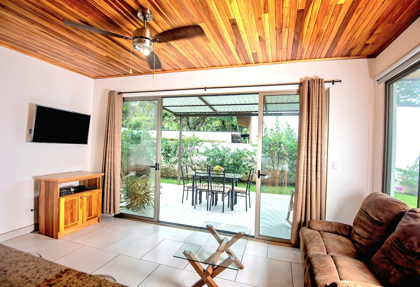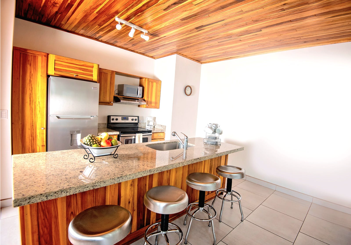 • Open-concept living area filled with natural light • Sliding glass doors and large windows create a bright, airy atmosphere • Spacious kitchen with teak cabinetry, granite countertops, and a large island with breakfast bar • Modern stainless steel appliances for everyday convenience • Master suite with private bath and walk-in shower • Second bedroom with plenty of natural light, ideal for guests or a home office • Covered patio for outdoor dining, relaxing, or entertaining • Washer/dryer nook and double utility sink for functionality • Parking pad and partially walled property for added privacy • Located just 30 minutes from SJO Airport and under an hour from Pacific beaches