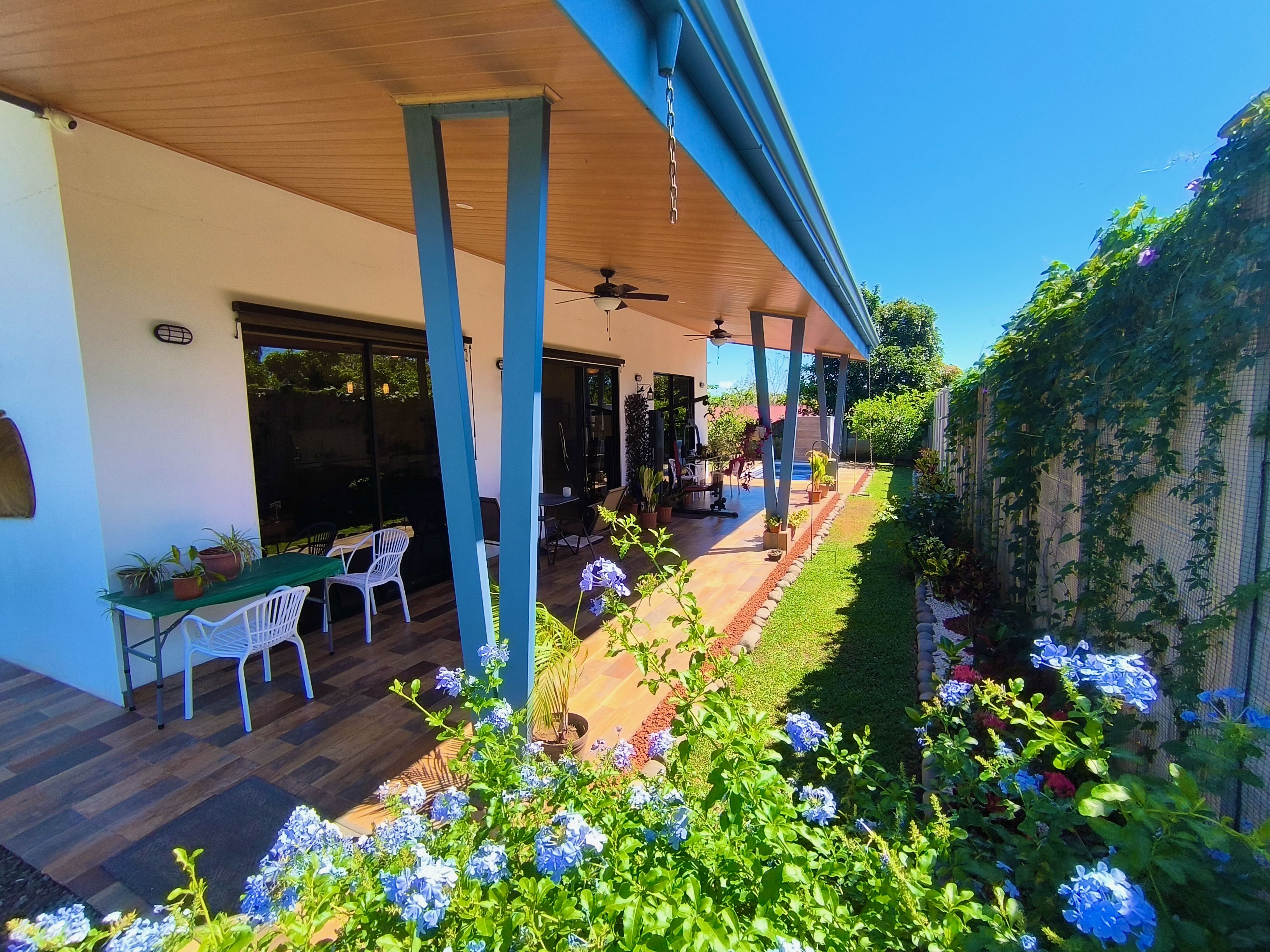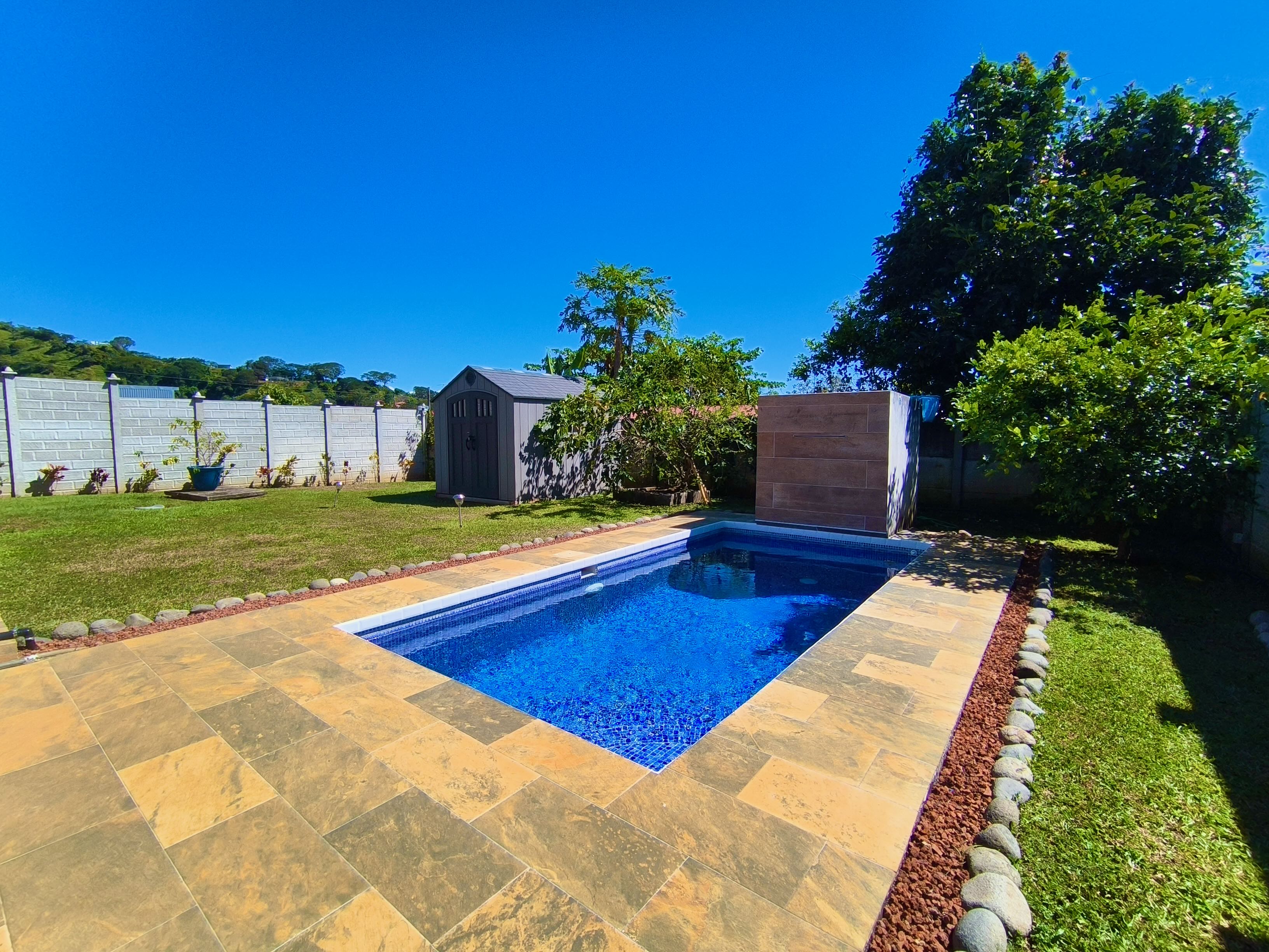 Property Features • 150 m² construction | Built in 2022 • 2 bedrooms, 1.5 bathrooms (shared shower design) • Fully furnished with quality appliances • Swimming pool with solar heating system • Solar water heater • 4 new air conditioning units • Alarm system with 10 cameras • Laundry room + storage room • Covered carport for 1 vehicle • Electric gate, fully fenced 600 m² lot
