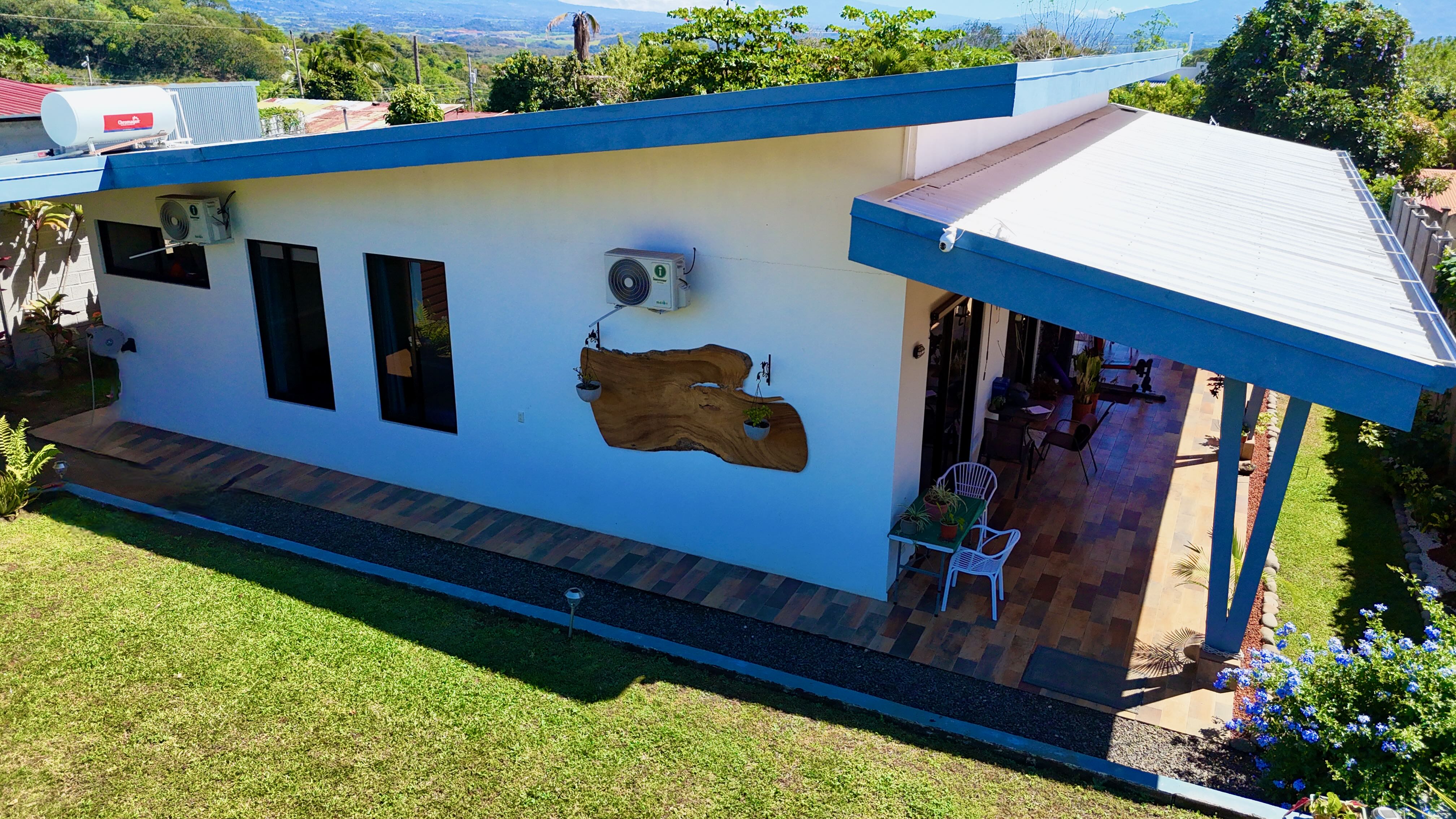 Built in 2022, this modern single-story home offers 150 m² of living space on a fully fenced 600 m² lot, located just 10 minutes from downtown Atenas. The house features two comfortable bedrooms and an original layout with one shared shower accessible from two separate toilets, combining functionality and smart design. The open-concept kitchen, living, and dining area creates a bright and welcoming atmosphere, complemented by a shaded terrace ideal for relaxing.